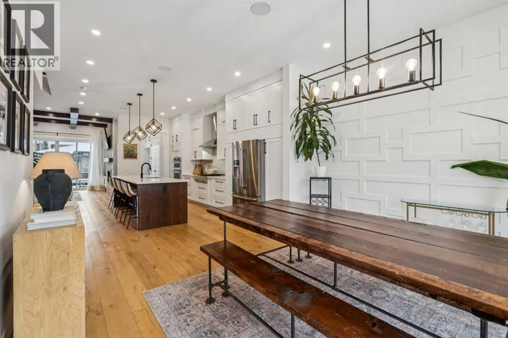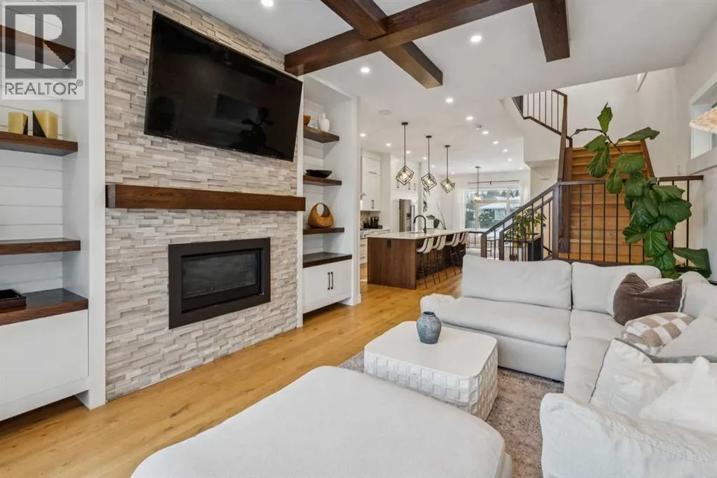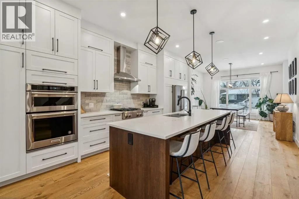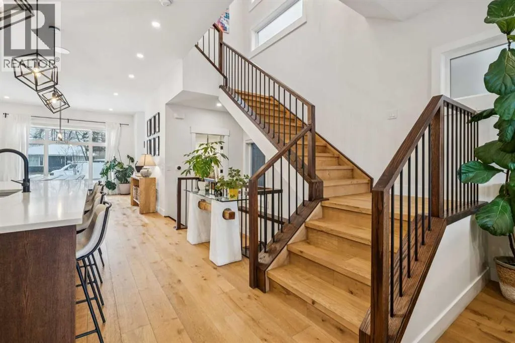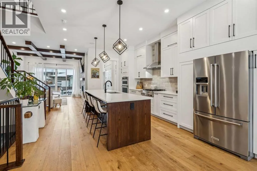 This outstanding home is ready to be yours, perfectly situated in an excellent Killarney location. The property is set on an oversized lot featuring an impressive 150 linear feet of depth, a difference that noticeably enhances both the floor plan and your lifestyle. Step inside and be greeted by a sense of grand scale and refined detail: gorgeous wide plank hardwood floors, soaring ceilings, voluminous rooms, and unmatched functionality are found throughout. The vestibule opens into a large dining area, easily accommodating every occasion from relaxed family dinners to a major Superbowl celebration. This space is tailored with bespoke lighting and wall details, adding style and texture. The gourmet kitchen will quickly become the heart of your home, offering both comfort and room for your culinary expression. Highlights include abundant storage, full-height cabinets, a premium appliance package, and a large central island. Flowing seamlessly from the kitchen, the family room is complete with a stacked marble mantle, rich coffered ceilings, and garden doors leading to your massive yard. The main floor is completed by the largest mudroom you have seen in Killarney, featuring full-height cabinets, lockers, and benches. Upstairs, three generous bedrooms, a flex space, and a dedicated laundry room provide all your second-floor essentials. The primary bedroom is truly impressive, featuring vaulted ceilings, a spa-inspired ensuite, and a large walk-in closet. The flexible space serves as an excellent home office or small media area, while the two secondary bedrooms are flooded with natural light. Finally, the basement is designed for entertainment and family life, offering a rec room perfect for a great movie, a wet bar with room for a gaming table, a large fourth bedroom, a full bathroom, and abundant storage. The outdoor space is a true highlight: an oversized backyard provides room for relaxing in your hot tub, letting your dogs run, or working on your game with the cur rent putting green. The property is completed by an incredible triple garage (one side is tandem) that is heated, adding the last layer of functionality to this exceptional home. Book your tour now. (id:27476)