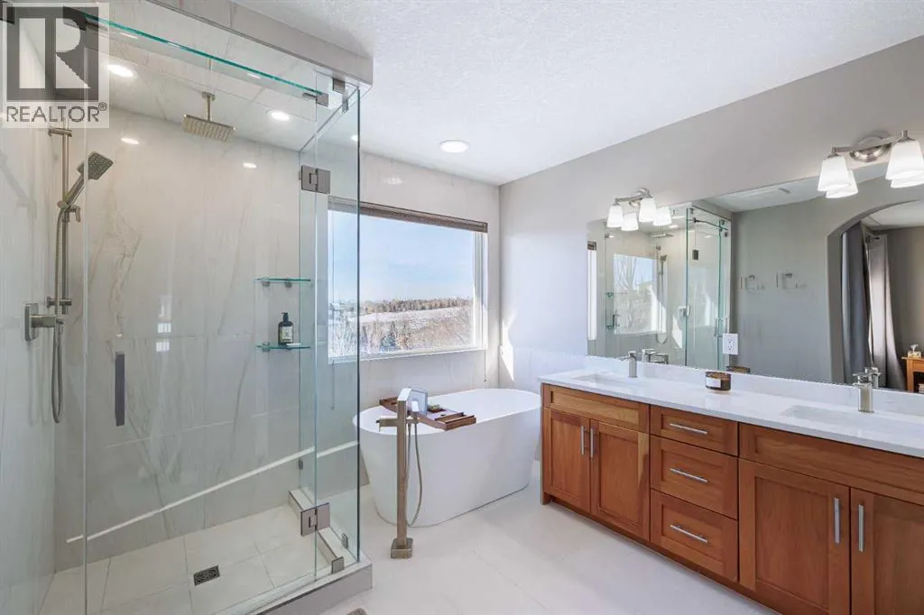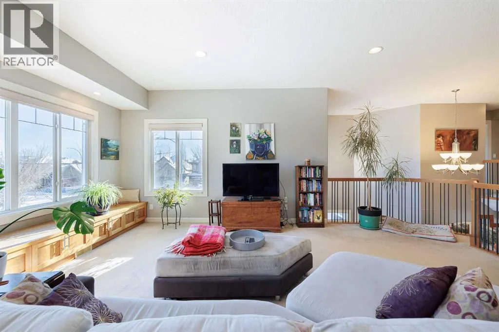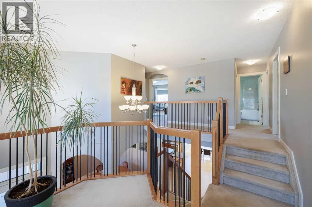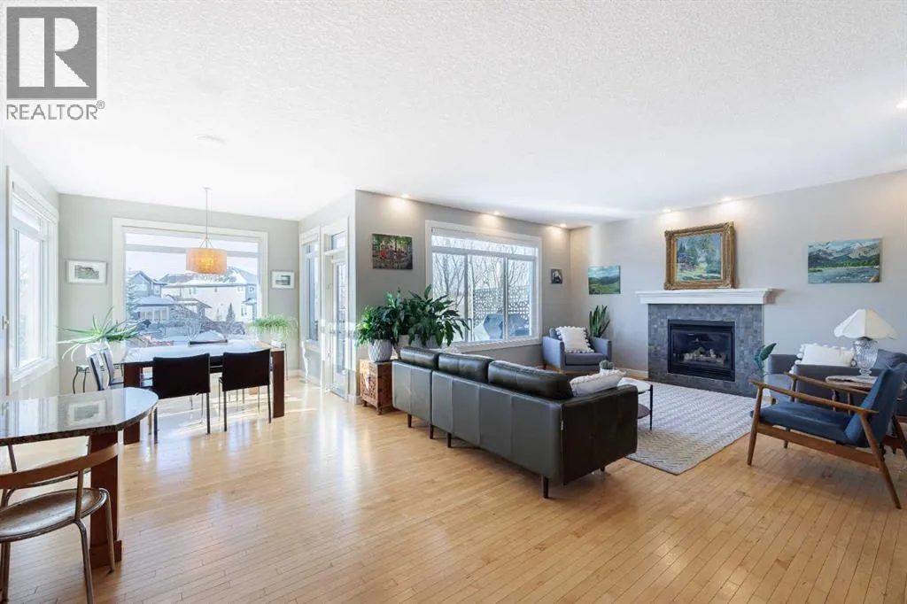 TThis beautifully appointed two-storey home makes a lasting impression with its timeless design, thoughtful layout, and seamless blend of elegance and everyday comfort. With a fully finished walkout basement, a meticulously renovated upper level, and a serene backyard backing directly onto a walking path, this home is perfectly suited for families and entertainers alike. The front entrance welcomes you with a striking open-to-below foyer, creating an immediate sense of space and light. Natural light flows effortlessly between levels, setting a refined yet inviting tone throughout the home. Just off the entry, the formal dining room offers a sophisticated setting for hosting dinner parties, holiday gatherings, or special celebrations, while remaining versatile enough for a home office or sitting room. Hardwood flooring spans the main level, complemented by air conditioning for year-round comfort. At the heart of the home is a beautifully designed kitchen featuring granite countertops, stainless steel appliances, ceiling-height cabinetry, a spacious corner pantry, and a large central island ideal perfect for meal prep. A window above the sink overlooks the backyard, bringing in natural light and reinforcing the homeâs connection to its outdoor surroundings. The bright eating nook sits adjacent to the kitchen and offers direct access to the back deckâperfect for everyday dining or effortless indoor-outdoor living. The open-concept living room features a cozy fireplace, creating a warm focal point for relaxing evenings or entertaining guests. A conveniently located two-piece powder room and main floor laundry add to the homeâs practical appeal. The fully fenced backyard is a true retreat, backing onto a walking path and framed by mature trees for added privacy and tranquility. From the upper deck to the lower patio accessed via the walkout basement, this outdoor space is ideal for entertaining, relaxing, or enjoying nature year-round. Upstairs, a spacious bonus room wit h built-in desk and charming window seat provides a versatile family gathering space. Three generous bedrooms share a beautifully renovated four-piece bathroom, while the primary suite offers a peaceful sanctuary with mountain views, a walk-in closet, and a fully renovated five-piece ensuite featuring dual vanities, a soaking tub, stand-alone shower, and private water closet. The fully finished walkout basement expands the living space with a large family and recreation room, an additional bedroom, and a four-piece bathroomâideal for guests, extended family, or flexible living arrangements. Thoughtfully designed and beautifully maintained, this home offers an exceptional balance of space, style, and settingâwhere everyday living feels elevated and every detail supports a refined, comfortable lifestyle. (id:27476)