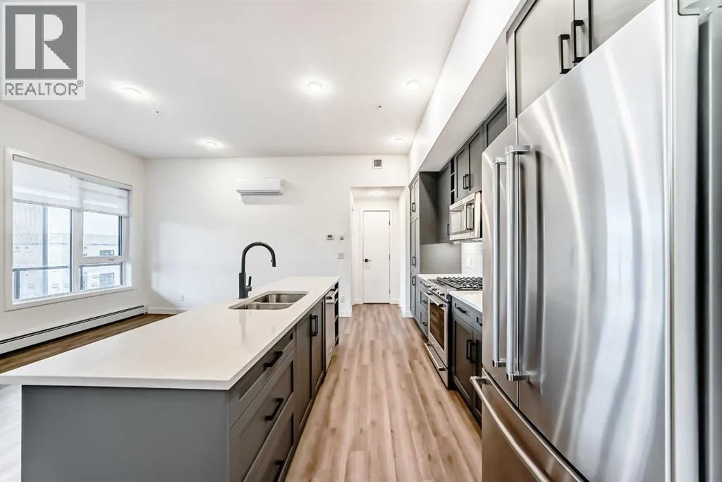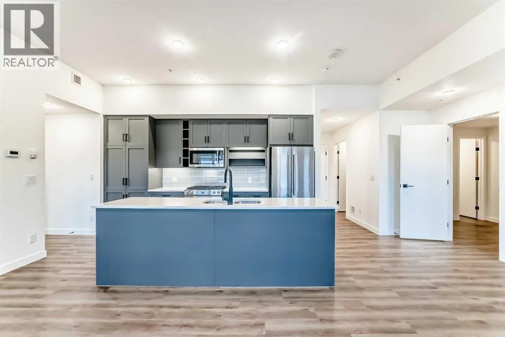 Welcome to a TOP floor condo unit in the August building in the heart of University District. This unit is walking distance to all the great restaurants, coffee shops and the Save on Foods grocery store. (who needs a car!). Unit was marketed as a 3 bedroom plan by the builder (Avi Urban) but currently is a 1 bedroom + den (walk in closet) + 2nd living room (which can be converted back to a bedroom). The balcony is approx 263 sq feet (36 ft long x 6.8ft wide), comes w/ storage units on both ends, & has protective bird screens (upgrade). The balcony is huge and allows for plenty of furniture to be configured on it. Upon entry into the unit, a spacious laundry room with ample storage awaits. The 2nd 4 piece bathroom (tub/shower) w/ quartz countertops and tile flooring. The entire unit except the bathrooms has light brown vinyl plank flooring. The unit feels quite large with 10ft + ceilings & huge floor to ceiling windows which adds a plethora of natural light. The kitchen is large with upgraded SS appliances, quartz counter tops, & grey cabinets (additional added for more storage). The front living room can be converted back to a 2nd bedroom if buyer wishes. The primary bedroom is large with its own access to the patio. The ensuite has dual sinks, quartz counter tops, matching cabinets to the kitchen and a huge walk in shower w/ wand for washing (upgrade). The walk in closet is close to 50 sq ft (7.25 x 7.5) allowing for tons of clothes, shoes, & accessories. The den allows for a twin size bed or murphy bed arrangement and has its own walk in closet. The future buyer has plenty of options to personalize it to their liking. The unit has its own AC unit (upgrade) + upgraded custom finished blinds throughout + Telus fibre optic. The unit comes with 2 titled parking spots (265/266) + separate storage unit (P2). The main floor has a party room that can be booked for gatherings or used as a quit study area. The 2nd floor has an outdoor patio for residents. Don't miss this aw esome opportunity enter condo ownership as a 1st time buyer or downsize from a neighboring NW community and enjoy the numerous amenities that residence have come to enjoy! (id:27476)