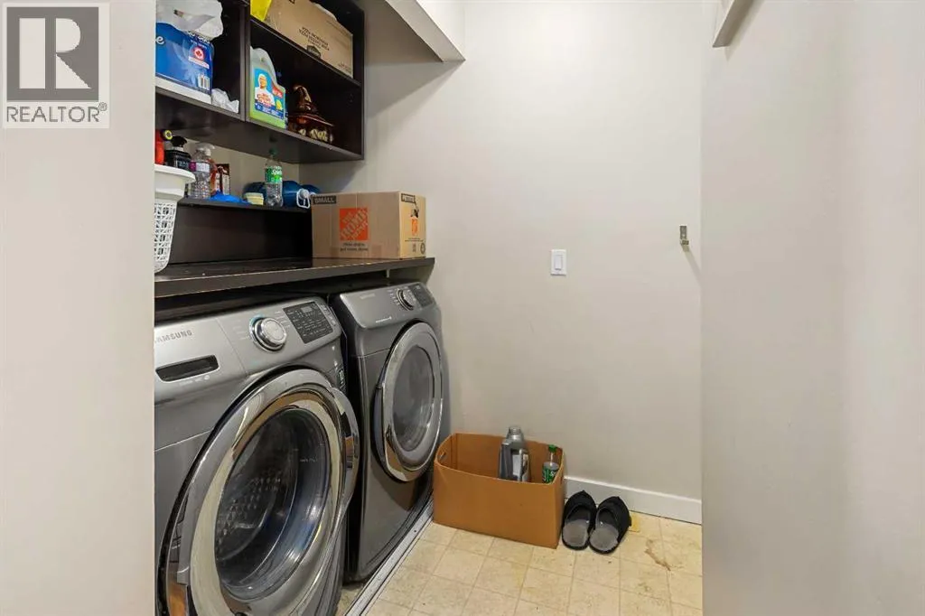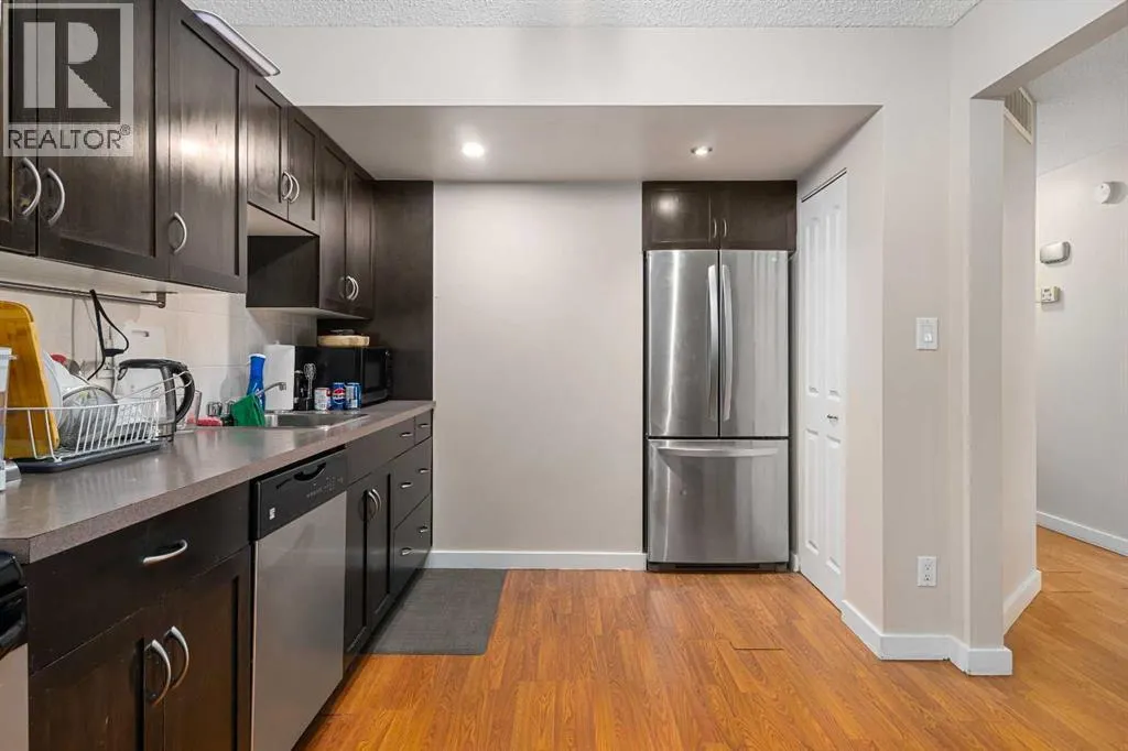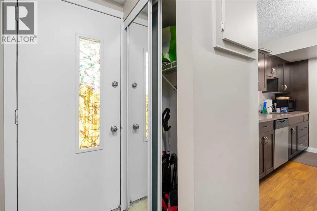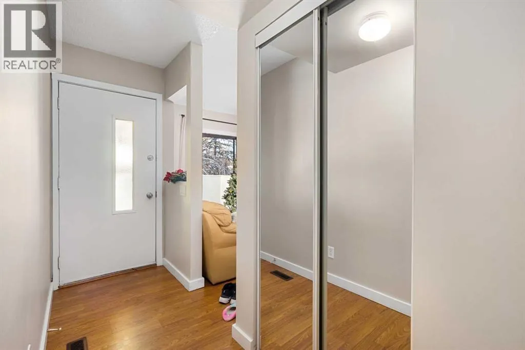 Rare updated 3 bedroom END UNIT in Oakridge at a super competitive price. Within walking distance to South Glenmore Park, this well appointed bungalow style unit will appeal to all buyers; downsizers, empty nesters, first time homebuyers and investors alike. This main floor unit has an open floor plan, laminate throughout and a good sized closed in patio out front. All bedrooms including the primary have newer carpet, while the second bedroom has built in closet organizers. The bathroom has been extensively updated with subway tile and a shiny new vanity, providing a spa like ambiance. The eat in kitchen has new stainless steel appliances, lots of cabinet space and a spacious pantry. The living room is open to the kitchen, creating a bright open concept main level and is flooded with natural light from the sliding glass doors leading to the patio. The full size washer and dryer are a great addition to the rear mud room, and the covered outdoor parking keeps your car free of snow in these long winter months. No worries about street parking as there is plenty of visitor parking that can easily accommodate all of your guests. Call your favourite realtor for a viewing today as this well appointed townhome will not last. (id:27476)