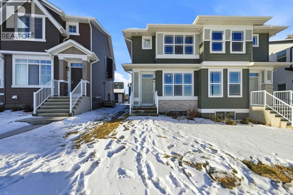 Set in the growing northwest community of Glacier Ridge, this home is surrounded by scenic pathways, parks, and thoughtfully planned amenities. This 2025-built paired home offers modern comfort, everyday functionality, and an exceptional location fronting green space and The Village, with no neighbors in front. The east-facing orientation fills the home with natural light throughout the day. The home remains under new-home warranty, offering added peace of mind for the next owner. A major highlight is the fully finished one-bedroom legal suite, currently rented and generating reliable income, making this an ideal live-up, rent-down opportunity or smart investment. The main floor features a bright living room with large windows, a spacious dining area, and a modern kitchen with quartz countertops, stainless steel appliances, and sleek cabinetry. Upstairs, youâll find a primary bedroom with walk-in closet and private ensuite, two additional bedrooms, a full bathroom, and upper-level laundry. A rear mudroom with bench and closet adds everyday convenience, while the backyard offers a deck and gravel parking pad for off-street parking. The legal suite includes a separate entrance, spacious living area, modern kitchen, bright bedroom, in-suite laundry, and quality finishes, providing privacy and consistent rental appeal. Ideally located near Stoney Trail and Sarcee Trail, with quick access to Beacon Heights Shopping Centre, Costco, and Sage Hill Plazaâoffering a full range of shopping, dining, and everyday amenities. Directly across the street is The Village (opening April 2026), featuring a skating ribbon, walking paths, basketball courts, tennis court, ice rink, splash park, all-ages playground, patio spaces, firepit, and a toboggan hill. Inside, residents will enjoy a gymnasium, banquet space, rentable rooms for programs and private events, and welcoming seating and gathering areas. (id:27476)