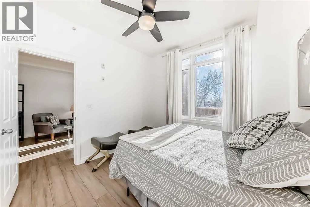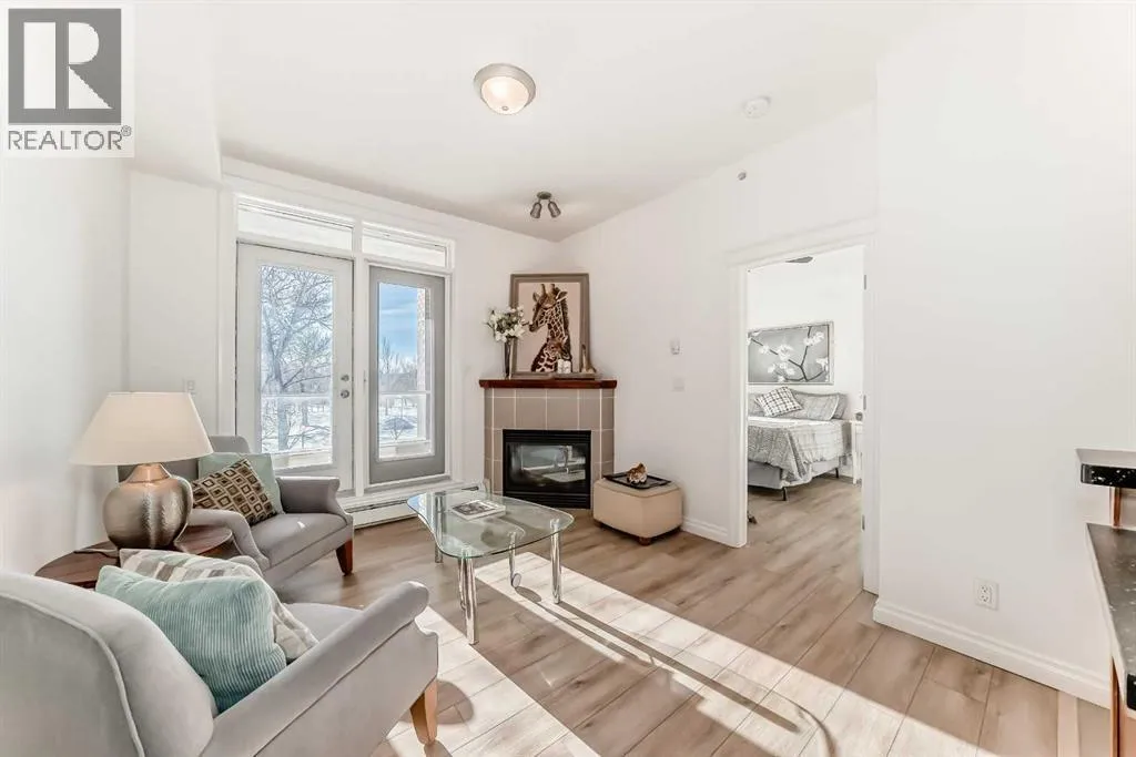 Donât let the size fool youâthis bright and beautifully updated one-bedroom home delivers exceptional value in one of Calgaryâs best locations. Brimming with natural light, the open-concept layout and soaring 9â6â ceilings create an airy, inviting atmosphere from the moment you arrive. Recent upgrades include stylish new laminate flooring, fresh paint, and modern light fixtures.The custom maple kitchen is thoughtfully designed for everyday living: Corian countertops, new stainless steel appliances, functional island with breakfast bar, and a large pantry for optimal storage - features buyers consistently look for. The spacious living room is anchored by a cozy gas fireplace and opens onto a large, private south-facing patio with tranquil views overlooking the Shaganappi Golf Course.The sun-filled primary bedroom provides ample space with two closetsâincluding a walk-inâand is complemented by a well-appointed ensuite bathroom with a linen closet. Experience ultimate everyday conveniences with in-suite laundry, a titled heated underground parking stall, and a separate storage locker - must-haves in todayâs market.Enjoy the outstanding amenities in this well-managed building which includes; guest suite, fully equipped fitness centre, party room with patio, boardroom, car wash, woodworking shop, and versatile common areas. The location is unbeatableâjust steps to Westbrook C-Train station, minutes to downtown Calgary, and quick access west to the Canadian Rockies and Banff National Park.This is an excellent opportunity to own a modern one-bedroom in a concrete building with premium amenities and underground parking. Donât miss outâschedule your private showing today and make this exceptional home yours! (id:27476)