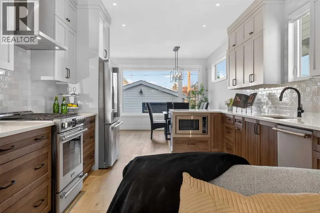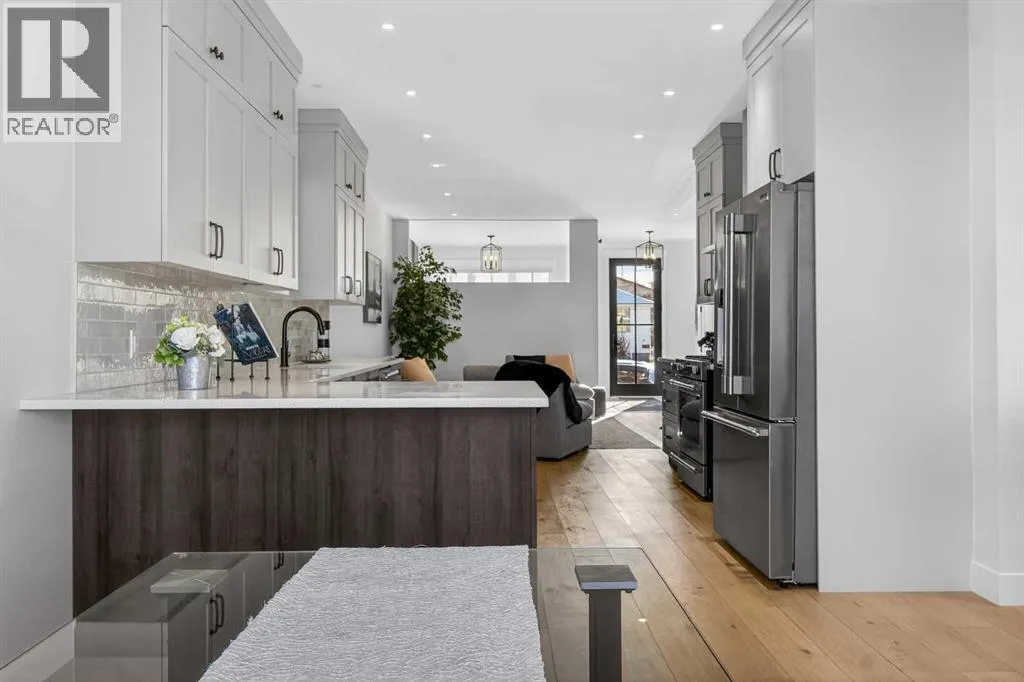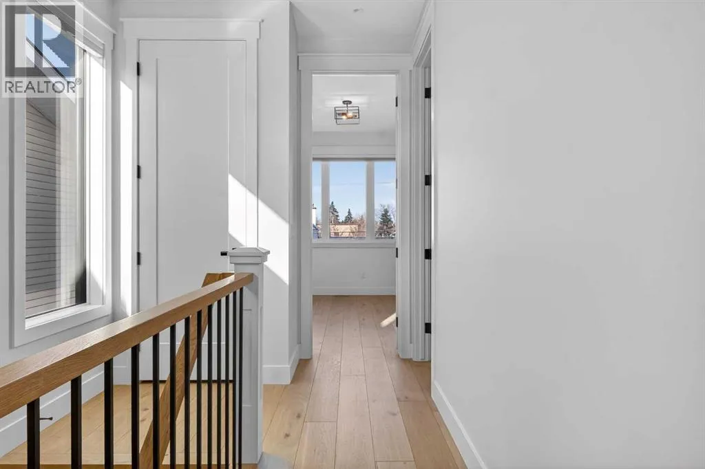 You know a home is beautifully crafted when it is custom built by the builder as their own personal family home. That is exactly the case with this stunning detached infill which showcases exceptional craftsmanship and thoughtful design throughout. A sunny south-facing front office welcomes you into the home, while European white oak flooring flows seamlessly across the main floor, up the staircase, and throughout the second level, including all bedrooms. Soaring 9â ceilings on every level and large, high-end Lux windows flood the home with natural light, enhancing the contemporary yet warm and timeless designer finishes. The centrally located kitchen offers a highly functional layout with an abundance of counter space, making it ideal for both everyday living and entertaining. The oversized primary retreat features a custom-designed ensuite highlighted by an eye-catching black grid-style shower, while all bedrooms include built-in walk-in closets for optimal storage. The large finished basement is roughed-in for in-floor heating, providing future comfort and flexibility. Additional features include a fully finished and insulated garage with gas line rough-in and additional rear garage door, full radon testing equipment installed in the utility room, and meticulous attention to detail throughout. Located in a desirable, community-oriented neighbourhood close to downtown, amenities, schools, parks, and major thoroughfares, this home represents absolutely incredible value for a fully completed property built to the highest standards of care and quality. (id:27476)