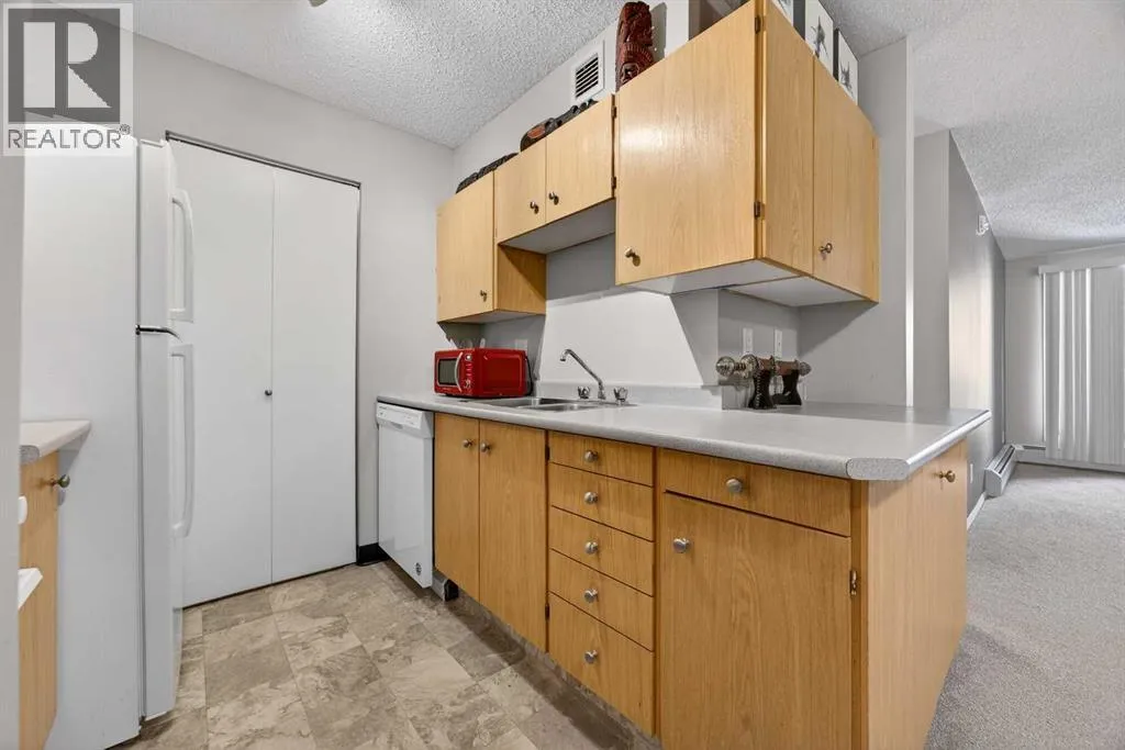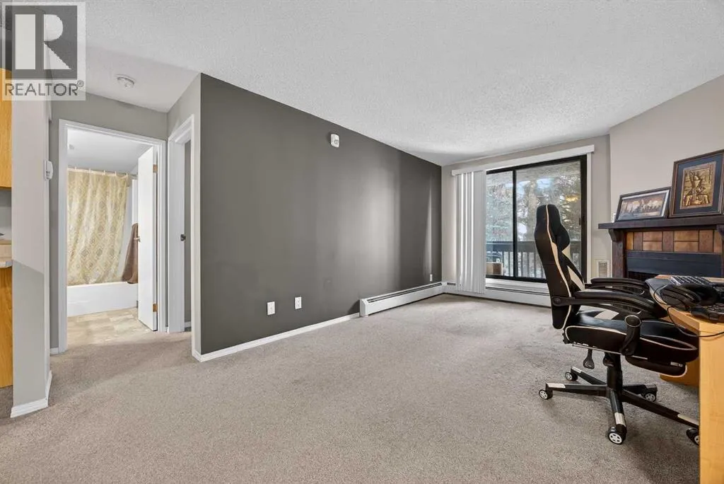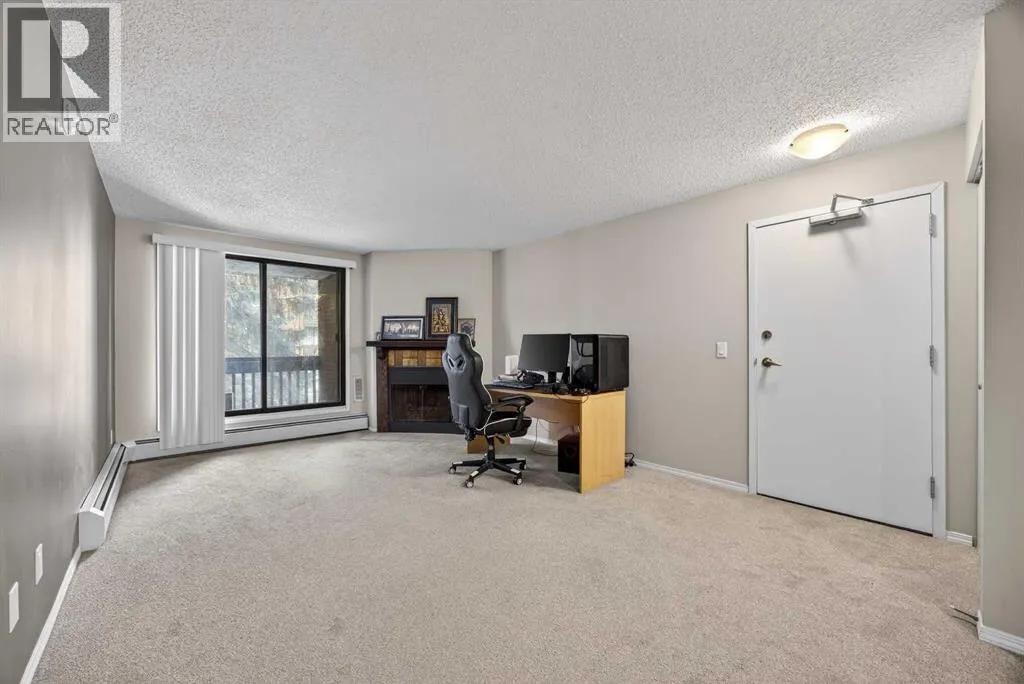 Welcome to this inviting second-floor one-bedroom condo where a rare wood-burning fireplace sets the tone for warmth, charm, and relaxation â a feature that brings personality you wonât find in most apartment-style units. The spacious open-concept living and dining area is bright and welcoming, leading to a private balcony with peaceful views and a convenient outdoor storage cabinet perfect for seasonal items. The well-designed kitchen offers ample cabinetry, plus a generous in-suite pantry/storage room with laundry hookups, giving you the flexibility to install your own washer and dryer. For added convenience, the building also features a shared laundry room, making wash-day easy while you plan future upgrades. A valuable bonus: this home includes an assigned parking stall, ensuring you always have a dedicated space â a major benefit in this highly walkable SW neighbourhood. Located in the established community of Kingsland, youâre just steps from cafés, shopping, and dining along Macleod Trail, and only minutes from Chinook Centre, public transit, and the C-Train for quick access around the city. Whether youâre a first-time buyer seeking affordability, an investor looking for a high-demand rental location, or someone wanting to downsize into a quiet, well-connected community â this second-floor home offers exceptional value, everyday convenience, and cozy character in one of SW Calgaryâs most accessible neighbourhoods. (id:27476)