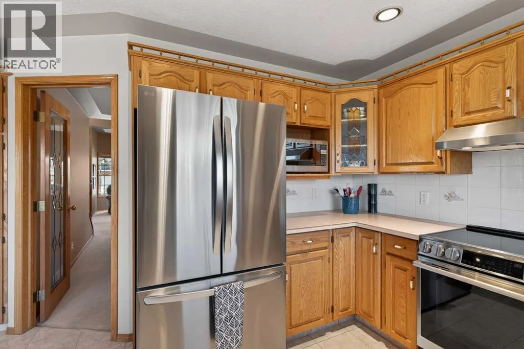 Backing West onto a winding urban environmental reserve is this mint-condition two storey in the highly sought-after estate community of Hamptons. Custom-crafted for the builder, this truly wonderful home enjoys a total of 5 bedrooms & 4 full bathrooms, glistening tile floors & oak woodwork, 2 fireplaces, oversized 2 car garage & a host of updates including new furnaces, metal roof, hot water tank & new PEX plumbing. Perfectly designed with the family in mind, you will love the inviting design & flow of this beautiful home, which features the gracious living room with bow window & soaring vaulted ceilings, elegant open concept formal dining room & spacious West-facing family room with brick-facing fireplace, built-ins & views of the backyard. The bright & sunny kitchen is loaded with cabinets & counterspace, & comes complete with phone desk, dining nook with access to the backyard deck & upgraded appliances including stainless steel Miele dishwasher & brand new LG stove (2026) & LG fridge (2026). Upstairs there are 3 great-sized bedrooms & 2 full bathrooms, highlighted by the oversized ownersâ retreat with big bow window, large walk-in closet & gorgeous ensuite â renovated in 2022 - with tile floors, oversized glass shower, free-standing soaker tub & quartz-topped double vanities. The other 2 bedrooms each have their own private balconies & share a Jack & Jill-style bathroom with 2 sinks. The lower level is finished with another bedroom & bathroom with steam shower, cold room with built-in shelves & fantastic rec room with built-in shelving, lounge with gas stove fireplace & home office with built-in desk & shelving. The main floor also has your laundry room with LG washer & dryer, another bedroom (or home office) & bathroom with shower. Additional features & extras include a 2nd floor loft overlooking the living room, oversized garage with built-in storage, fenced backyard with gate to the reserve & deck with under-deck storage & new covering/glass/railings (2020), underground sprinklers & in addition to the new PEX plumbing (2025), new furnaces (2024), water tank (2019) & metal roof (2011 with transferrable lifetime warranty), there is newer cladding on the windows (2012), new garage door (2016), 3 new toilets (2022), 2nd floor window blinds (2022), landscaping (backyard & side in 2021) & vinyl decking on the 2 upper balconies (2020). A truly incredible home you will be proud to call your very own, here on this quiet crescent within walking distance to the Hamptons Park tennis courts & bus stops, just minutes to the Hamptons School & local shopping plus quick easy access to highly-rated schools & major retail centers, Crowfoot Centre & LRT, University of Calgary, hospitals & downtown. (id:27476)