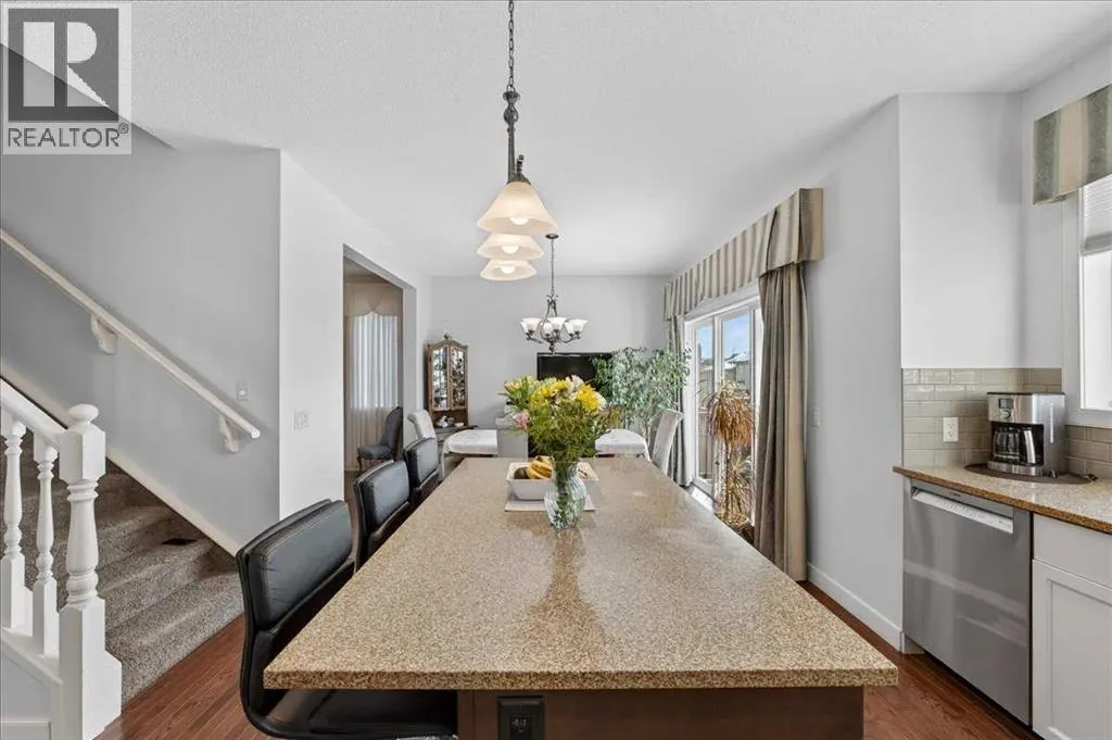 Open House Sunday, Feb 15, 1-3pm. Youâll be impressed the moment you step into this beautifully designed home featuring a spacious and functional floor plan with 3 large bedrooms and 2.5 bathrooms. The main floor showcases 9-foot ceilings, rich hardwood flooring, and a large living room complete with a cozy gas fireplaceâperfect for relaxing or entertaining. The stunning kitchen is a true highlight, with attractive cabinetry, granite countertops, a walk-in pantry, and a huge island with breakfast bar. The adjacent dining area features patio doors that open to the rear deck, ideal for indoor-outdoor living (sunny west exposure). The main floor also includes a home office/computer area and a spacious mudroom with convenient access to the attached garage. The upper level is equally impressive, featuring a large family room, three generous bedrooms, and a convenient laundry room with extra storage space. The primary Bedroom is a perfect place to relax with large windows with city viewsâenjoy the night lights! The luxurious 5-piece ensuite includes a deep jetted tub, separate shower, dual sinks, and a large walk-in wardrobe closet. The basement is ready for future development, with framing already started, it offers plenty of additional storage space. This home is in an excellent location close to parks, walkways, Creekside Shopping Centre and Evanston Towne Centre. Youâll appreciate the easy access to major roadways throughout the city. This is the perfect place to call home! (id:27476)