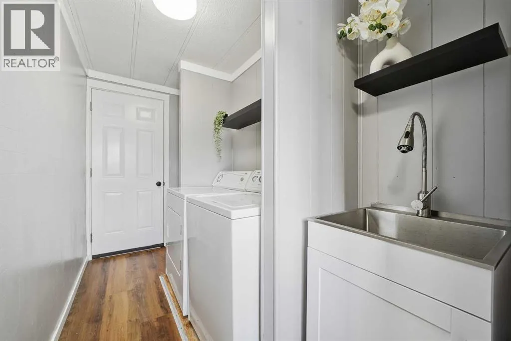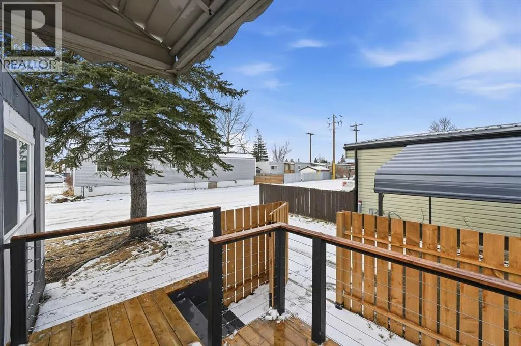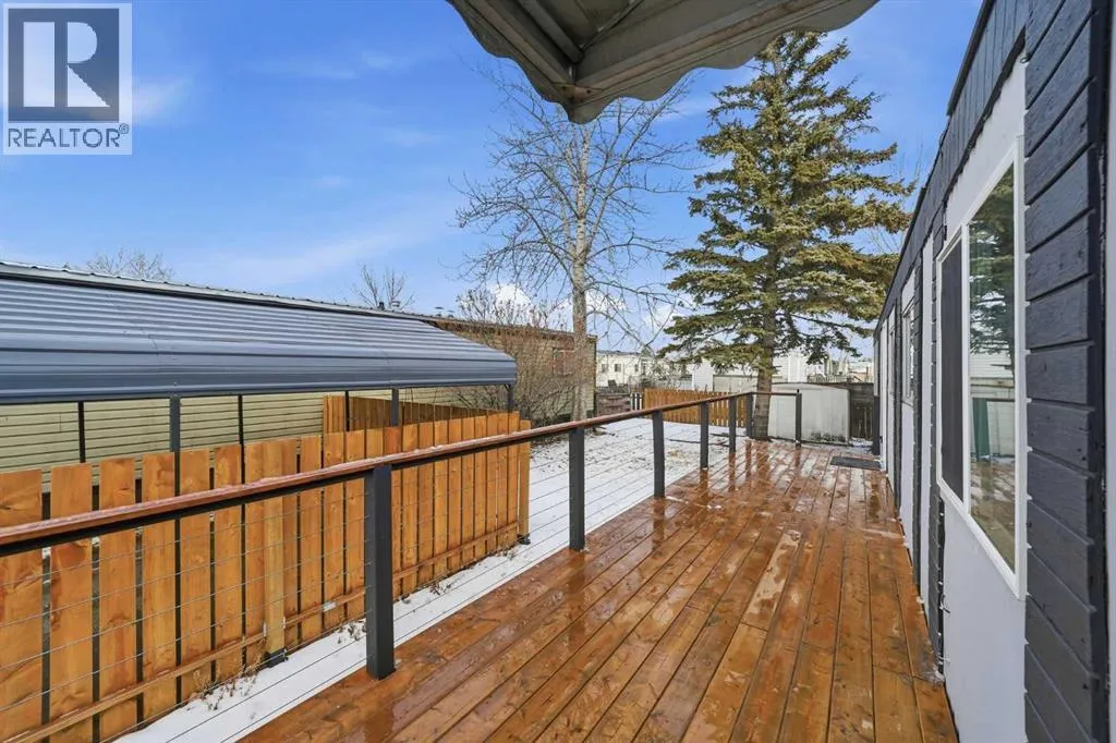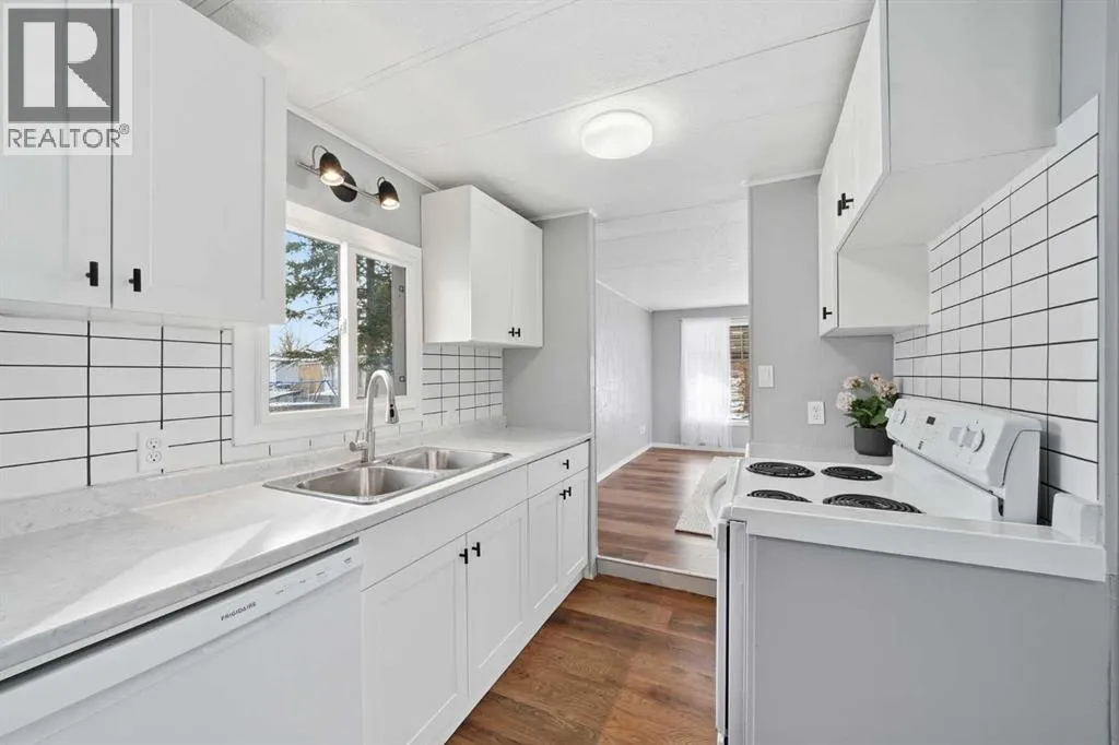 Discover this charming, spacious mobile home, tastefully updated to offer modern comfort and style that works as a perfect canvas to add your own personal touches. With two large bedrooms and a convenient Jack & Jill bathroom accessible from both the primary bedroom and hallway, this home is perfect for families or those seeking a functional layout.Recent upgrades completed within the last 9 months include fresh paint throughout the interior and exterior, new LED light fixtures, and a newly installed back door. Enjoy the natural light streaming in from the new windows in the kitchen, living room, and dining room. The bathroom has been updated with 2 new vanities, a new toilet, updated plumbing and electrical, new lighting and stylish new backsplash tiles. The kitchen also boasts a newly installed dishwasher and new tile backsplash to make it modern and functional. The back entry and laundry area has been updated to include additional shelving and a laundry sink with cabinet to make laundry a breeze.Step outside on to a newly built oversized deck with decorative railings and a fully-fenced yard â ideal for entertaining, relaxing and hanging out with the family. A brand-new carport large enough to fit a full-sized pickup truck will keep your vehicle protected year-round and still allows room for a second car to be parked in the driveway.This home is nestled in the welcoming, family-friendly community of Calgary Village. Managed by Cove Communities, the community centre provides on-site staff, as well as amenities like a games room, fitness room, community kitchen that can be used for large gatherings, and a playground for residents to enjoy. Monthly pad rental fee of $1299 includes your garbage, recycling, sewer, water, community maintenance, security patrols and professional management fees.Move right in and experience the perfect blend of modern updates and community living. Donât miss your chanceâschedule a viewing today! (id:27476)