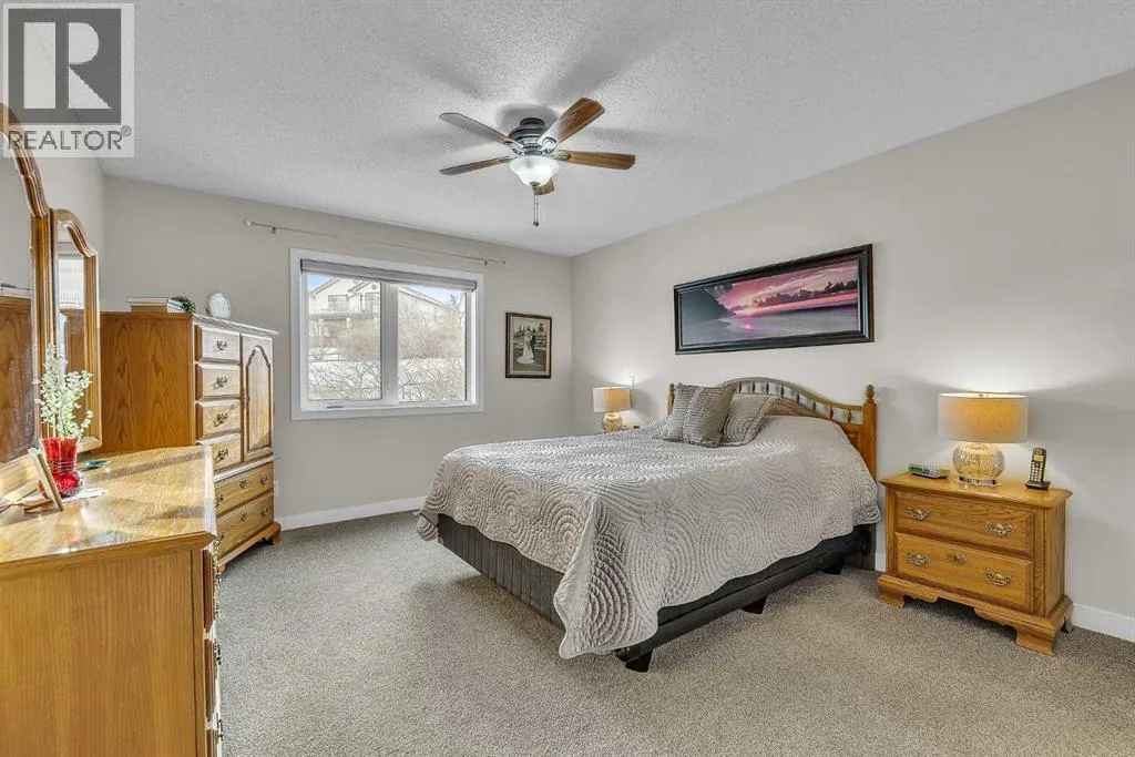 Phenomenally located and set at the end of a whisper quiet street, this Panorama Hills home is stunning inside and out. A neatly landscaped front yard invites you inside, where soaring ceilings and upper storey windows in the entry set a tone of airy natural light that continues throughout. The main living space is bright and open, with windows along the back wall showcasing the south-facing backyard and the green space beyond. Luxury vinyl plank flooring in the living room pairs with the gas fireplace for a sense of cozy warmth. Light maple cabinetry in the kitchen provides a homey elegance, and the eat-up island is sure to be the hub of your gatherings. Newly upgraded appliances include an induction range, and a full pantry makes staying stocked up on snacks easy. Full height windows and a glass pane patio door merge your indoor and outdoor spaces, allowing your summer get-togethers to flow from snacks in the sunny dining area to alfresco eating. New paint throughout enhances the fresh aesthetic, and all the windows are new triple pane. A powder room on this level adds convenience, and the entryway from the double-attached garage includes a washer and dryer and added storage cupboards. Upstairs, the bonus room has its own wing along the front of the house, ideal for families with different bedtimes. New carpet on this level feels luxurious, as do the custom Zebra blinds throughout the home. The primary bedroom is spacious and serene, overlooking the pathway behind the house. This self-contained retreat is complete with blackout blinds, a walk-in closet, and a full ensuite bathroom. Two more bedrooms are generously sized, and the main bathroom design is timeless; perfect for a busy household. Downstairs, the finished basement is the ultimate chill zone. Architectural ceilings and recessed lighting add unique interest, and shiplap wainscoting elevates the style. A dry bar makes this space the perfect game day hangout. Another bedroom and remodeled bathroom are fanta stic for guests or a bigger family. Functional upgrades include a Kinetico water softener. Outside, a picturesque, professionally landscaped yard is sure to be your favourite spot. A huge, tiered deck offers lounging, grilling, and eating areas. Kids or pets will love playing in the lush lawn, and the retaining wall was done in a low maintenance style. Stone stairs give you direct access to the green belt and pathway that connects throughout the community to parks, playgrounds, and the local hiking area. This home is also only steps to the newly renovated community centre and the Country Hills shopping area, which holds a vast array of stores, restaurants, and services. Both public and Catholic schools and the transit terminal are nearby â convenient for families and commuters â and the Vivo Centre offers recreation facilities, activities, and a public library just up the street. If you leave the community, Deerfoot and Stoney Trails are close, connecting you to the rest of the city. (id:27476)