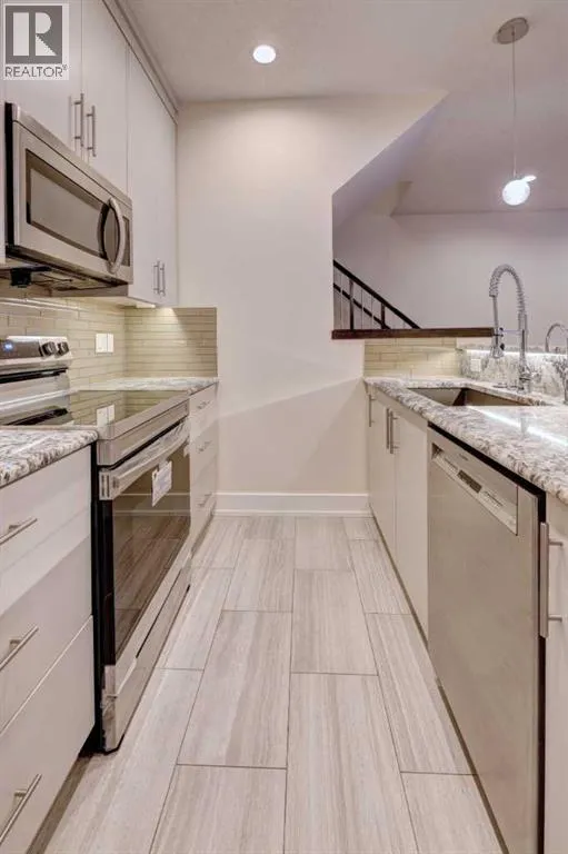 Wonderful townhouse located in the vibrant community of Crescent Heights. This fabulous home offers a total of three bedrooms and 3.5 bathrooms, a single car garage space, and a wonderful heat pump/cooling system for year round comfort. Enjoy the convenience of all the shops and restaurants just steps away. Downtown is virtually minutes away; choose to walk or by public transit. This home offers a modern living space with high ceilings, hardwood flooring throughout the house, a fully finished basement with a large family room and an extra bedroom for your guest. Each of the bedrooms in the upper level has it's own en-suite and walk-in closets. Modern finishing throughout the home combined with a functional open concept layout. Quick access in and out of the community makes it a breeze if you are going across town or the mountains. Look no further; location, location...Don't miss out on this one; call for your private viewing today. (id:27476)