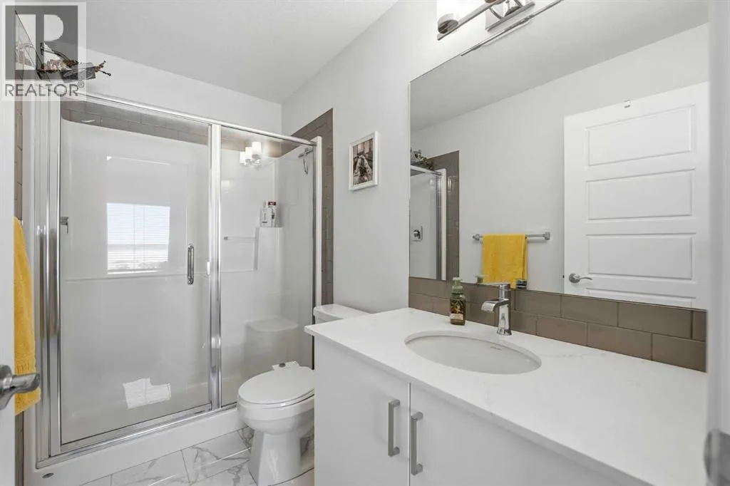 Welcome to #518, 850 Belmont Drive SWâa modern three-storey townhome offering smart design, quality finishes, and immediate possession in the growing community of Belmont. Built in 2023, this well-planned home provides 1,200 sq. ft. of above-grade living space plus a fully finished walk-out basement with a large flex roomâideal for a home office, gym, or media area.The open-concept main floor is finished with durable vinyl plank flooring and features a contemporary kitchen with stone countertops, stainless steel appliances, and a breakfast bar, flowing seamlessly into the living and dining areas. A convenient 2-piece powder room completes this level.Upstairs, both bedrooms include private ensuite bathrooms, offering excellent separation and functionality, while upper-level laundry adds everyday convenience. Enjoy east-facing morning light from the private balcony, complete with a gas line for your BBQ.Practicality continues with a single attached garage plus driveway parking for two vehicles. Set within a professionally managed condo, this low-maintenance home is close to schools, shopping, sidewalks, and future amenities, with quick access to major routes and South Calgary destinations.An excellent opportunity for first-time buyers, downsizers, or investors seeking a turnkey property in a rapidly growing neighbourhood. (id:27476)