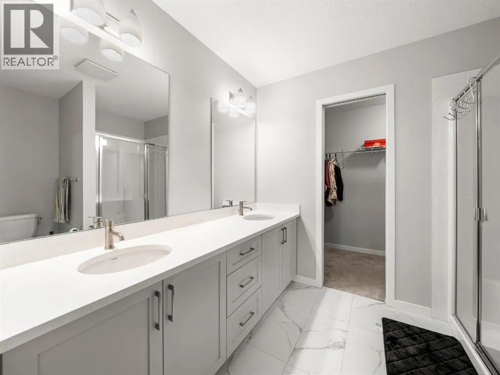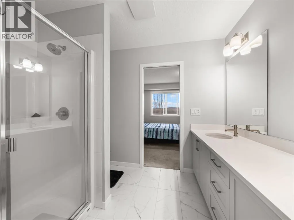 Welcome Home to Modern Living in the Heart of Copperfield! Step into this bright townhome that truly has it all. Inside, youâll find two SPACIOUS BEDROOMS, each with its own full bathroom. One features a beautiful DOUBLE VANITY ENSUITE and WALK-IN CLOSET, making this layout perfect for families, guests, or roommates.The main level offers an open and modern design with laminate floors, a convenient powder room, and a sleek kitchen complete with quartz countertops, stainless steel appliances, and a BBQ gas line on the east facing BALCONY that is ideal for your morning coffee or evening grilling.Enjoy your PRIVATE WEST PATIO that opens directly onto GREEN SPACE, a rare and peaceful feature that only select homes in this complex offer. Upstairs, laundry is conveniently located, and on the lower level, youâll find a OVERSIZED TANDEM ATTACHED GARAGE with space for two vehicles, extra storage, and a driveway for additional parking.This pet friendly complex is known for its friendly neighbours, beautiful modern design, and a well managed condo board that keeps everything maintained and looking great. Located just steps from Copperfield School, parks, and playgrounds, this home offers the perfect blend of comfort, outdoor living, and community connection.Book your private showing today and explore the 3D tour to see all that this wonderful home has to offer. (id:27476)