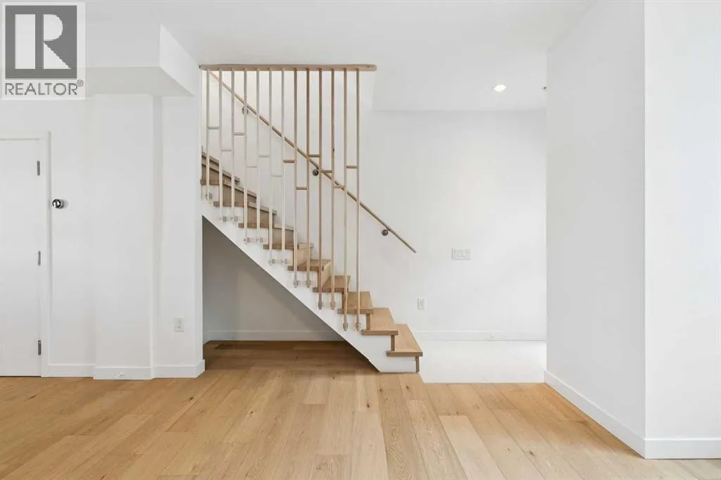 * SEE VIDEO * This impressive 1,187 sq. ft. premier townhome in the sought-after Vento complex truly has it all. Ideally located in the heart of historic Bridgeland, youâre just steps from trendy shops, popular restaurants and pubs, parks, the Bow River Pathway, and the LRT, with downtown Calgary and the Calgary Zoo only minutes away.This fully renovated home features 3 outdoor living spaces, 2 bedrooms plus a den, 2 bathrooms and 2 TITLED UNDERGROUND PARKING STALLS, along with a secure storage locker and dedicated bike storage. The Vento is a well-managed, LEED-certified green building designed for energy efficiency and comfort, complete with a Lifebreath Heat Recovery Ventilator that circulates fresh air throughout the home.Your private front entrance leads into a bright, open-concept main floor with 9-foot ceilings, hardwood flooring, and large windows that flood the space with natural light. The spacious living and dining areas flow seamlessly into the well-appointed kitchen, featuring ceiling-height cabinetry, ample counter space, stainless steel appliances and an island â perfect for both everyday living and entertaining. Upstairs, youâll find a den, two generously sized bedrooms, and a full bath. The south-facing primary bedroom has a private ensuite and French doors that open onto a private balcony overlooking the courtyard. The real highlight - an expansive ROOFTOP PATIO, where you can relax or entertain while taking in the stunning downtown skyline â a rare and highly desirable urban luxury!Additional comforts include in-suite laundry and in-floor radiant heating. Combining space, sustainability, and an unbeatable inner-city location, this townhome offers outstanding value and lifestyle in one of Calgaryâs most desirable communities. Book your private showing today. (id:27476)