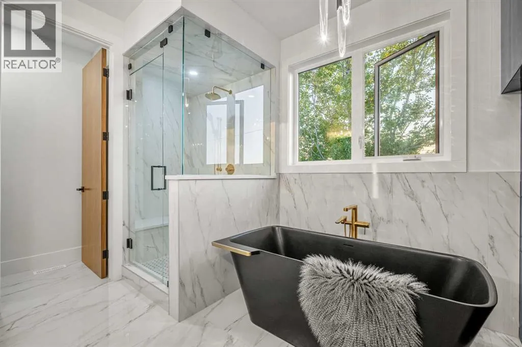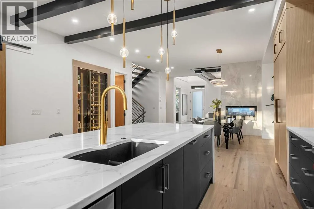 OPEN HOUSE: Sun., Feb 15: 1-3pm! DISCOVER ELEVATED LIVING! Get ready to redefine your lifestyle with this breathtaking, brand new, two-story walk-up that offers uninterrupted, jaw-dropping views of Calgary's downtown skyline! Presented by premiere builder, Twin Real Estate Holdings, this property offers double the wow factor in the well-established SW community of Shaganappi. Imagine this...your west-facing backyard directly borders an 11 acre city park, complete with scenic pathways, tennis/basketball courts, skating/hockey rinks, dog park and an active community association that keeps the energy alive year-round. Step inside and prepare to be wowed by grand design, opulent finishes and thoughtful artistry throughout. From the soaring 10-foot vaulted ceilings to the natural light streaming through abundant walls of windows, every corner of this home exudes elegance and prestige. Picture cozy evenings in the spacious living room, anchored by a stunning double-sided gas fireplace, or hosting lavish dinners in the dining area, complete with a 48" built-in wine wall cooler for your prized private collection. The chef-inspired kitchen is a culinary dream come true, boasting only the best: a 60" SUB-ZERO refrigerator/freezer, a 48" WOLF 6-burner gas cooktop with dual wall ovens, a MIELE coffee system and a BOSCH dishwasher. The walk-in butlerâs servery plus pantry ensures seamless entertaining and organization, while patio sliders open to your outdoor deckâa perfect spot to soak up summer sunsets while overlooking your landscaped yard. Need space for work or play? The main floor provides two versatile flex rooms, ideal for an executive home office, craft/hobby space or a childrenâs playroomâtailored to suit any lifestyle. The floating staircaseâframed by an elegant wall of marble tileâtakes you upstairs to even more grandeur. The bonus room offers spectacular skyline views, while two additional bedrooms each feature private ensuites and walk-in closets. The pièce de rési stance is the ownerâs retreat. The primary suite is a sanctuary of luxury, complete with a designer walk-in closet, a private west-facing balcony overlooking the park (sunsets and nightcaps, anyone?), and an unforgettable spa-like ensuite. This private bathroom features a double-sided gas fireplace, a freestanding black soaker tub, a separate glass steam shower, dual sinks and heated floorsâa true oasis of relaxation. The lower level is designed for casual entertaining and comfort, offering a rec/media/games room and wet bar, a fourth bedroom, a den/flex/5th bedroom and a 4 piece bath. Access the attached heated double garage via the mudroom, or store your larger toys in the rear detached heated single garage, spacious enough for a pickup truck. This home is perfectly positioned to enjoy the best of Calgaryâsteps from the trendiest restaurants, boutique shops and social hubs of 17 Avenue, with only a 5 minute commute to downtown. Donât miss your chance to make this incredible luxury home yours! (id:27476)