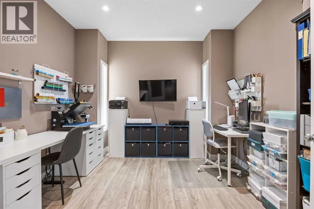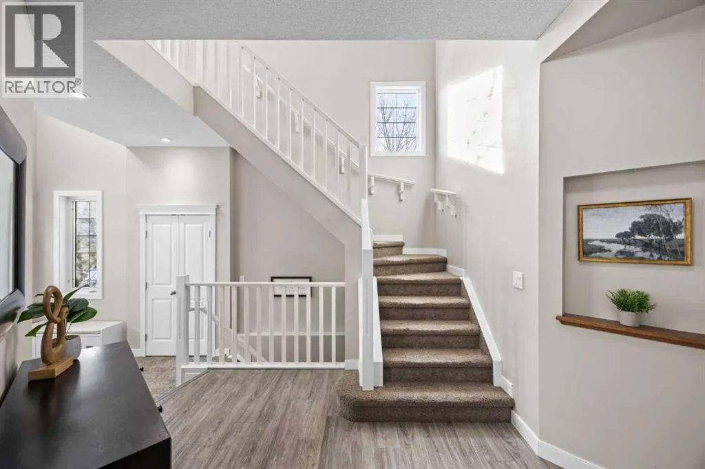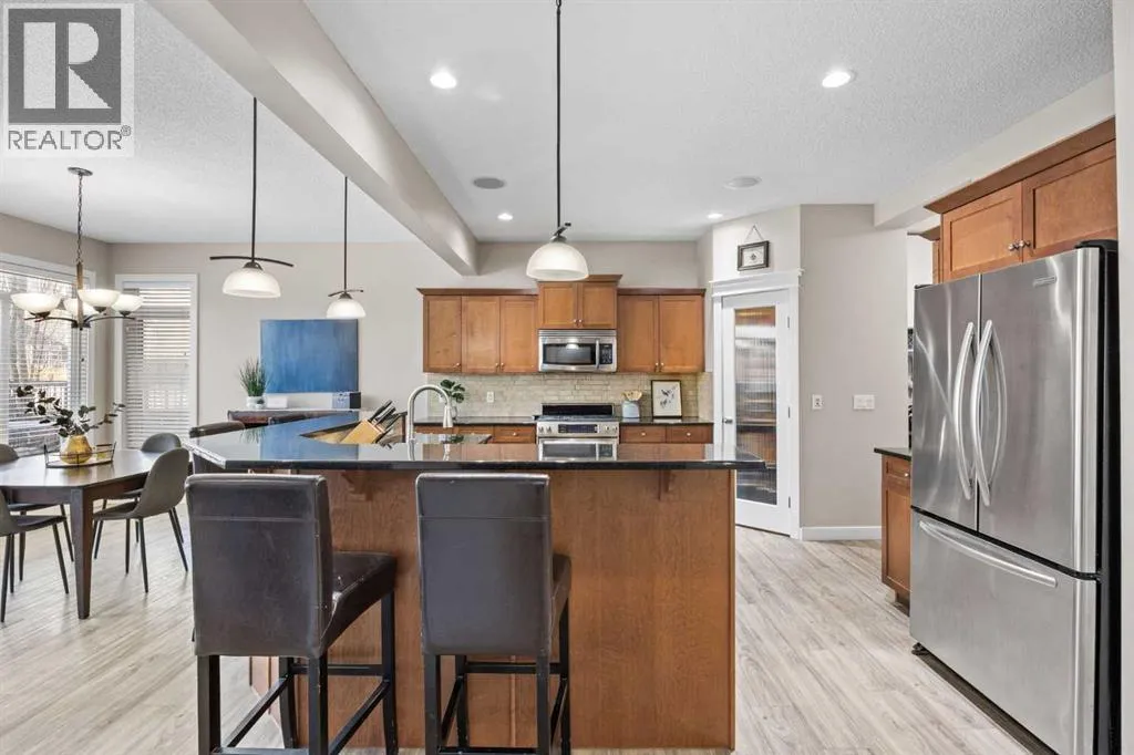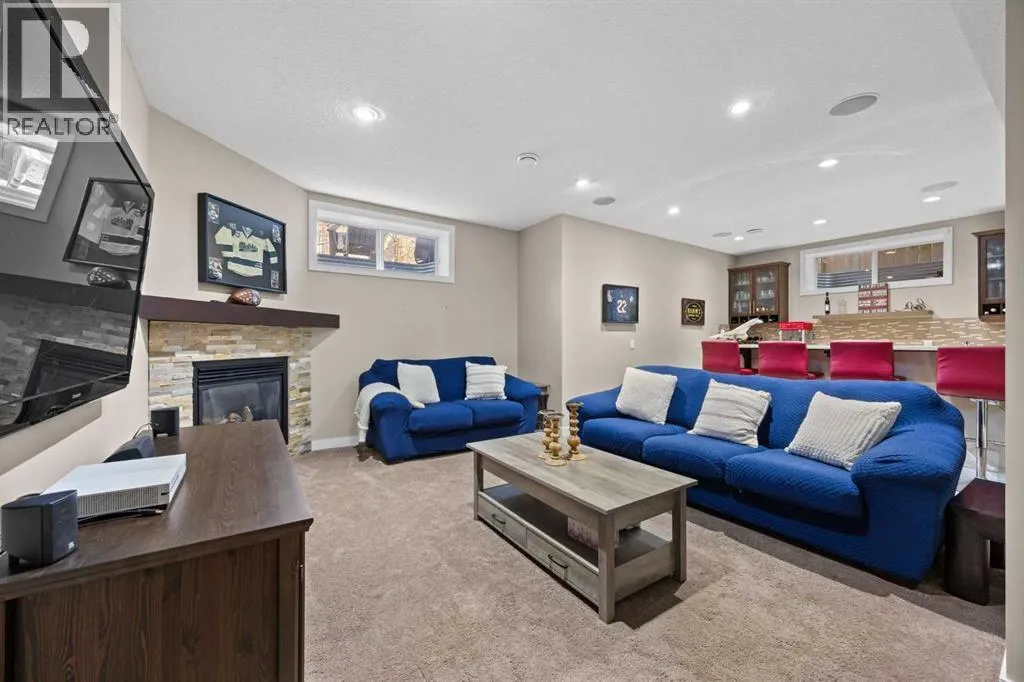 Offered by the original owners, this home has been thoughtfully maintained and well cared for since new. Its beautiful curb appeal is highlighted by classic dormers that add architectural interest and bring natural light to the upper level, along with a charming balcony over the garage framed by transom windows. With approximately 3360 sq ft of fully developed living space, the layout is practical, comfortable, and well suited for both everyday living and entertaining.Stepping inside, the main floor offers an open-concept design where a large kitchen connects seamlessly to the living and dining areas. The living room feels warm and inviting with a natural gas fireplace, while the dining space is perfectly sized for hosting friends and family. A dedicated main-floor office provides a quiet and functional space for working from home.Upstairs, the vaulted bonus room is a true standoutâbright, spacious, and filled with natural light, with direct access to the front balcony, an ideal spot to enjoy the morning sun. This level also features upper-floor laundry, two generously sized bedrooms, and a spacious primary suite complete with a large ensuite and walk-in closet.The fully developed basement is designed with entertaining in mind. A large wet bar comfortably seats four, with plenty of room for larger gatherings, and opens to a generous recreation room anchored by a cozy gas fireplace. An additional bathroom on this level adds flexibility for guests and everyday use. Major updates include a brand-new furnace with a five-year warranty, and roof and siding replacement completed in 2015.Set on a corner lot, the home benefits from enhanced privacy and additional parking. Outside, the yard is beautifully landscaped with mature trees, a composite deck, and a rubber-coated concrete patioâperfect for relaxing or spending time outdoors. The location is exceptional, just steps from the Royal Oak Community Centre, William D. Pratt Middle School, and Royal Oak Elementary Sc hool, with easy walking access to Royal Oak Centre amenities and the Rocky Ridge YMCA.This is a well-rounded home in a highly convenient location, ideally suited for a growing family. (id:27476)