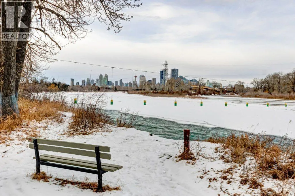 A RARE and highly sought-after setting, backing directly onto the Bow River and pathway in one of the best locations in Inglewood. This beautifully upgraded townhouse offers the perfect blend of comfort, style, and connection to nature. Your new home features a thoughtfully updated kitchen with quartz countertops, modern backsplash, and stainless steel appliances, complemented by vaulted ceilings, tile flooring, and warm maple hardwood. The main level is designed for everyday living and easy entertaining, with your kitchen and dining area opening onto the deck and yard where mature trees and the Bow River create a peaceful, private backdrop. Upstairs, unwind in the inviting family room with a cozy gas fireplace, powder room, and a southwest-facing sundeck - perfect for soaking up the afternoon and evening sun. The top floor offers a desirable double primary bedroom layout, with both bedrooms featuring walk-in closets and private 3-piece ensuite bathrooms. One bedroom includes a built-in Murphy bed - ideal for hosting guests or easily removed to enjoy a full second bedroom. This level also includes a versatile den, perfect as a home office, reading nook, yoga studio, or whatever your heart desires. The fully finished basement adds even more flexibility, ideal for an art studio, home gym, or recreation space. Additional upgrades include air conditioning, a newer furnace, a newer hot water tank, and an epoxy-coated garage floor, providing year-round comfort and peace of mind. All of this is set in desirable Inglewood, just steps from the Bow River pathway and moments from vibrant restaurants, shopping, coffee shops, minutes to downtown, and with quick access to Deerfoot Trail and the airport. (id:27476)