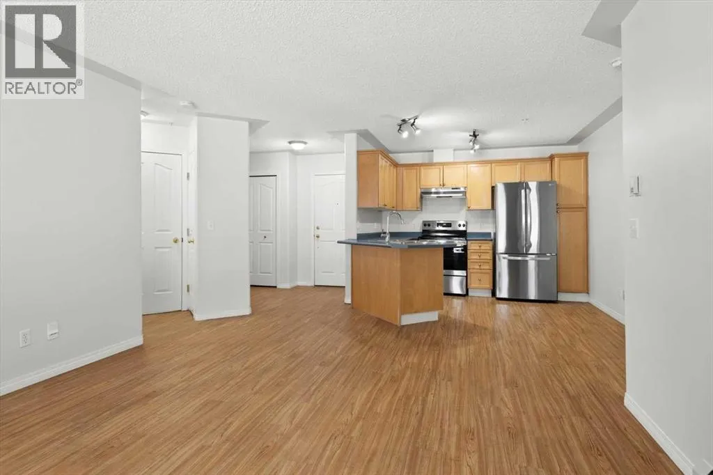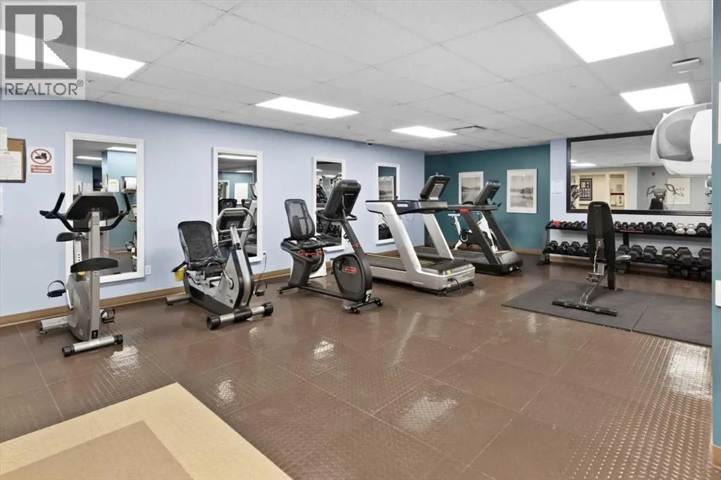 Welcome to this beautiful 2-bedroom, 2-bath unit featuring underground parking, fresh paint (2022), and vinyl flooring (2015). Large windows brighten the open-concept main living area, creating a spacious and inviting atmosphere.The kitchen is equipped with NEWER stainless steel appliances, and the east-facing balconyâwith glass railing, on-deck storage shed, and a gas line for your BBQâprovides the perfect outdoor extension of your living space.The primary bedroom offers a walk-through closet with built-in storage shelves and a private ensuite. A second generously sized bedroom and a 4-piece bathroom complete the interior layout.This building includes an impressive range of amenities: a fully equipped gym, a movie theatre, a games room, a library, a social club, and even an on-site hair salon. Access to community amenities is available for just $25 per month.Ideally located, youâre only minutes from walking paths, tennis and volleyball courts, the train station, shopping centres, the YMCA, and have quick access to both Crowchild Trail and Stoney Trail. (id:27476)
