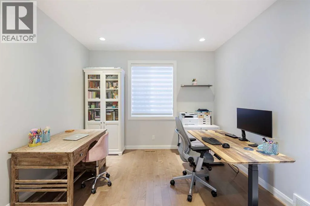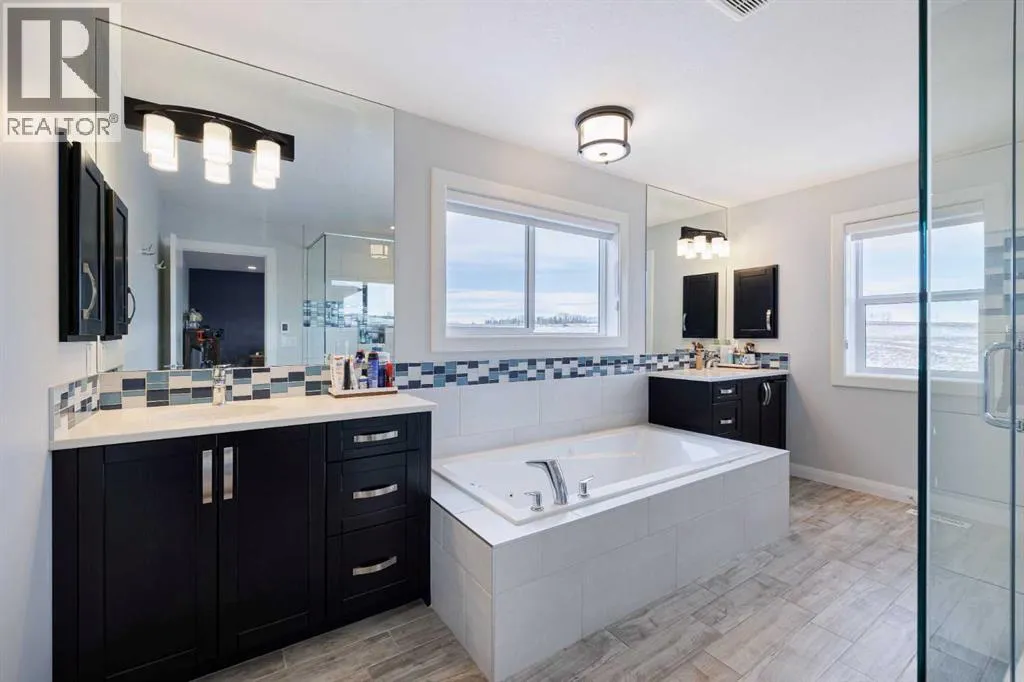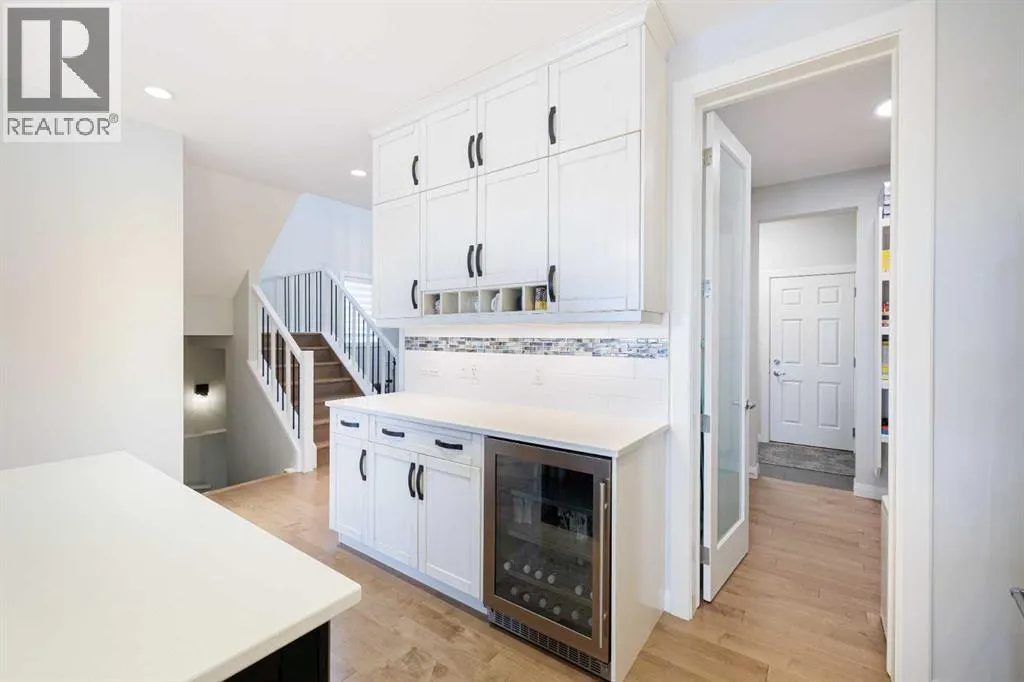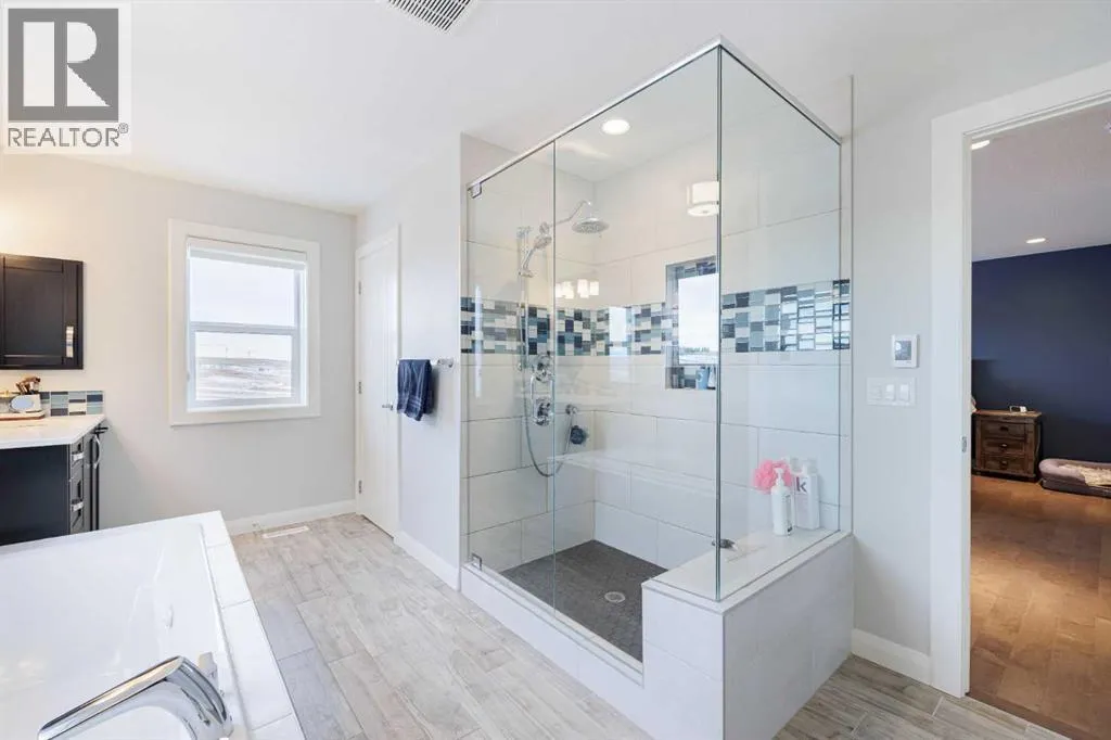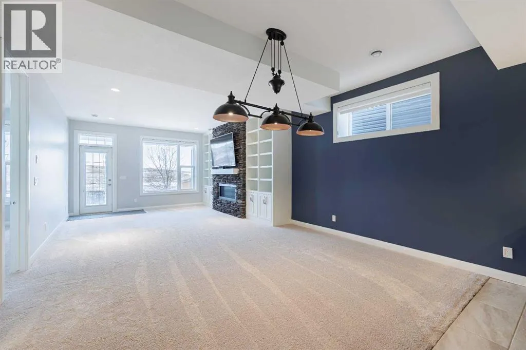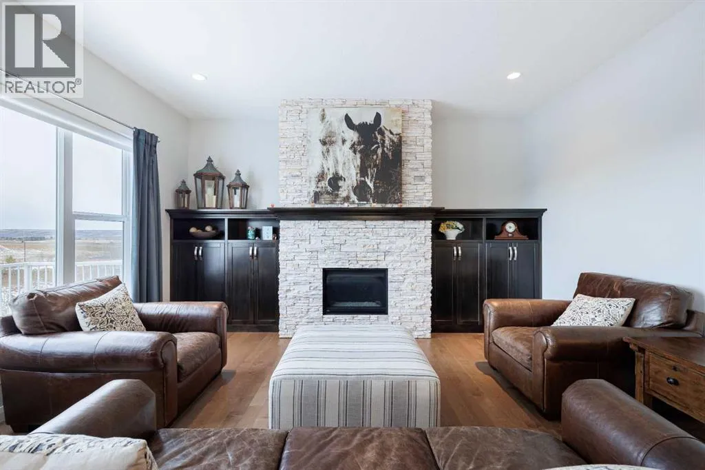 Welcome to this beautifully designed family home that blends thoughtful layout, upscale finishes, and an exceptional outdoor setting backing directly onto a walking path and green space. From the moment you step inside, the open-to-below front entrance creates a striking first impression, filling the space with natural light and a sense of grandeur. Hardwood flooring flows throughout the main level leading to the heart of the home - the stunning kitchen, crafted for both everyday living and entertaining. It features stainless steel appliances, a gas stove, beverage fridge, and a large central island with eating bar, ideal for casual meals or gathering with guests. Ceiling-height cabinetry offers generous storage while maintaining a clean, modern look, and quartz countertops add both style and durability. A spacious walkthrough pantry connects seamlessly to the kitchen, enhancing functionality. Open sightlines to the living room and eating nook create a bright and connected main living area. The eating nook opens directly onto a spacious back deck, extending your living space outdoors and offering peaceful views of the fully fenced backyard and the green space beyond. The living room is warm and inviting, anchored by a stone fireplace with a wooden mantel and custom built-in shelving that adds character and storage. This space is designed for comfort while maintaining a refined aesthetic. This space is complemented by a dedicated office or schoolroom spaceâperfect for working from home or creating a quiet study area for the family. A 2pc powder and great mudroom space completes this main level. Upstairs, the home continues to impress with three generously sized bedrooms and a large bonus room complete with ceiling fanâan ideal space for family movie nights or a kidsâ retreat. The primary suite is a true sanctuary, featuring a spacious layout with dual walk-in closets and a luxurious ensuite. Enjoy the comfort of in-floor heating, a double vanity, jetted soaking tub, standalone shower, and private water closet for a spa-like experience at home. A well-appointed 5-piece main bathroom with counter-height dual vanity serves the additional bedrooms. Convenient upper-level laundry includes a sink and cabinetry for added organization and ease. The fully developed basement offers outstanding additional living space with direct access to the backyard and lower patio. It features a stylish wet bar with drink fridge and sink, a cozy fireplace with stone surround and mantel, custom built-ins, and a large bedroom with oversized window overlooking the backyard. A dedicated gym area provides the perfect space for fitness or hobbies without leaving home. Additional features include a fully heated garage and air conditioning! Backing onto green space with pathway access, this home offers privacy, functionality, and beautiful surroundingsâall while delivering high-end finishes and a thoughtful floor plan ideal for modern family living. (id:27476)