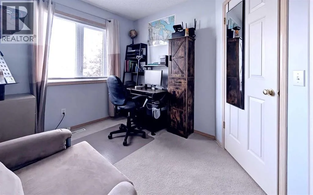 This beautifully maintained 3-bedroom, 2-bath townhouse in Shawnessy is move-in ready and offers exceptional value in a quiet, well-kept complex with no rear neighbors and serene views of green space. Located just minutes from playgrounds, schools, shopping, parks, restaurants, and transitâincluding the C-Trainâthis home combines convenience with tranquility. The spacious entrance opens into a bright living room with soaring 9' ceilings, large windows that flood the space with natural light, and a cozy tile-surround gas fireplace with a mantel. A few steps up, the dining area overlooks the private backyard and connects to a well-appointed kitchen featuring newer stainless steel appliances, ample cabinetry, and direct access to a generous deck surrounded by mature trees for added privacy. The fenced deck includes a built-in bench and BBQ area, perfect for entertaining. Upstairs, you'll find three comfortable bedrooms including a primary suite with a large walk-in closet, a full bathroom, and a versatile nook ideal for a small office or reading space. The basement offers plenty of storage along with laundry and utility rooms. Recent upgrades include new kitchen appliances, lighting fixtures, fresh paint throughout, newer windows, and new patio doors. The complex itself has seen improvements such as a new roof, updated exterior siding, and new porches. This unit comes with two parking stallsâone on your private driveway and another conveniently located across from the unit. With its exceptional cleanliness, thoughtful updates, and prime location, this home is a rare find you wonât want to miss.Directions: (id:27476)