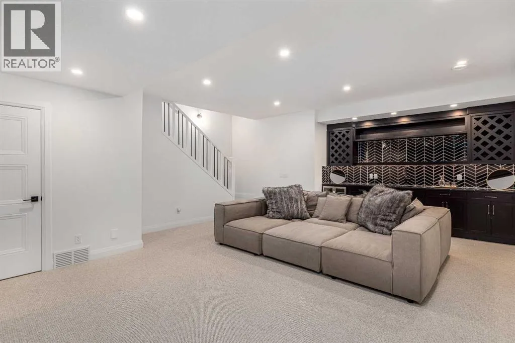 Welcome to one of the finest homes, located in one of the most prestigious neighbourhoods of Calgary â 2032 41 Ave SW*** This 3 STOREY, has over 3,200 sq.ft. ABOVE GRADE (plus a fully developed basement), architectural masterpiece will truly captivate you. The main floor boasts 10' CEILINGS, a GOURMET KITCHEN with an expansive island, FISHER AND PAYKEL stainless steel appliances, bespoke floor-to-ceiling cabinetry, and a stylish walkthrough pantry. A LARGE OFFICE just off the front entrance provides an ideal workspace, complemented by a designer 2PC bathroom and a spacious mudroom at the rear. The elegant dining area and inviting living room with a GAS FIREPLACE offer seamless access to a grand deck and impeccably landscaped backyard.The second floor features 9' CEILINGS, a sun-drenched south-facing primary retreat with vaulted ceilings, another GAS FIREPLACE, and a truly STATE OF THE ART ENSUITE BATHROOM. This level also includes a beautifully appointed laundry room, a refined 5PC bathroom, and two additional generously sized bedrooms, each with a walk-in closet.The upper THIRD LEVEL is a loft-style sanctuary, offering a substantial BONUS ROOM, an additional full bathroom, a sophisticated wet bar, and access to a covered balcony (with sweeping views and two discreet storage nooks).The lower level impresses with 9' CEILINGS, a vast recreation/family room featuring a stunning wet bar, a spacious 4TH BEDROOM with a walk-in closet, a luxurious full bathroom, and a dedicated storage room. This residence is brimming with upscale enhancements, including HARDWOOD FLOORING on the main and second levels, CENTRAL AIR CONDITIONING, custom cabinetry, and a premium appliance package.Park your vehicles in the oversized 3 CAR GARAGE, savour your morning coffee on the charming front patio, enjoy serene strolls along the nearby Elbow River, and explore the vibrant array of upscale dining and boutique shopping in MARDA LOOP and ALTADORE. Some of Calgaryâs finest public and pri vate schools are also located just minutes away. Book your private showing NOW to experience this exceptional property in person! (id:27476)
