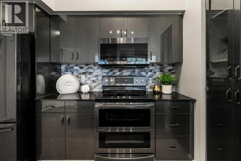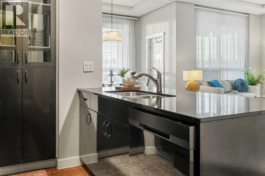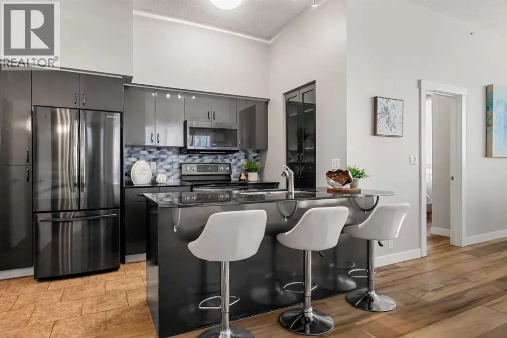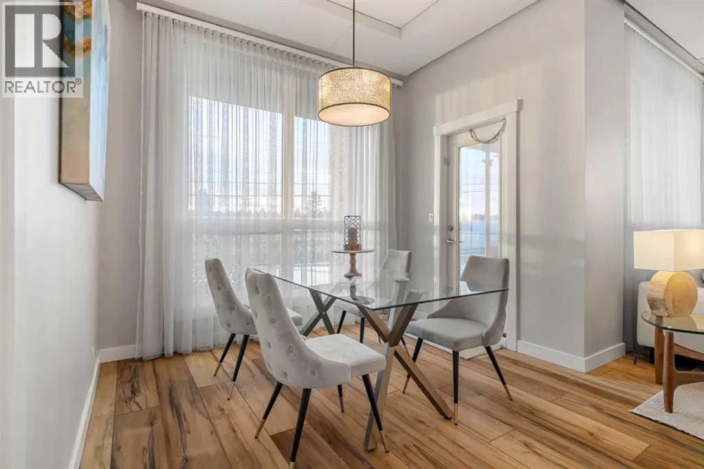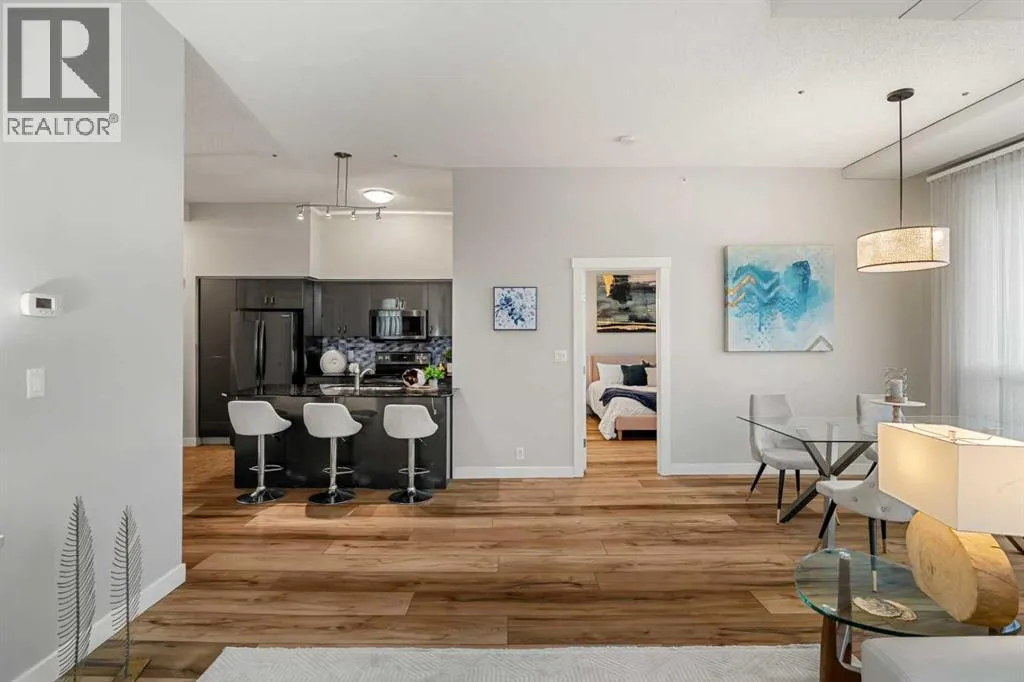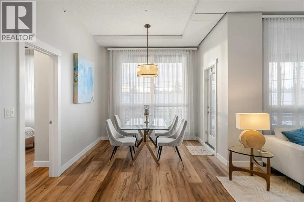 Welcome to this beautifully upgraded 2-bedroom, 2-bathroom , 2 parking stall - corner unit in the sought-after London at Heritage Station. Located on the second floor with 10-foot ceilings and a wrap-around balcony, this home offers a rare blend of space, light, and convenience and has over $50,000 in upgrades and renosâ all in a concrete building with unbeatable access to amenities. This bright corner suite features windows facing north and west, allowing the home to be filled with natural light throughout the day. The open-concept layout is enhanced by wide-plank, high-end luxury vinyl plank flooring and stylish modern finishes.The kitchen has been thoughtfully updated with Newer gunmetal black appliances (all replaced within the last 3â4 years), including an electric stove with double oven option, refrigerator, microwave hood fan, and dishwasher. The cabinets have been updated with double coat of paint and new hardware in the kitchen and in both bathrooms. Â Beautiful gold-flecked black granite countertops, a tile backsplash, and a double sink complete the space, making it as functional as it is striking. A new designer dining room light fixture adds a touch of elegance to the adjoining dining area that is more house sized than a typical condo perfect for family dinners or entertaining. Comfort and style continue throughout the home with automatic blinds in the bedrooms and dining room, custom drapery on all windows, new entry and primary closet doors, and additional storage above the closets in both the primary bedroom and front entry. The front entry allows for a desk space if desired or a added space for you favorite shoe collections. The living room has lots of light and lots of space for big sectionals and a large TV if desired. The primary bedroom has room for a king sized bed, lost of extra storage added above a large closet, with a lovely 4 pc ensuite. With the other bedroom on the opposite side of the unit its spacious giving everyone occupant privacy. T he unit also includes a stacked washer and dryer and a tankless hot water system for added efficiency.Step outside onto your wrap-around balcony, perfect for enjoying morning coffee or evening sunsets with open sky views and great airflow from the corner positioning on the NW side. One of the biggest highlights of living at London at Heritage Station is the direct indoor access to shopping and services â no need to step outside to grab groceries, coffee, or daily essentials. Plus, youâre just steps to the C-Train station, making downtown commutes and city access effortless. Modern upgrades, generous storage, premium parking, and unmatched convenience â this is condo living at its best. Pet dog, cat or bird allowed with approval - The building has a dog run area on the north side of the building! (id:27476)