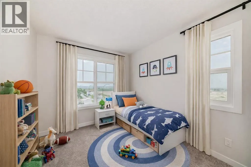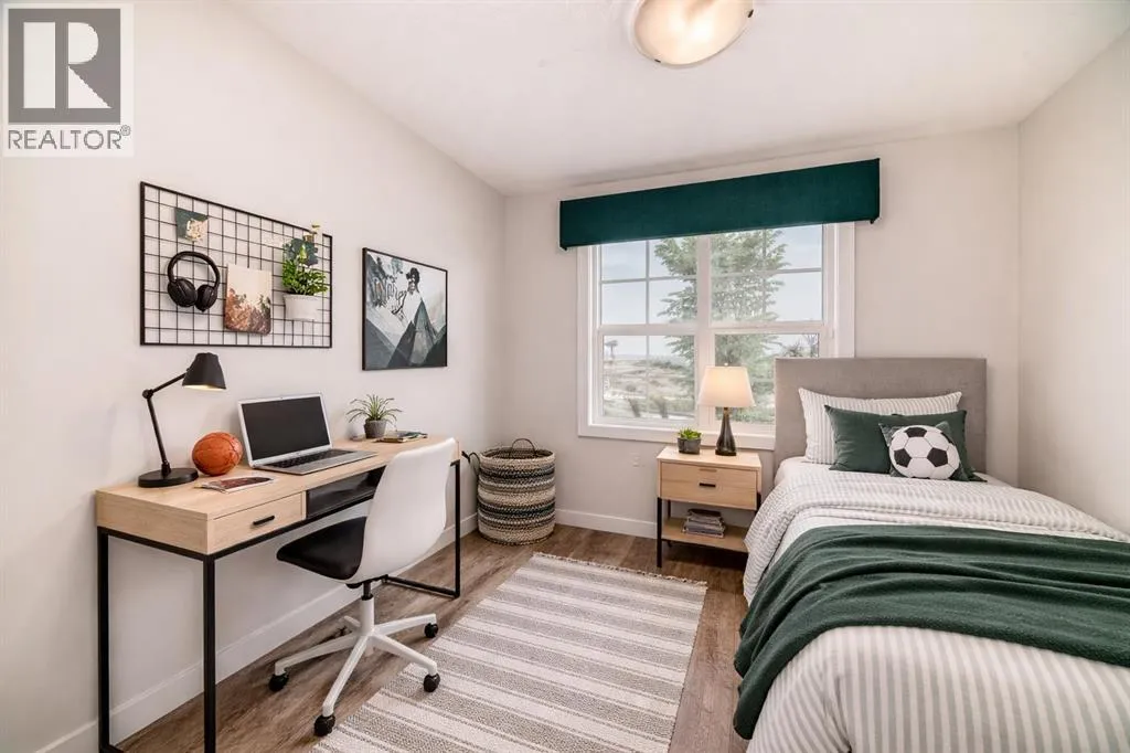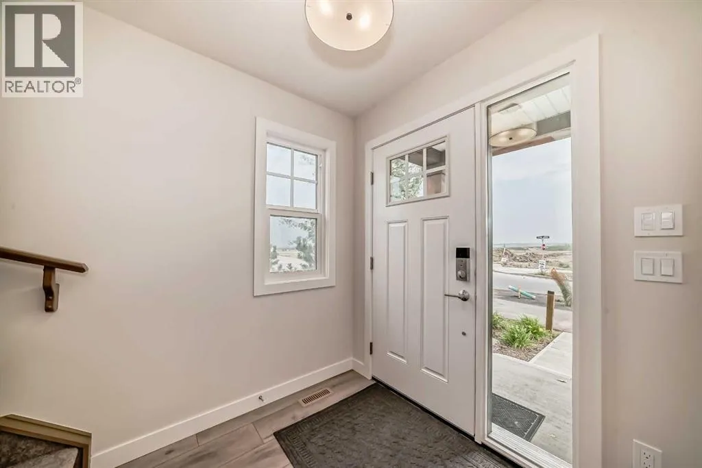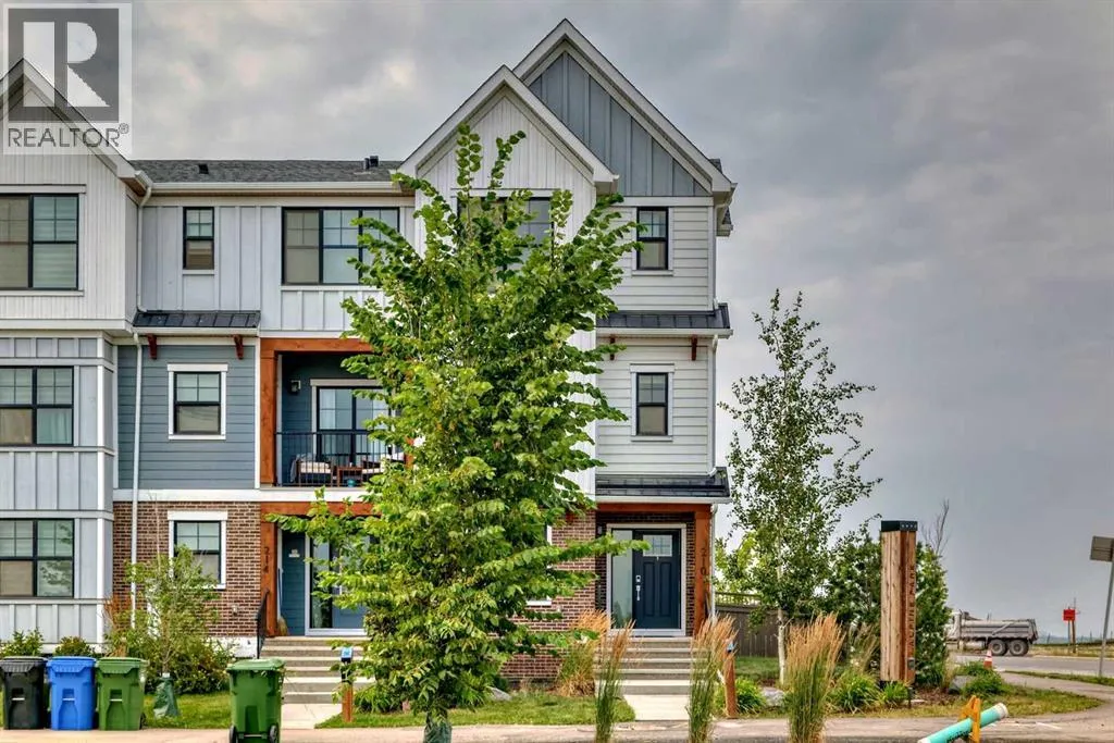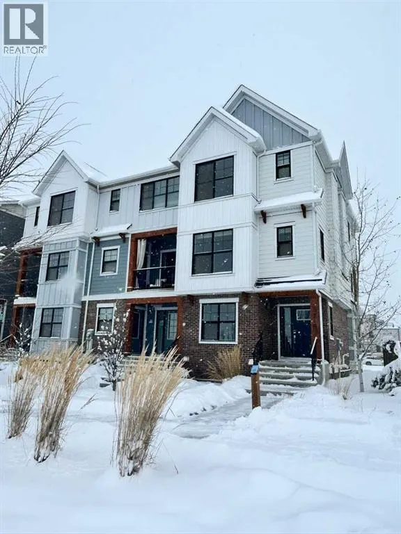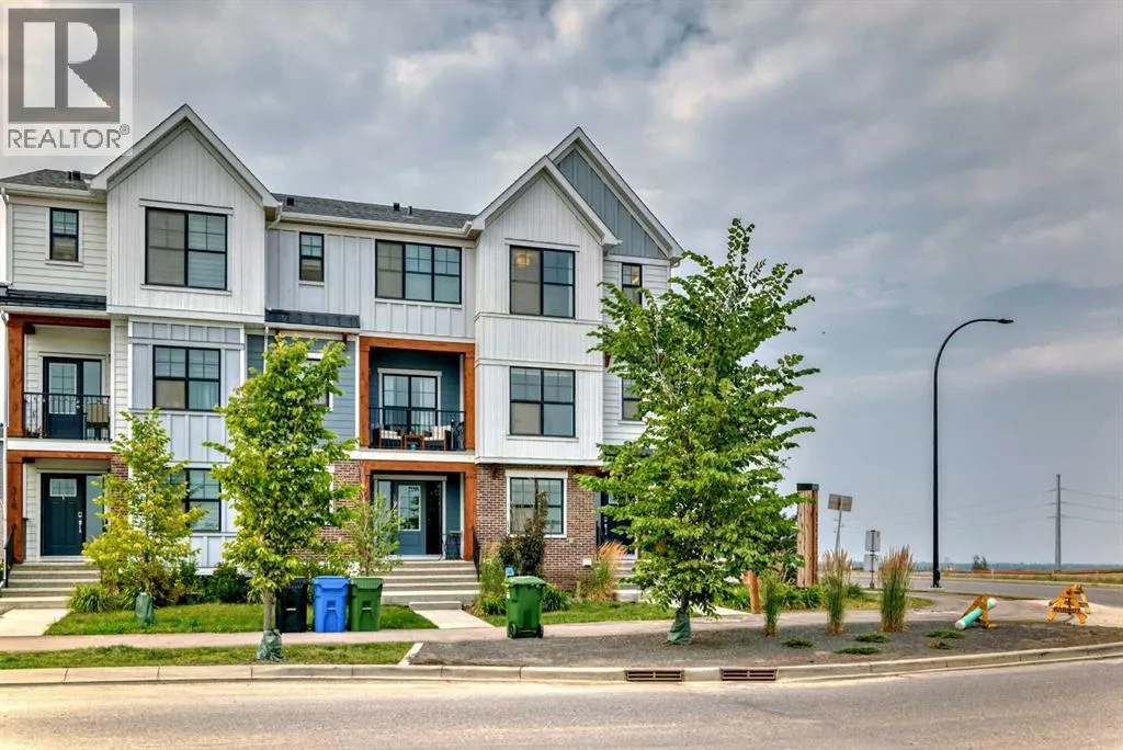 Offered, is a former Genesis show home - The "Alicia" model.  The home is situated on an oversized corner lot, one of the largest available for this style of property, allowing for additional windows, enhanced natural light, and a clear advantage over interior units. Professional landscaping has already been completed, including trees, shrubs, and underground sprinklers, providing a seamless and low-maintenance transition for the new owner.  Inside, youâll appreciate the impressive modern layout and interior finishes/high-end features. Included, is a highly functional kitchen with a walk-in pantry including stainless steel appliances with the option for gas to both the kitchen and balcony, high end countertops, nine-foot ceilings, luxury vinyl plank flooring, and a conveniently located upper-floor laundry complete with washer and dryer. A unique and highly desirable feature of this home is the ground-level bedroom or flex space, making it ideal for a private home office, studio, or guest roomâperfect for professionals seeking work-life balance without the daily commute. Additionally, the double attached rear garage features an upgraded carriage-style garage door and wall-mounted heaters, offering both comfort and added security A comprehensive list of upgrades is available for review, please ask your agent to view it. Alpine Park is a community that deserves a top spot on your home search journey. Located just off Stoney Trail in the SW quadrant of Calgary and near the new Taza shopping Development, this area reflects the bold and thoughtful planning vision of the developer, Dream. Contact your agent to book a private showing and explore this exceptional opportunity. Some photos have been virtually staged. (id:27476)