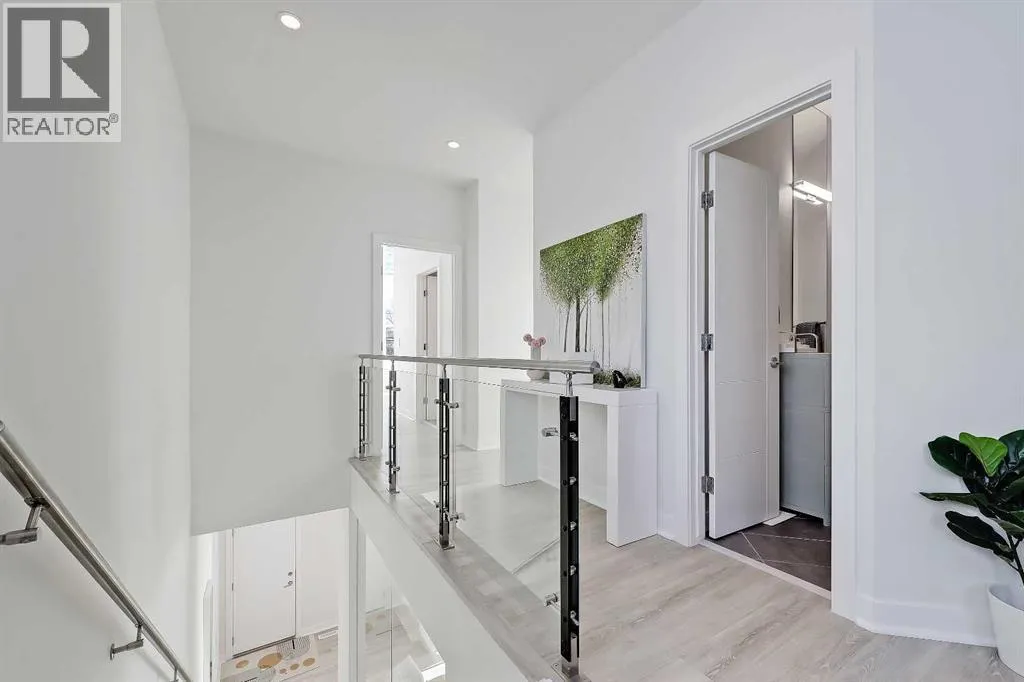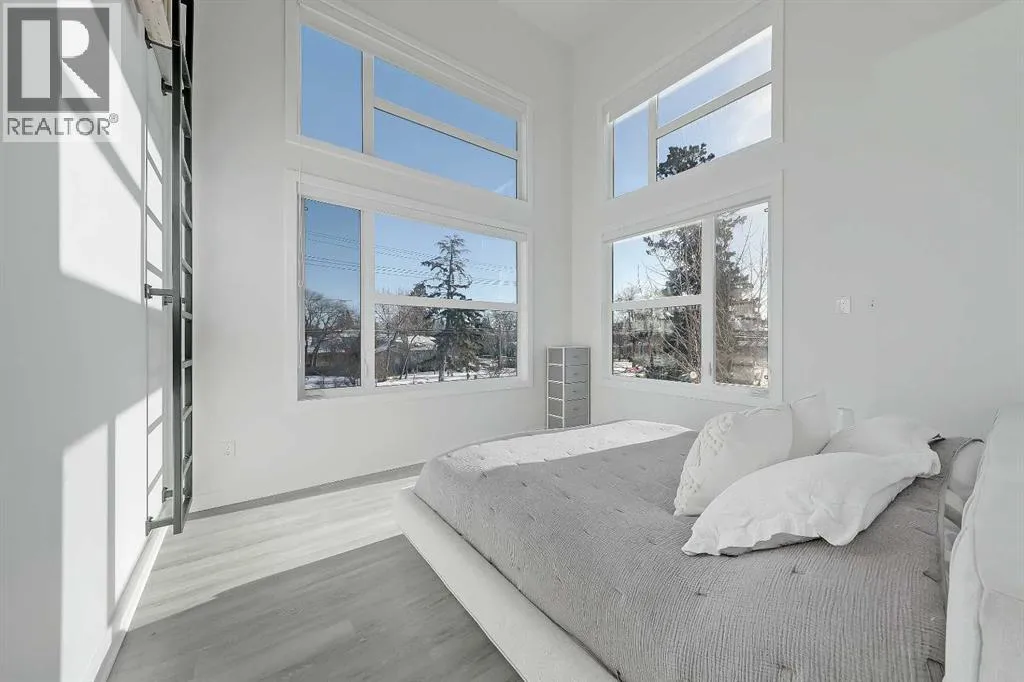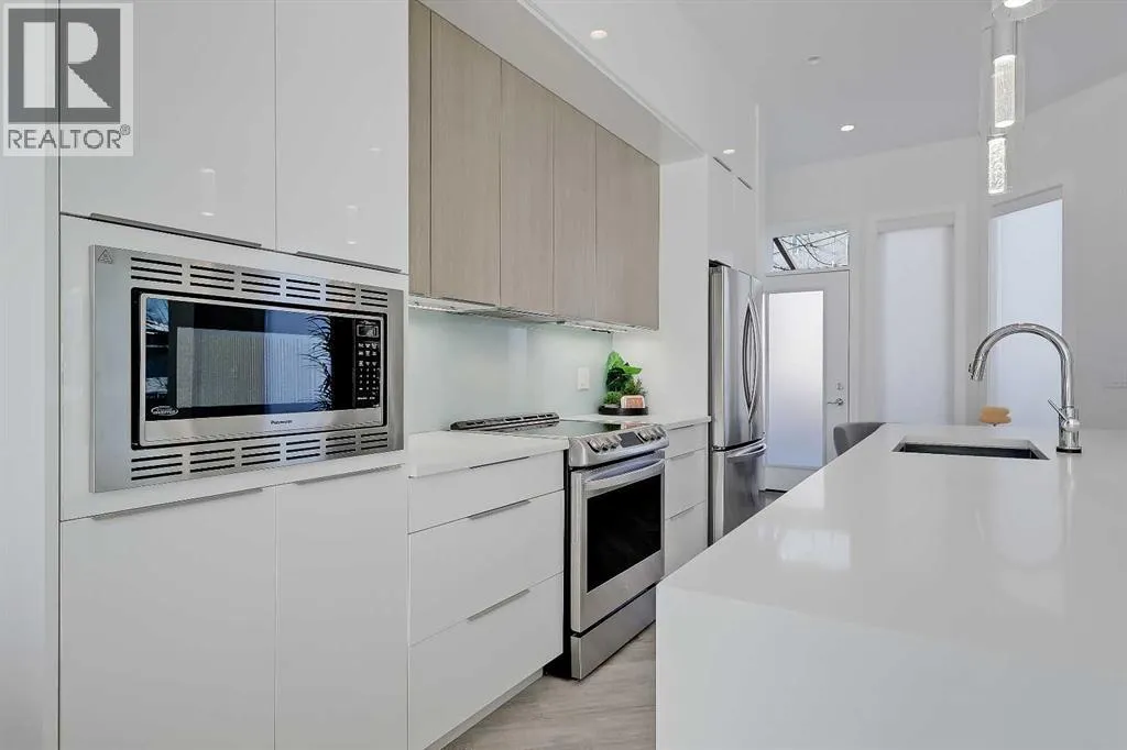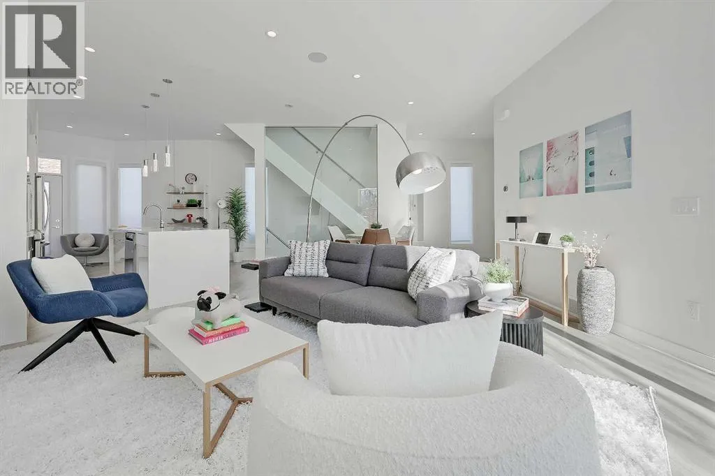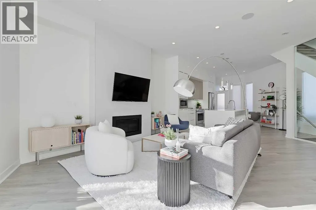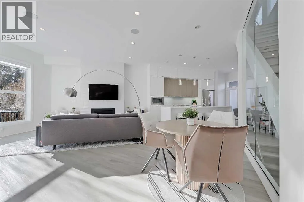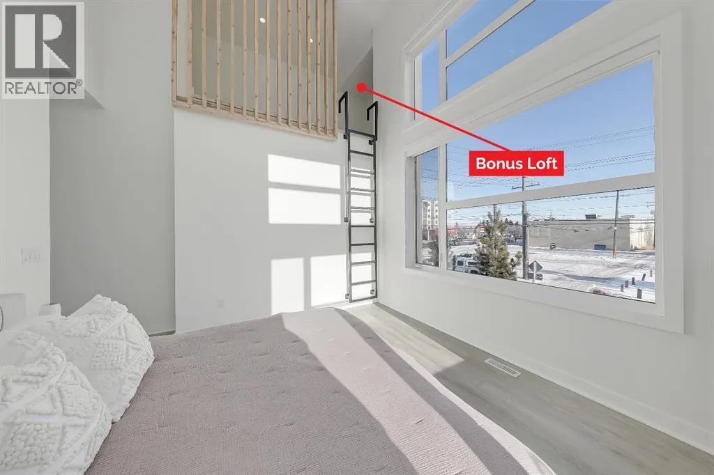 **OPEN HOUSE THIS WEEKEND: SATURDAY, FEBRUARY 14, FROM 1 PM - 3 PM AND SUNDAY, FEBRUARY 15, FROM 2 PM - 4 PM** Welcome to this rare end unit fronting green space. This highly upgraded Bordo townhome showcases over 2,300 sq ft (over 1,700 sq ft above grade), soaring ceilings, a private fenced yard, a fully developed basement, and a rare attached insulated garage. This home delivers the comfort and scale of a detached home with the ease of low-maintenance inner-city living. The bright main floor features 10-ft ceilings and expansive windows that fill the space with natural light. The contemporary, warm living room has a massive window overlooking the adjacent green space. It centres on a tiled feature wall with a gas fireplace and is enhanced by built-in ceiling speakers. The rear kitchen anchors the layout with a quartz waterfall island and counters, a sleek glass backsplash, stainless steel appliances including an induction cooktop, a dual-basin undermount stainless steel sink, a discreet hood fan, and ample high-end cabinetry. A powder room and a mudroom with direct access to the attached garage add everyday functionality. Upstairs, the primary suite impresses with 16.6-ft ceilings, oversized windows, a large walk-in closet, a bonus loft, and a spa-inspired 5-pc ensuite featuring heated tile floors, a dual-sink vanity with quartz and storage, a soaker tub with tile surround, and a fully tiled stand-up shower with 10mm glass door. A second bedroom with 14.5-ft ceilings, a full 4-pc bathroom, a versatile bonus room, and a convenient upper-floor laundry closet complete the upper floor. The fully developed basement features 9-ft ceilings, a spacious rec room, plus a third bedroom and a full bathroomâideal for guests or for use as a home office. Mechanical upgrades include a high-efficiency furnace, humidifier, and HRV system. Enjoy a private fenced yard with a gas line for a BBQ, plus immediate access to the large green space outside the door. Located in the heart of R enfrew, just minutes to downtown, 16 Ave, Edmonton Trail, Deerfoot Trail, schools, parks, shopping, Calgary Zoo, and the Renfrew Aquatic Centre, this home offers outstanding inner-city convenience. Schedule a private showing today! (id:27476)