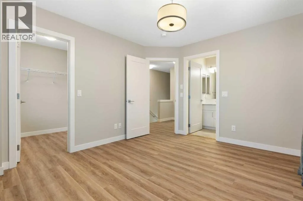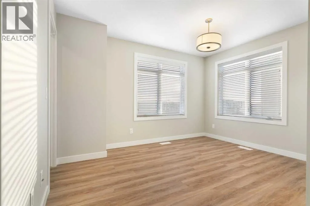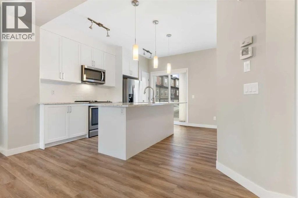 Rarely does a townhouse become available that is this well appointed and is maintained in near new condition. Offered for the first time by the original owner who selected most of the upgrades offered by the builder costing $21,000. This two primary bedroom, 2.5-bathroom end unit offers over 1500 sq. ft. of luxurious contemporary open living space bathed in an abundance of natural light. All levels are above grade. Upon entry, you will step into a large flex room that makes for a great office, exercise, hobby or recreation room. There is an entrance closet, utility room and access to the double attached garage on this level. The main level with 9â ceiling has a spacious airy bright open feeling, creating an inviting comfortable space for daily living or entertaining friends and family. Step out onto a balcony at either end of this level and enjoy an outdoor cup of coffee, lunch or BBQ. With an east/west exposure, you can choose sun or shade and a calm spot. The open living space offers flexibility of use. Dining options are the island breakfast bar or an open dining area with feature wall. The kitchen is a chefâs delight with upgraded stainless-steel appliances, quartz counters with a marble pattern and lots of cabinet space with tall upper cabinets and a pantry. There is a convenient nook for a main floor workstation and 2- piece powder room on this level. Retreat to the privacy of the upper floor with 2 primary bedrooms, each with its own en-suite bathroom and walk-in closet. The laundry room is conveniently located on this level with full size stacker washer and dryer plus shelves and storage space. This fine home features luxury vinyl plank flooring and tile on both the main and upper levels, knock down ceilings, quartz counters throughout, central air conditioning, triple glazed windows, gas line to the front balcony, a gourmet kitchen and freshly painted walls. Located in one of the best spots in the complex with quick access to both the front door and garage. It is an end unit with extra windows, only one party wall and an extra balcony at the rear. The growing community of Sage Hills offers many services, shopping, public transportation and has quick access to Stoney Trail with the airport to the east and the mountains to the west. Check it out today! (id:27476)
