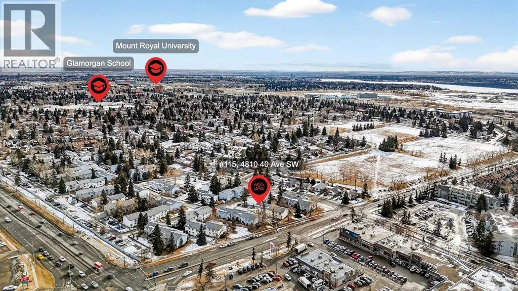 Location, location, location!! Welcome HOME! Welcome to Unit 115, 4810 40 Ave SW, a gorgeous and spacious end unit offering extra privacy in the heart of the sought-after community of Glamorgan in Calgary's SW! This unique family home is an excellent option for first-time home buyers, growing families looking for the convenience of 4 bedrooms on the upper level, or savvy investors seeking strong potential in a well-managed complex.As you step inside, you are welcomed by a bright and inviting main floor designed for both comfort and functionality. The heart of the home is the spacious kitchen, featuring plenty of cabinetry and counter space. Its layout is ideal, with room for a breakfast nook or dining table, and it comes complete with stainless steel appliances.Adjacent to the kitchen is a generous open area that can easily accommodate a large living room setup or be divided into a combined formal dining and living space. Sliding glass doors lead to a private, fenced patio with a BBQ included, offering a peaceful outdoor retreat surrounded by mature trees, green space, and privacy.The assigned parking stall (#115) is conveniently located just steps from your door, adding to the overall ease and functionality of this beautiful property. This level is completed by a refreshed half bathroom with a brand new vanity and wall mounted cabinet. Upstairs, you will find 4 spacious bedrooms, each featuring large windows and generous closets, including a master with a walk-in closet and a central full bathroom with a bathtub. The basement has been professionally upgraded with approximately $25,000 in improvements. Partially developed, it features insulation and a proper vapor barrier for year round comfort, along with professional drywalling, mudding and fresh paint. It offers versatile additional space, ideal for a future gym, home office, media room, or 5th bedroom, and also includes the laundry room with washer and dryer. Additional features include: fresh paint throughout the home, water filter in kitchen, recently cleaned carpet on the second floor, and a thorough home cleaning, ensuring the property is move-in ready. Location is unbeatable, sitting literally across the street from a vibrant hub of amenities including Circle K, London Drugs, banks, professional offices, and a diverse selection of restaurants. Commuting is a breeze with a 7 minute drive or direct bus routes steps away, that take you straight to the front doors of Mount Royal University, making it an ideal spot for students and faculty. 5 minute drive away the Signal Hill and Westhills Shopping Centers where you will find countless amenities including Safeway, Superstore, Winners, Indigo and much more. This location has it all, this beautiful family home checks all the boxes and is ready for its new owners!! Book a Showing now!! (id:27476)