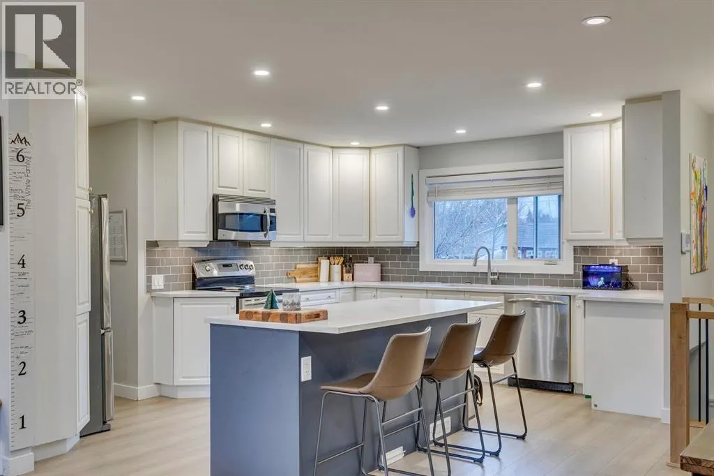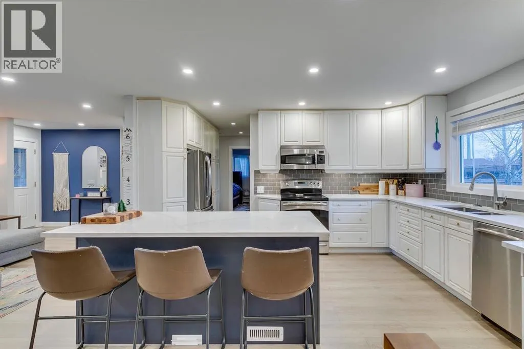 Welcome to this beautifully updated 1180 sq ft bungalow, offering stylish comfort and a bright, open-concept layout. The spacious living room features large windows that flood the space with natural light, creating the perfect spot for everyday living and entertaining.Youâll love the modern kitchen complete with a large island, ample cabinetry, and an adjoining dining area thatâs ideal for family meals. With 5 bedroomsâ3 on the main level and 2 downstairsâthereâs plenty of room for growing families, guests, or a home office. The home also offers 2 full bathrooms and thoughtfully designed feature walls that bring character and warmth to the main floor.The fully finished basement provides even more versatile living space. Outside, enjoy a large backyard with room to relax or play, plus a double detached garage for parking and storage.This is the perfect blend of updates, space, and natural lightâready to move in and enjoy! (id:27476)