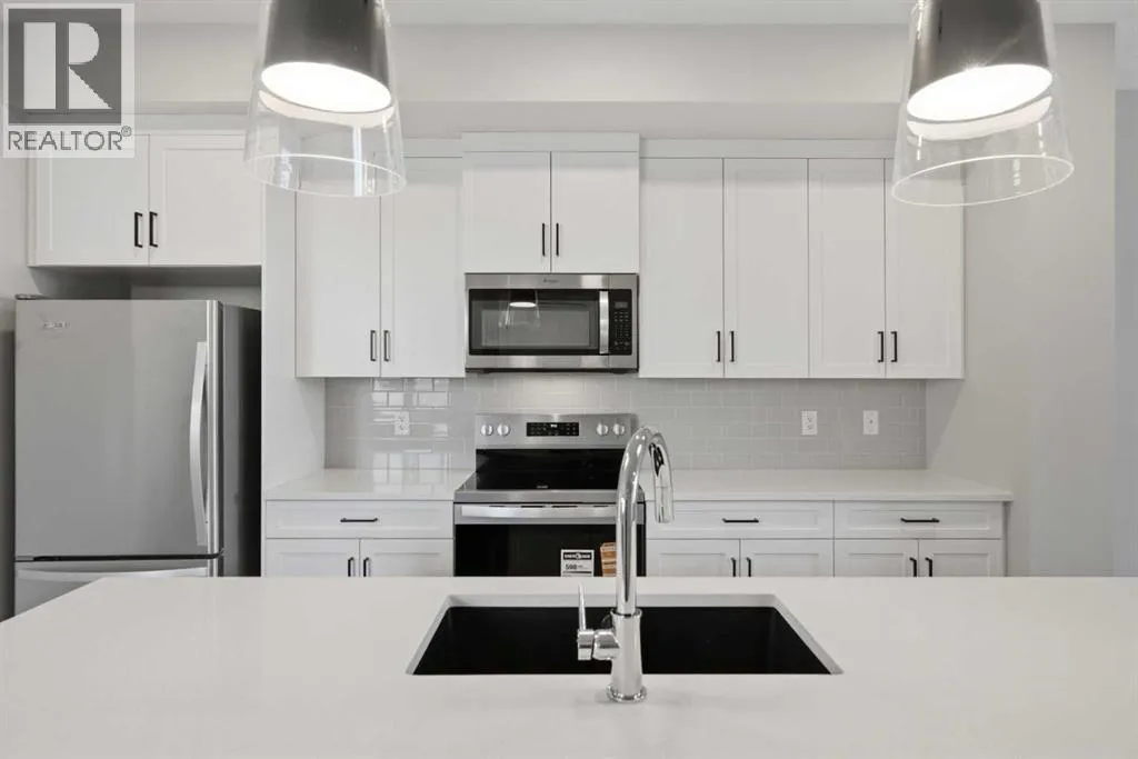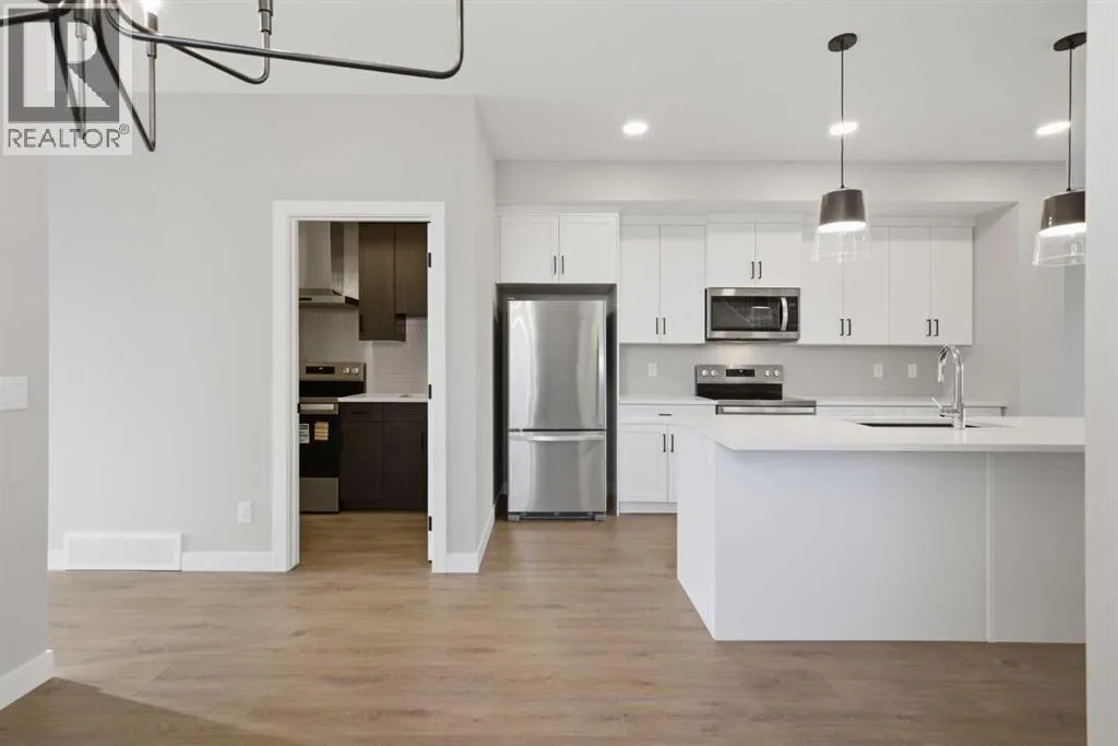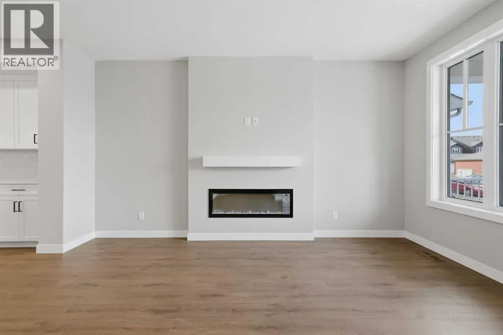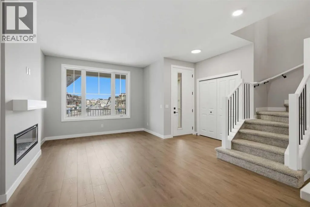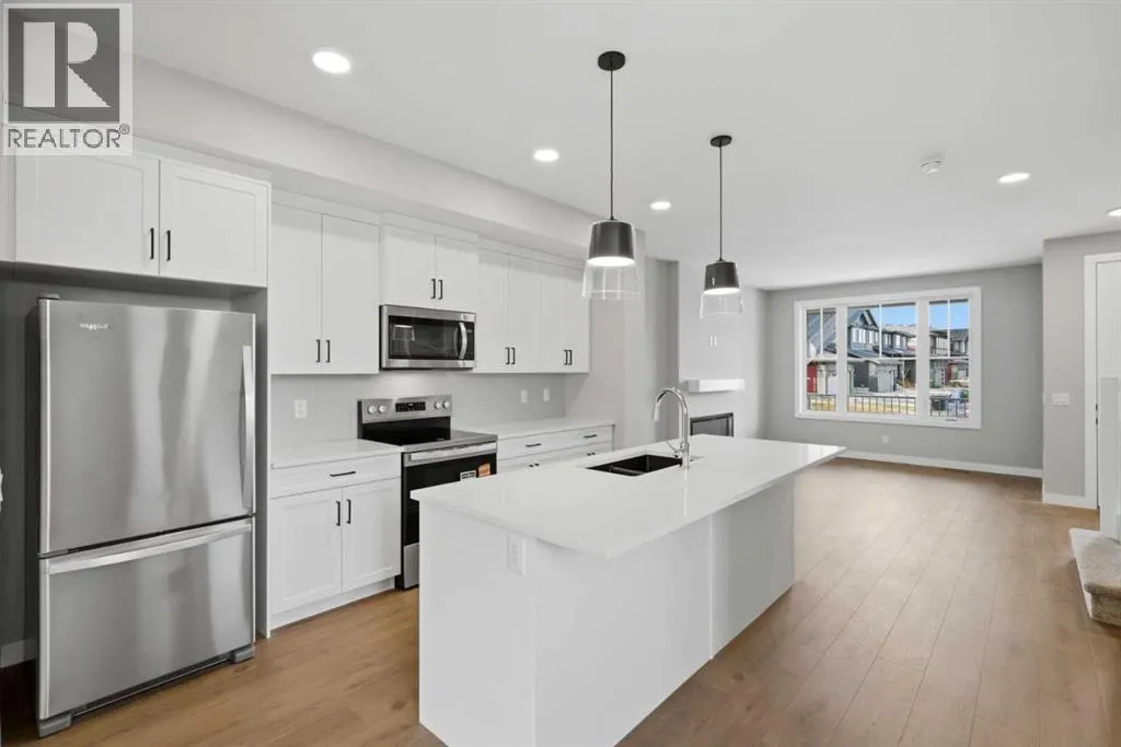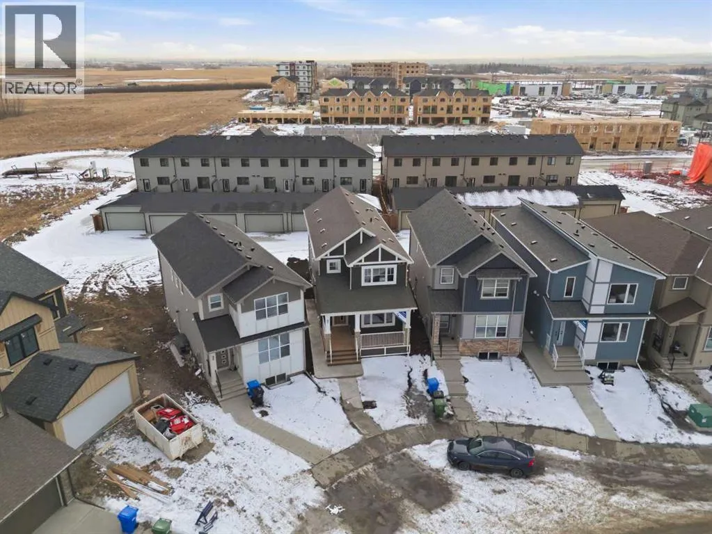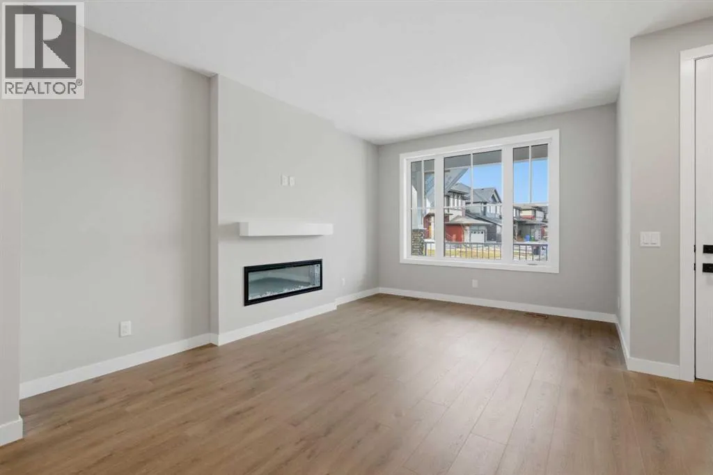 1869 SQ.FT. | 4 BEDS | 3.5 BATHS | MAIN FLOOR BED & BATH | SPICE KITCHEN | REAR DECK | HARDIE BOARD SIDING | SIDE ENTRANCE + 9" BASEMENT CEILING | BONUS ROOM | HUGE PIE SHAPED LOT | SE FACING BACKYARD | FRONT LANDSCAPING INCLUDED | Built by Crystal Creek Homes, this is one of the best values currently available in Belvedere, offering more space and more hard-to-find features than comparable homes at this price point. Set on a rare pie-shaped lot with a huge southeast facing backyard and completed 10âÃ10â deck, this home delivers outdoor space that most Belvedere homes simply donât have. Inside, the light and airy modern finishings create an inviting feel across 1,869 sq ft, thoughtfully designed for growing or multi-generational families with 4 bedrooms and 3.5 baths, including a main-floor bedroom and full bath, a bonus room, and a great room with fireplace. The spice kitchen, durable Hardie board siding, and separate side entrance with 9â foundation add real long-term value, with strong potential for a future legal basement suite (subject to City approval and permitting). Located on a quiet street, just steps from the future school site and soccer field, and minutes from Costco, Walmart, Cineplex, restaurants, shopping, Chestermere, and quick access to Stoney Trail, this is a home that offers everyday convenience. Homes with this combination of lot size, layout, and upgrade package rarely come availableâand it comes with the added confidence of a full builder warranty. Book your showing today! (id:27476)