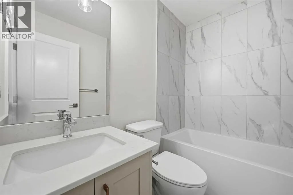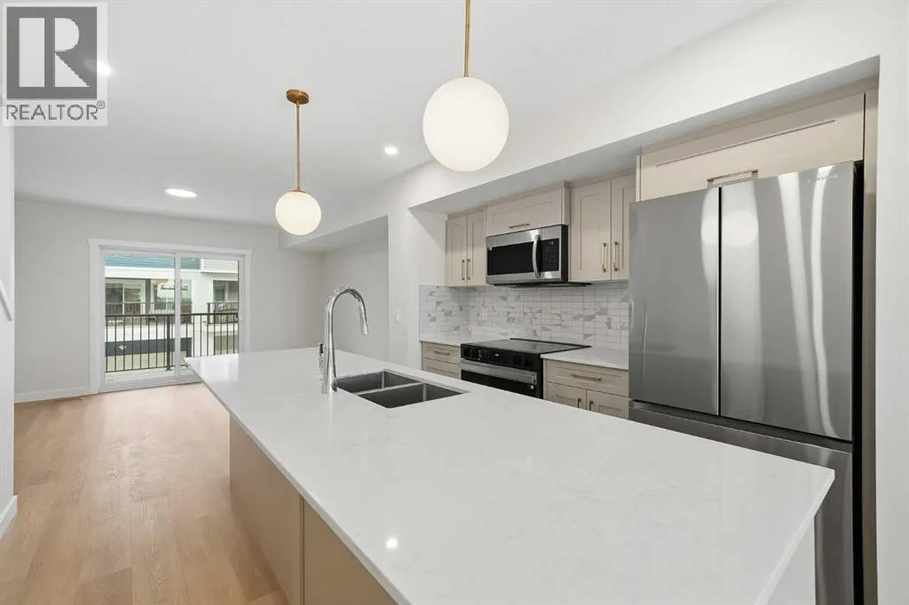 Welcome to this brand-new 3-storey townhome for sale in Belmont, Calgary, offering 1,200+ sq. ft. of modern living space with 2 bedrooms, 2.5 bathrooms, and a double tandem attached garage. This well-designed Belmont townhome is ideal for buyers seeking new construction in southwest Calgary. The open-concept main floor is bright and functional, featuring large windows, a spacious living area, and a modern kitchen with quartz countertops, full-height cabinetry, stainless steel appliances, and a dedicated dining spaceâperfect for everyday living and entertaining. A private balcony extends the living area and provides outdoor space ideal for morning coffee or evening relaxation. The upper level includes two generously sized bedrooms, each with its own ensuite bathroom, along with upper-floor laundry for added convenience. The entry level provides access to the tandem double attached garage, offering ample parking and additional storage. Located in Belmont, one of Calgaryâs fastest-growing communities, this townhouse for sale in southwest Calgary is surrounded by parks, playgrounds, and scenic pond pathways. The property is steps from a future commercial plaza with planned amenities including Tim Hortons, daycare, and gas station, as well as public transit directly in front of the complex. Enjoy quick access to Stoney Trail, Macleod Trail, and the future Green Line LRT extension, making this an excellent location for commuters. Pet-friendly and rental-friendly, this Belmont Calgary townhome presents a strong opportunity for first-time home buyers, investors, or those looking for low maintenance living in a high-growth Calgary neighbourhood. Pet-friendly and rental-friendly, this Belmont Calgary townhome presents a strong opportunity for first-time home buyers, investors, or those looking for low-maintenance living in a high-growth Calgary neighbourhood. (id:27476)