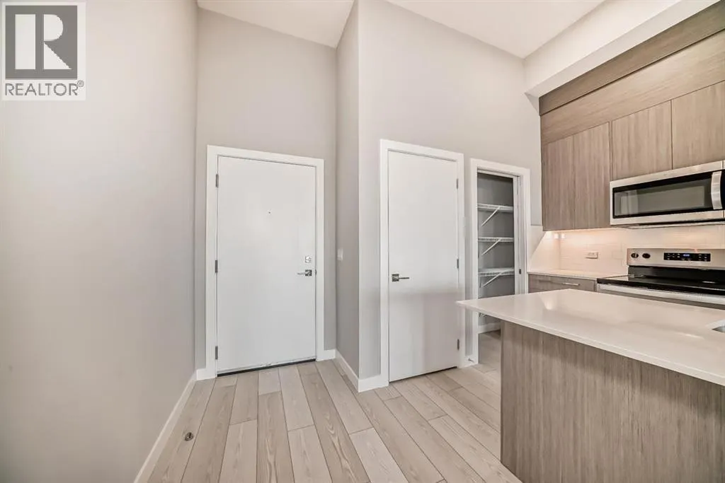 TRUMAN-built 1-Bedroom + Den, 1-Bathroom home in Skyview North offers a bright, airy layout with a titled parking stall. Step inside to experience elevated living with premium finishes throughout, including LVP flooring, a designer lighting package, and oversized windows that fill the space with natural light. The kitchen showcases sleek stainless steel appliances, soft-close cabinetry, and elegant quartz countertopsâperfect for both everyday meals and entertaining. The Bedroom features a walk-through closet leading to a stylish four-piece bathroom, while the den offers versatile space for a home office, reading nook, or guest space. Additional highlights include in-suite laundry, contemporary window coverings, and a private balcony off the living roomâan ideal spot to enjoy your morning coffee or unwind in the evening Located in Skyview North, just steps from Sky Point Landingâs shopping and dining, scenic parks, and playgrounds, this home combines style and convenience. Plus, with quick access to Stoney and Deerfoot Trail, commuting is effortless With TRUMANâs commitment to quality and their promise to help you Live Better, this home is the perfect choice for modern living. *Photo gallery of similar unit (id:27476)