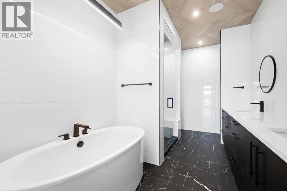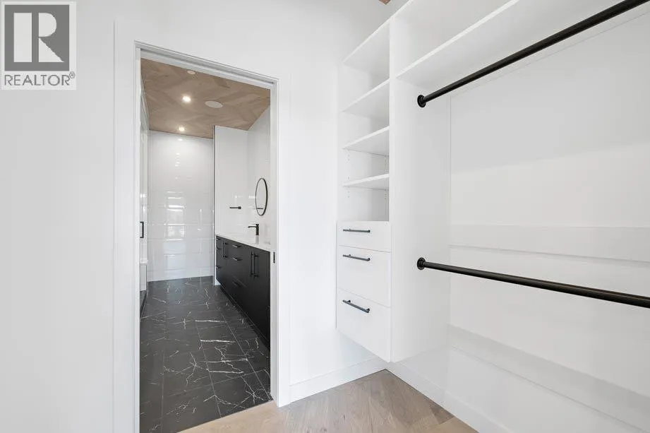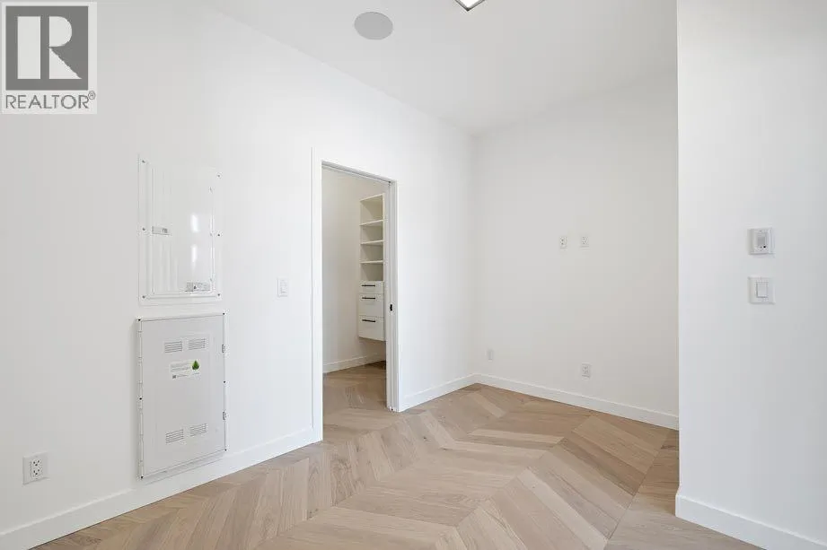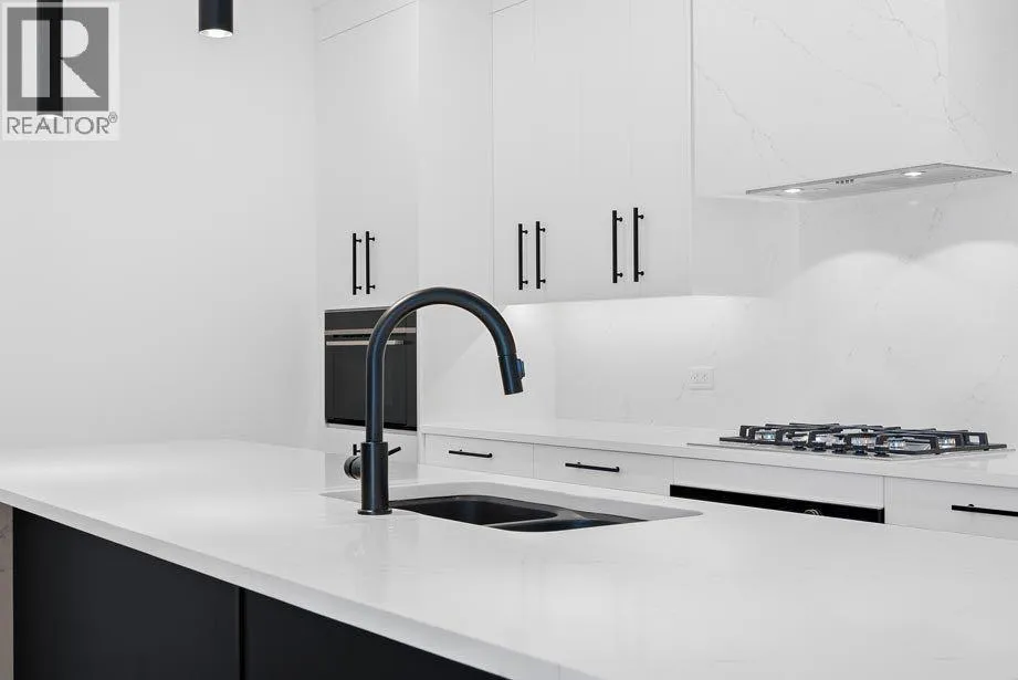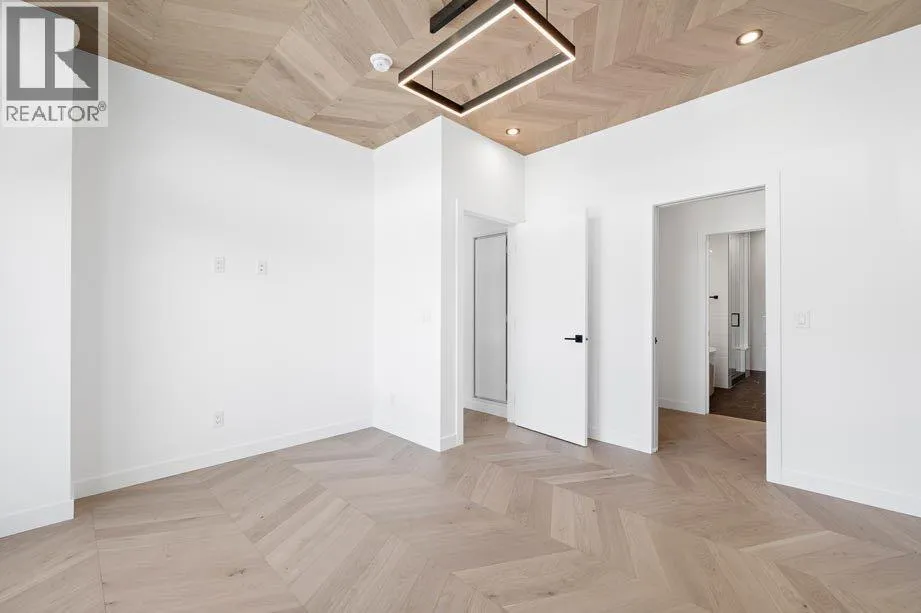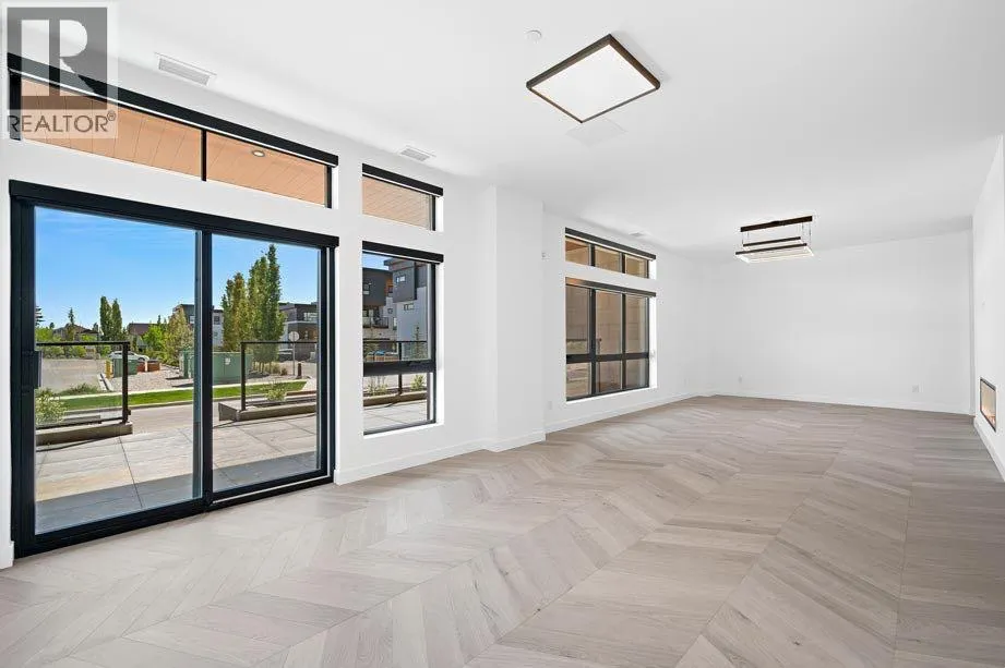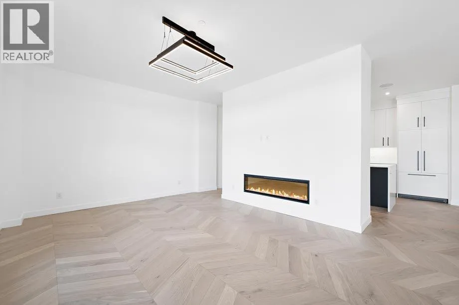 Welcome to a refined living experience at Parkside, a premium concrete-built residence by TRUMAN located in Calgaryâs thriving West District. This stunning 1 Bedroom + Den, 2-Bathroom luxury condo is designed for those who appreciate timeless elegance, exceptional craftsmanship, and modern functionality. From the moment you step inside, youâll notice the attention to detailâcustom millwork, Chevron-pattern hardwood flooring, and a designer lighting package create an atmosphere of sophisticated comfort. Expansive floor-to-ceiling windows fill the living space with natural light and offer peaceful views of the surrounding community. The open-concept living room features a fireplace that adds both warmth and styleâperfect for entertaining or relaxing evenings at home. The adjacent den provides a versatile space ideal for a home office, guest room, or creative retreat. At the heart of the home lies the chef-inspired kitchen, where design meets performance. Full-height custom cabinetry, a gas cooktop, and a panelled fridge create a seamless and functional workspace. A striking double waterfall quartz island with an integrated range hood anchors the space, while under-cabinet lighting and premium finishes add to the elevated aesthetic. The spacious primary suite serves as a serene escape, complete with a spa-like 5-piece ensuite featuring a freestanding soaker tub, dual vanities, a tiled shower, and upscale fixtures. The main 4-piece bathroom is equally well-appointed, offering comfort and convenience for guests or day-to-day use. Residents at Parkside enjoy access to a collection of exclusive amenities that foster both community and privacy. Unwind or host on the rooftop event patio, gather in the ownerâs lounge with entertainment kitchen, or stay active in the fully equipped on-site fitness centreâall with sweeping views of West Districtâs Central Park. Set in one of Calgaryâs most vibrant new communities, this boutique-style condo offers the perfect blend of luxur y, lifestyle, and location. Whether you're downsizing or seeking a sophisticated home base, this residence is more than just a place to liveâitâs a reflection of your lifestyle. (id:27476)