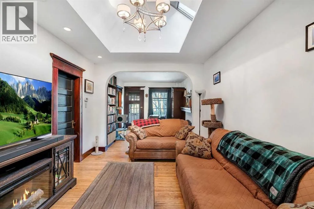LOCATED IN MARDA LOOP â RARE DETACHED CHARACTER HOME FOR UNDER $600K! This is your opportunity to own a detached early-1900s CENTURY HOME in the heart of Marda Loopâan increasingly rare find under $600,000, a block away from a neighbourhood park. This home sits on a 25â x 125â R-C2 lot in one of Calgaryâs most desirable neighbourhoods which makes it an excellent opportunity for redevelopment potential. Heading inside, a fully enclosed front porch greets you - bright, welcoming, and perfect as a sunroom or mudroom through Calgaryâs changing seasons. Inside, the home features original hardwood floors, and a preserved fireplace that anchors the cozy living space. Skylights over the living area bring in natural light and enhance the homeâs unique charm. The main floor layout is functional and thoughtfully arranged, offering two bedrooms, a full bathroom, and a sunny south-facing den/officeâideal for working from home or a quiet reading nook. The kitchen is bright and practical, with ample cabinetry, a gas stove and an adjoining breakfast nook, plus convenient access to the backyard. Take the party outside onto the large back deck, & private fully fenced-in yard complete with mature trees, perfect for those summer BBQs & dog-lovers! Downstairs, the full unfinished basement provides excellent storage today and clear future potential, whether you plan to renovate, expand, or hold as a long-term investment. The cherry on top is a detached double garage with lane accessâa highly valuable feature in this location & no condo or HOA fees to go along with it. Just down the street is the Marda Loop Community Association which is home to the South Calgary Outdoor Pool, community garden, tennis courts, playground, Fire Station, pump track & a Calgary Public Library. Plus, enjoy true walkability to Marda Loopâs most popular cafes, restaurants, and shopsâincluding Phil & Sebastian, Analog Coffee, Blush Lane Market, and Village Ice Creamâalong with nearby parks, schools, quick access to 17th Ave, and an easy commute downtown. Jumping in the car: Downtown is a 12 min drive (5.6KM), Airport is a 25 min drive (19.3KM), & Banff is a 1hr 27 min drive (132KM). (id:27476)