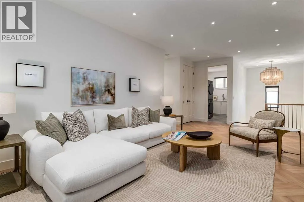 120 Greenwich Heath is designed for families who love to entertain. This home features just over 3000ft2 of living space on the main and upper levels and it boasts an open kitchen, dining, great room layout that is perfect for gatherings. Also included on the main level are an office; mudroom and powder room. The upper floor has the primary suite, 2 bedrooms, 2.5 bathrooms, a large bonus room and laundry. There is 1000ft2+ finished in the lower level. This level has flex space for the main house PLUS a complete 1-bedroom suite with separate entrance. The 3-car, side-drive garage has ample space for vehicles and hobbies.Finishes in this home are sophisticated and understated. The space is sunlit and exudes warmth: beautiful white oak cabinetry; honey bronze hardware; herringbone engineered hardwood; quartz countertops; lovely porcelain flooring tile; and tasteful lighting. Dacor appliances include an induction cooktop and full-size wine fridge. Custom built-in cabinetry is found throughout the home. The Digital Lifestyles Smart Home Technology is a single, intuitive system that brings the entire smart ecosystem together: lighting/ambiance; music and audio; automated blinds/shades; climate control; televisions/devices; and security.Your family will flourish in these surroundings! Upper Greenwich is a distinctive community nestled on the west edge of Calgary â an easy commute to downtown with quick access to the Rocky Mountains. Upper Greenwich is a lovely blend of sophisticated urban living in natural surroundings. Walking paths, sport courts, playgrounds and abundant greenspaces can be enjoyed right outside your front door. The HOA ensures upkeep of the amenities of the community and helps bring people together with seasonal celebrations and neighborhood events. Upper Greenwich is a community that is connected, active and thriving! (id:27476)