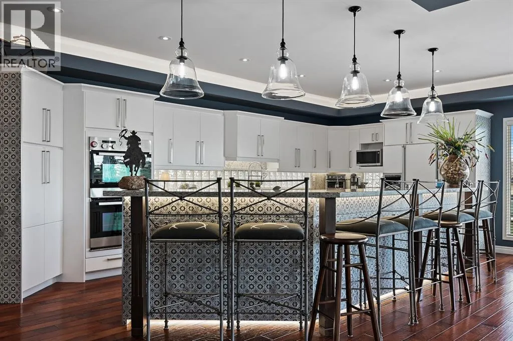 Perched on a corner lot in Strathcona Park, this home is a truly unique find. Custom built with a huge 4 car attached garage and designed with entertaining and comfort in mind. Every inch of this property has been finished to be a beautiful showcase for Calgaryâs wide-open skies and beautiful city views. Perfectly set up to welcome a crowd and elegantly appointed to make sure every moment is just right.The open kitchen offers built in appliances, ample natural light, and immense amounts of counter space, storage, and floor space. Dinner for 12? No problem! Adjacent to the kitchen, the cozy family room offers a perfect spot to watch a movie by the fireplace with friends or enjoy a sit while dinner cook. The main floor was designed to house formal dining and sitting rooms just inside the gracious front entryâ¦now these window lined rooms, anchored by a shared fireplace, are set for casual gatherings around the pool table and the piano.Outdoor spaces are no afterthought hereâ¦the side yard is set up like a private courtyard and nestles into a gentle slope a spot for eating, lounging, or just enjoying gentle summer days. There is also a large deck accessed through the dining area that has been built to truly bring the party OUTDOORS with room to sit and a built-in rail side bar!The upper level is a private space with a total of 3 bedrooms including the primary suite with huge lounge area and ensuite bath, and two perfectly appointed additional bedrooms. The full bath is a true jewelâ¦make sure you have a look at the one-of-a-kind tile!The lower level contains a fourth bedroom and full bath, plus a lot of garage spaceâ¦4 parking spots (could even have a 5th spot if desired), workshop space and indoor insulated storage/boot room. A few of the newer features include rubber shingles, high quality exterior paint, AC, and irrigation. This truly incomparable home must be seen! (id:27476)