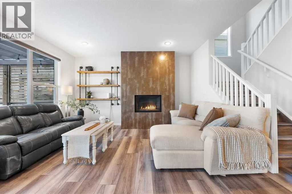 OPEN HOUSE on Sunday Feb 15th from 12-2 PM! Wow! Check out the view of the lake from the bonus room in this well kept, amazingly located home! As you enter this home you have a main floor office space that's perfect for the work from home professional. As you make your way through to the main floor living spaces you will LOVE the central kitchen which features a walk through pantry, ample gorgeous two toned cabinetry, granite countertops, subway tiled backsplash, gas cooktop, wall oven and microwave and upgraded lighting. The dining area adjacent to the kitchen is big enough for a large dining table, the living room features a gorgeous tiled fireplace wall, modern industrial shelving, and plenty of natural sunlight! The main floor is completed with a huge mudroom, a half bath for your guests and views of the back yard from the back of the house. Upstairs is amazing and features a huge bonus room drenched in sunlight with soaring vaulted ceilings and EPIC views of the LAKE! down the hall there is a large laundry room with loads of cabinets for storage and a sink and it also connects directly to the walk in closet in the primary bedroom! The primary bedroom is a great size and features a spa like ensuite bathroom with an XL steam shower, heated floors, separate soaker tub, huge walk in closet with built ins, dual sinks and lots of storage! There are 2 additional bedrooms and another full bathroom for the kids upstairs! The basement is fully finished with a wet bar, huge rec room, a 4th bedroom and another full bathroom (also with heated flooring) This house has it all! Lake Views, amazing location, HEATED oversized garage, tankless hot water heater, A/C, beautiful upgrades, dog run, built in speakers in the basement, water softener, easy access to all the areas amenities, schools, parks, playgrounds, transit right outside your front door, off leash dog park, YMCA, the Hospital, tons of shopping, restaurants, pubs and easy access to Deerfoot and Stoney Trails! This on e is truly a winner that checks all the boxes! (id:27476)