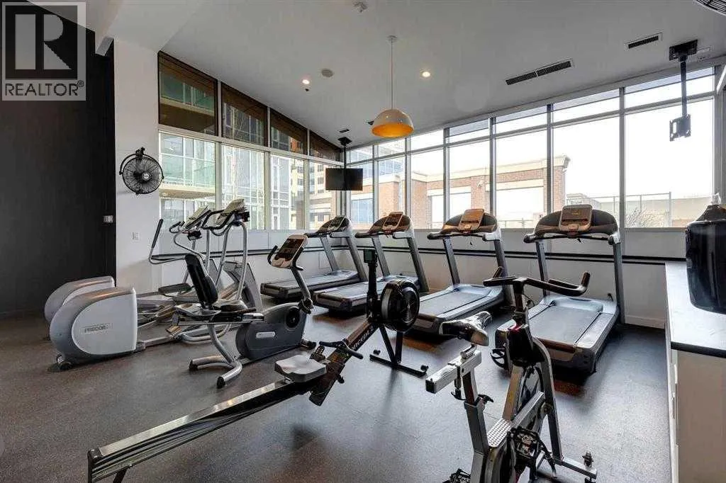 Welcome to SASSO, a sleek addition to Calgaryâs vibrant Beltline. Surrounded by some of the cityâs best dining, shopping, and entertainment, this unbeatable location is just steps from 17th Avenue, Stampede Park, the BMO Centre, and the downtown core. With the Victoria Park LRT Station right across the street, getting anywhere in the city is effortless, making both work and play completely within reach. This bright two bedroom, two bathroom condo features a thoughtfully designed single level layout with a modern, neutral palette, ideal for first time buyers, young professionals, or investors. The contemporary kitchen is equipped with granite countertops, stainless steel appliances, and a generous sized eating bar, perfect for both everyday living and entertaining. oversized windows flood the open concept living and dining area with natural light, opening onto a spacious wraparound terrace, offering stunning views of the downtown cityscape. The primary bedroom is complete with a walk-in closet and four-piece ensuite, while the second bedroom provides flexible space for guests or a home office. Residents of this 18+ building enjoy an exceptional collection of premium amenities, including full concierge service, a fully equipped fitness centre, sauna, steam room, hot tub, private movie theatre, games and recreation room, as well as secure underground parking. This unit also includes a heated underground parking stall and a dedicated storage locker. This is an outstanding opportunity to experience urban living at its finest, where location, lifestyle, and value come together in a truly remarkable residence. Schedule your private showing today and experience everything SASSO has to offer. (id:27476)