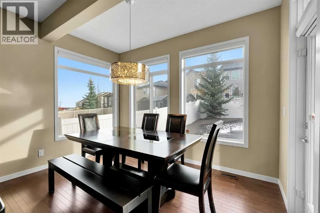Designed for comfort, style, and energy efficiency, this modern 2-storey smart home built by Morrison in Nolan Hill is loaded with premium upgrades throughout. Offering almost 2,400 sq. ft., the home features 3 bedrooms, 2.5 bathrooms, a main-floor office, and an oversized double garage. A solar panel system provides significant long-term savings (an estimated ~$1,200/year in solar credits) and powers a Level 2 EV charger. Additional highlights include central A/C, a fully fenced, low-maintenance south-facing stone backyard, high-efficiency two-zone furnace, radon mitigation system, recirculating hot water pump, whole-home dechlorination, and a security system. Proudly maintained by the original owner, this home shows 10/10: bright and move-in ready. The open-concept main floor boasts 9-ft ceilings, upgraded hardwood and tile flooring, a versatile den/home office, and a stunning chefâs kitchen with stainless steel appliances (oversized fridge), full-height cabinetry, granite countertops, large island, reverse-osmosis drinking water system, upgraded hood fan, and walk-in pantry. The space flows effortlessly into the spacious living area with a gas fireplace and the dining area, which opens onto a south-facing deck and backyard with gas BBQ hookupâperfect for summer entertaining. A convenient 2-piece powder room completes the main level. Upstairs offers upgraded carpet, upper-level laundry, a spacious primary retreat with walk-in closet and 5-piece ensuite, two additional bedrooms with walk-in closets, a full bath, and an expansive bonus room ideal for family movie nights. The unfinished basement with large windows awaits your personal touch. Further upgrades include Hunter Douglas blinds, Kinetico water softener, new water heater (2024), new roof (2025), and a new updated garage door(2025). Ideally located near parks, pathways, schools, Sage Hill shopping and dining, and major roadways, this home offers exceptional energy-smart living in a prime NW location. Book you r showing today and experience this remarkable home for yourself. (id:27476)