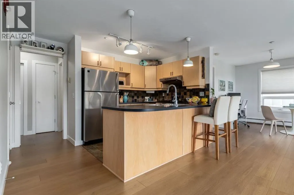 Welcome to The Ellington, a beautiful 2 bedroom, 2 bathroom condo on the 3 floor, perfectly located in the heart of the city. Enjoy the best of urban living with parks, restaurants, shops and scenic bike paths just steps away- all while overlooking a peaceful green space. Step inside to an open-concept living and dining area with large windows that fill the space with natural light. Patio doors lead out to your private balcony from the dining area - the perfect spot for morning coffee or evening relaxation. The kitchen features laminate countertops, stainless steel appliances and kitchen bar. The spacious primary bedroom includes a walk-in closet and full ensuite for your comfort. Additional features include In-suite laundry, heated titled underground parking and extra storage locker. This well maintained condo offers the ideal mix of comfort, style and convenience in a vibrant inner-city location. (id:27476)