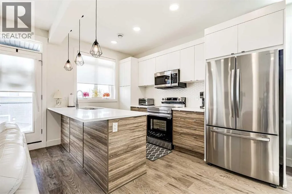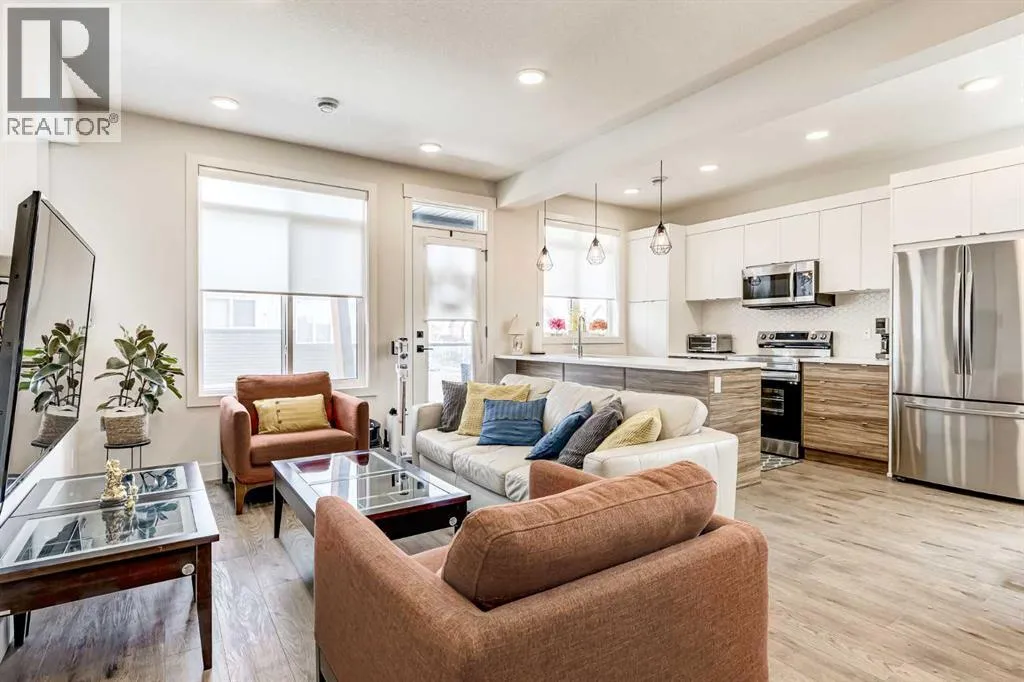 Nestled in Saddle Ridge, this inviting three-storey townhouse offers a comfortable and convenient lifestyle. The main living space, situated on the second level, features an open-concept design encompassing a bright living room, a well-appointed kitchen showcasing beautiful two-toned cabinetry and elegant granite countertops, and a welcoming eating area. Step out onto your private balcony, perfect for enjoying the outdoors. Ascending to the top floor, you'll find three comfortable bedrooms, including a primary suite with a convenient three-piece ensuite bathroom. A well-appointed four-piece main bathroom serves the additional bedrooms. The convenience of a single attached garage adds to the appeal. Enjoy a fantastic location with a short distance to a variety of shopping and dining options, all within a wonderful community that's ideal for growing families. (id:27476)