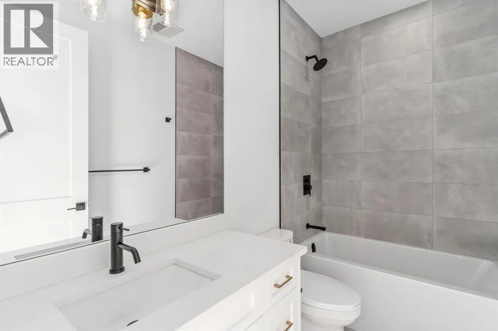 Step inside a prestigious brand new townhome in the heart of the inner city SW. Ideally located nearby popular amenities including the Killarney Aquatic Centre, Westbrook LRT Station, 17th Ave SW, Shaganappi Golf Course, multiple greenspaces and bicycle pathways. This 2.5-storey oasis embodies functional design that integrates modern finishing selections across four spacious levels. The welcoming open concept layout showcases a large kitchen island, accompanied by stainless steel appliances, quartz counters, undermount sink and tile backsplash. Follow sleek white oak plank flooring into the adjacent living area that centers around a cozy gas fireplace. Upstairs await three large bedrooms, including the primary retreat with a private walk-in closet and 5 piece ensuite with in-floor heating. The third level is an entertainer's delight, fully equipped with a wet bar, full bathroom, versatile flex area and 200 SF serene rooftop patio. A legal 2-bedroom 700 SF suite in the basement with in-floor heating provides a unique opportunity for generating rental income, incorporating multigenerational living, or simply expanding on your current lifestyle needs. Enjoy a convenient and vibrant pedestrian-friendly community, with the added perks of condo maintenance and secured parking in a nearby detached garage. Expected completion June 2026. (id:27476)