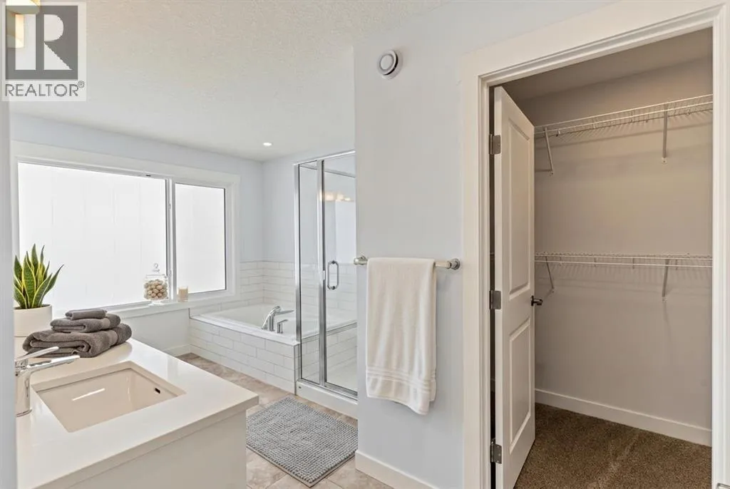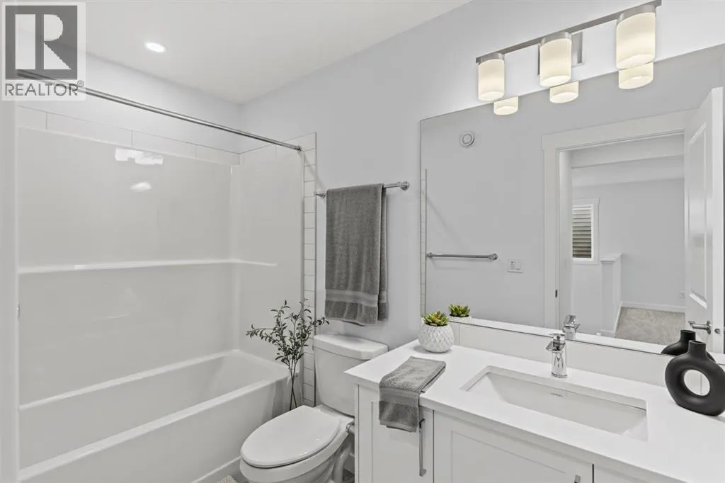 Welcome to Pine Creek â one of Southwest Calgaryâs most thoughtfully planned communities, known for its scenic pathways, future schools, nearby amenities, and quick access to Macleod Trail, Stoney Trail, and the South Health Campus. This vibrant neighbourhood blends modern living with natural surroundings, making it ideal for families, professionals, and investors alike. Located at 60 Creekstone Grove SW, this quick possession home offers 1,979 sq. ft. of beautifully designed living space with 3+1 bedrooms and 3 full bathrooms in total. The open-concept main floor features 9â ceilings, luxury vinyl plank flooring, A MAIN FLOOR BED WITH FULL BATH, and a striking electric fireplace with tile surround, perfect for guests or multi-generational living. The chef-inspired kitchen is equipped with quartz countertops, Level 2 cabinetry, a gas range, chimney hood fan, built-in microwave, and a large walk-through pantry connecting seamlessly to the garage. Upstairs, youâll find a spacious primary retreat with a walk-in closet and upgraded ensuite, along with two additional bedrooms, a bonus room, and convenient upper-floor laundry. Additional highlights include a side entrance, 8â overhead garage door, iron railings, triple-pane low-E windows, 9â basement foundation, and high-efficiency mechanical systemsâdelivering comfort, efficiency, and long-term value. This is a rare opportunity to own a brand-new, move-in-ready home in the growing Pine Creek community. Eligible for FIRST TIME HOME BUYERS GST REBATE. (id:27476)