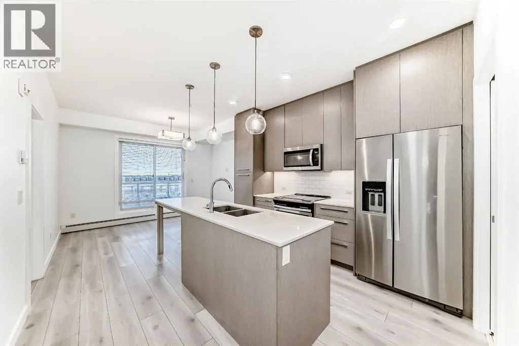 Welcome to the Legends of Cornerstone, a well-designed 2 bedroom, 2 bathroom condo offering modern style and functionality. This bright, open-concept layout features 9â ceilings, large windows, and a comfortable living space that opens to a spacious private terrace ideal for relaxing or entertaining. The contemporary kitchen is finished with quartz countertops, custom cabinetry, soft-close hardware, and sleek stainless steel appliances, complemented by spa-inspired bathrooms and the convenience of in-suite laundry. Residents enjoy exceptional amenities including a fitness centre, spin and movement studios, ownersâ lounge, entertainment kitchen, movie theatre, library, pet spa, community garden, and landscaped courtyards, all in the growing community of Cornerstone close to parks, shopping, transit, and major routes. (id:27476)