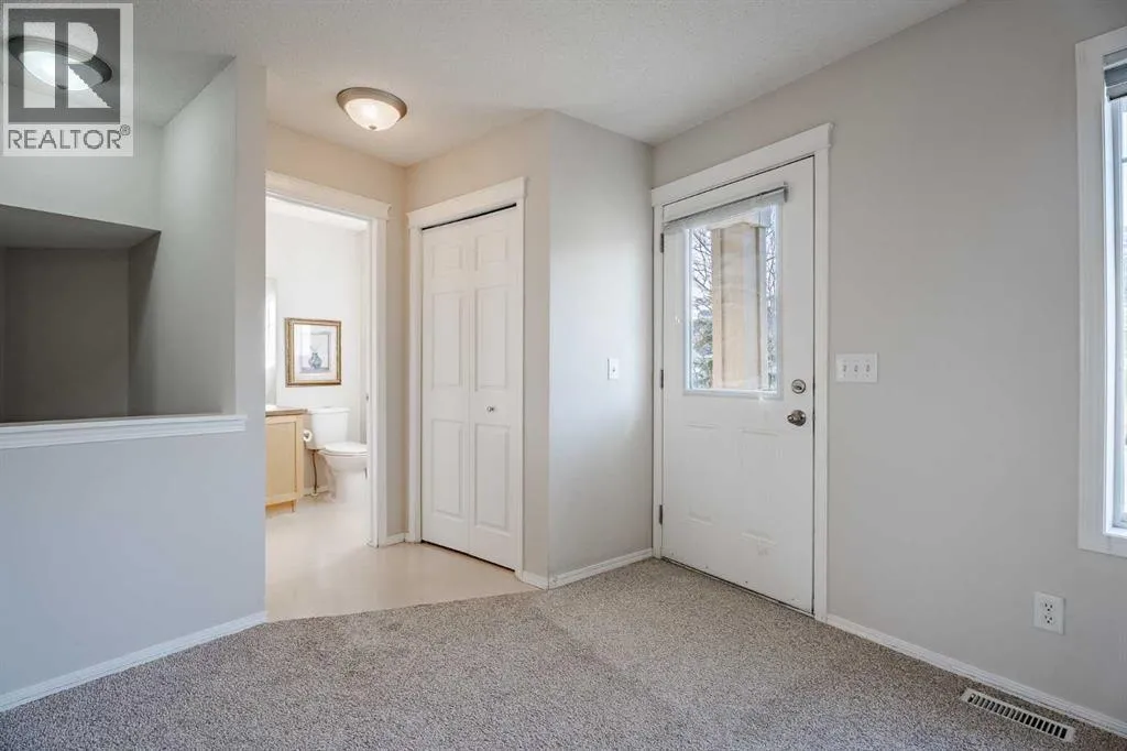 Well-located and family-friendly, this two-storey townhouse over 1220 sqft, in Panorama Hills faces the OPEN GREEN SPACE, offering privacy and a peaceful outlook. The main level features an open floor plan connecting the living and dining areas to a practical kitchen with a raised breakfast bar and large pantry â perfect for the everyday hustle and casual entertaining. A covered deck off the kitchen expands your usable space .Upstairs youâll find three bedrooms and convenient second-floor laundry. The primary suite includes a four-piece ensuite accessed through a pocket door and a large walk-in closet. A half bath on the main floor adds convenience for guests. Practical touches include a single attached garage AND driveway parking. The location is EXCEPTIONAL, an easy walk to Country Hills Town Centre, Landmark Cinemas, Home Depot, VIVO Recreational Centre, Notre Dame High School, shops, restaurants, and the bus terminal, with quick access to major freeways for commuting (Harvest Hills Blvd, Country Hills Blvd). Move-in ready and ideal for first-time buyers, young families or anyone seeking low-maintenance suburban living with immediate access to amenities. Book a viewing today! (id:27476)