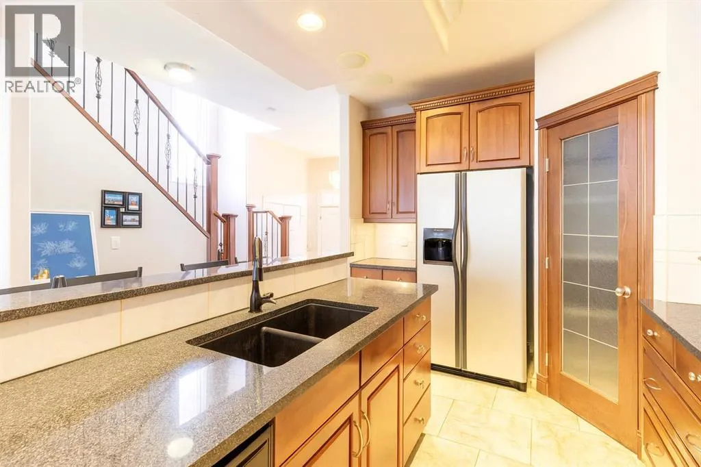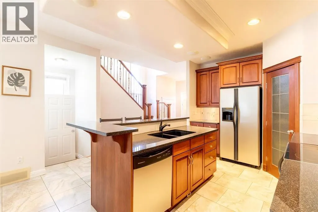 Location · Quality · Lifestyle IN INNER CITYWelcome to this exceptional home offering over 2,800 sq. ft. of beautifully finished living space, ideally situated within walking distance to C-Train , Westbrook Shopping Mall and all amenities. Directly across the street is the well-known public charter school(Grade 3-7) focused on nurturing creativity and academic excellence. â a rare convenience that saves valuable commuting time for children. Direct bus to go to Western Canada High School. The homeâs timeless stone and stucco exterior sets the tone for the superior craftsmanship and enduring quality found inside. Step into the main floor featuring 9-foot ceilings, crystal chandeliers, tile flooring, hardwood stairs, and cabinetry â a level of quality seldom seen in new buildings. The open-concept kitchen boasts rich hardwood cabinets, granite countertops, a tile backsplash, and Samsung stainless steel appliances, complete with a garburator. The spacious dining area flows seamlessly into the inviting living room, highlighted by a cozy gas fireplace and views of the fully landscaped, fenced, west-facing backyard.The main floor office with large windows and elegant trim detail offers the perfect workspace which can be easily converted into a bedroom. Additional main-floor features include an alarm system, central vacuum, keyless front and back entry, and a built-in audio system that extends to the backyard.Upstairs, youâll find three generous bedrooms, including a spacious primary suite with a Romeo & Juliet balcony, walk-in closet, and a 5-piece ensuite with dual sinks, a soaker tub, and a separate shower. Two additional bedrooms share a full bath, while an extra walk-in linen closet provides abundant storage. The upper-level laundry is thoughtfully designed with upper cabinets and a window for natural light. The entire upper floor features upgraded laminate flooring throughout. Special attention should be given great sound-proof shared wall with neighbors, enj oying like detached house. The fully developed basement offers a large recreation room, a spacious bedroom, a 3-piece bath, and a walk-in storage closet, all with brand-new vinyl plank flooring (2025).Step outside to your private, fully fenced backyard â an inviting oasis featuring mature trees, a charming flower garden, and elegant stone wall separation from the neighbors for added privacy and style. Enjoy the freshly painted deck and fence (2024), a tool shed, plus a dog run and a double detached garage thatâs fully insulated, drywalled, and powered, with access from the paved concrete back lane âno dust at all, a rare upgrade. Recent updates include bedrooms new paint (2025), new vinyl plank flooring in the basement (2025), and freshly painted deck and fence (2024), water tank (2023),new stove and new microwave (2023), making this home truly move-in ready with no repairs needed. This property is a rare find that perfectly combines unbeatable location, timeless quality, and modern comfort. (id:27476)