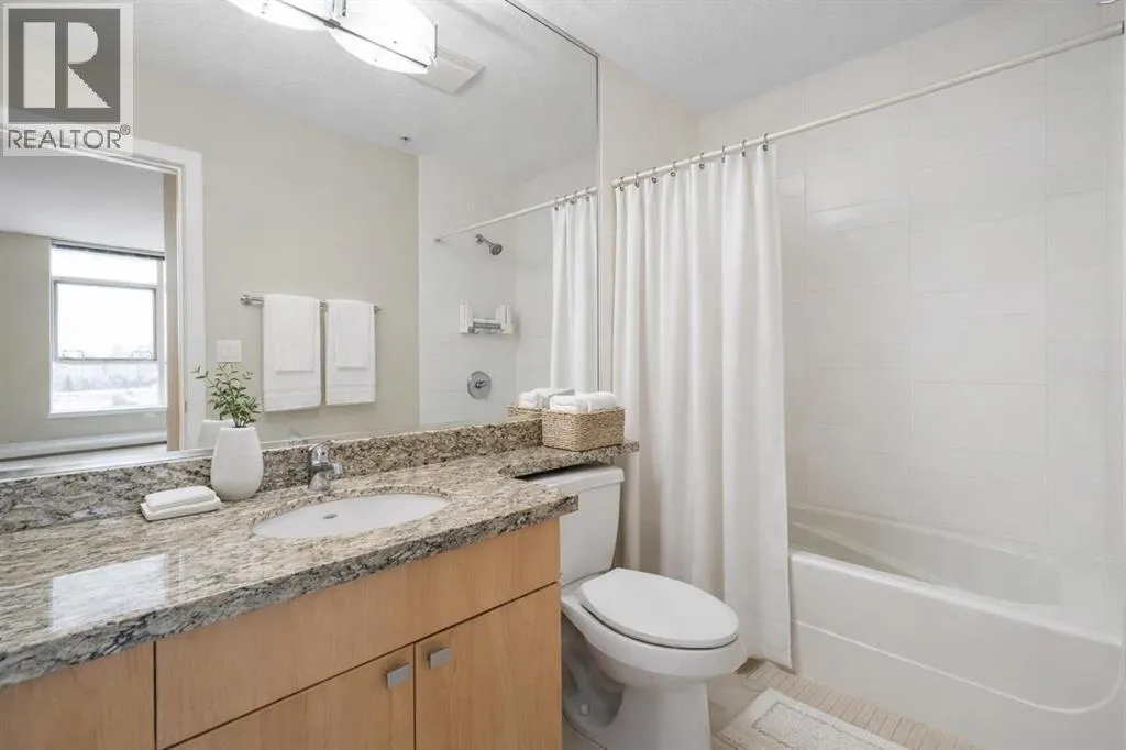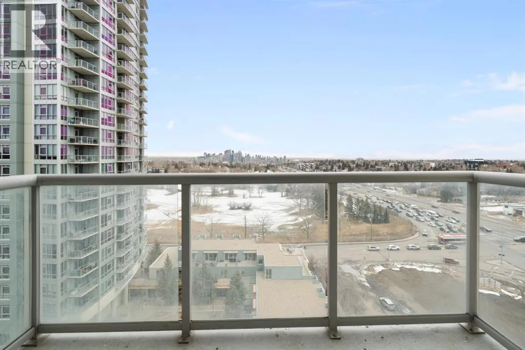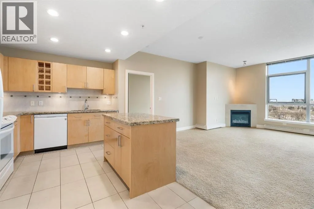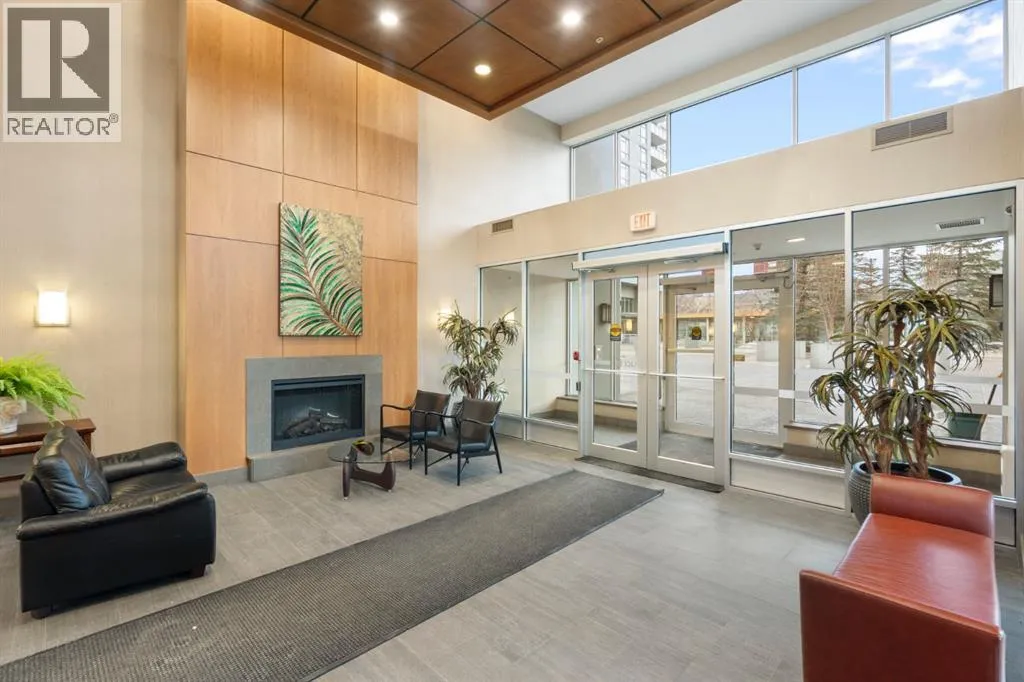 Welcome to Encore at Westgate Park, a well-managed concrete high-rise condo offering panoramic east-facing views of downtown Calgary and Shaganappi Golf Course. This 2 bedroom, 2 bathroom condo combines space, light, privacy, and unbeatable west-side convenienceâperfect for professionals, downsizers, or investors seeking a view-oriented home in a highly connected location. The thoughtfully designed layout features 9-foot ceilings and large windows that flood the home with natural light throughout the day. The open-concept living area is anchored by a cozy gas fireplace and flows seamlessly into the kitchen, which offers granite countertops, a large centre island, and ample cabinet spaceâideal for entertaining or everyday living. Steam-cleaned carpets and a well-maintained interior makes this property move-in-ready. The primary bedroom is generously sized and includes a massive walk-in closet and a private 4-piece ensuite bathroom. The second bedroom offers excellent flexibility and works beautifully as a roommate space, home office, study, or creative retreat. A second full bathroom and in-suite laundry add everyday convenience. Air conditioning ensures year-round comfort. This home includes titled underground parking and a separate, secure storage locker located in a locked roomâkeeping belongings clean, dust-free, and more secure. Pet-friendly building (with board approval). The solid concrete construction provides superior sound insulation, offering a quieter living experience with minimal noise transfer. Residents enjoy resort-style amenities including a large indoor swimming pool, hot tub, fully equipped fitness centre, games and recreation room with pool table and table tennis, bike storage, bookable conference rooms, and 24-hour on-site security. Ample underground visitor parking adds extra convenience for guests. Condo fees include all utilities except electricity, offering excellent value and predictable monthly costs. Located in one of Calgaryâs most conne cted west-side locations, the Westbrook LRT station is just steps away, providing quick access to downtown. Westbrook Mall is connected via skywalk, offering direct indoor access to Walmart, Safeway, dining, and everyday services. Shaganappi Golf Course is next door, while the Bow River pathway system, Edworthy Park, and Douglas Fir Trail are minutes away. Easy access to Bow Trail, Sarcee Trail, and the Trans-Canada Highway puts the mountains within reach. A rare opportunity to own a quiet, concrete condo with views, amenities, and unmatched transit access at Encore Westgate Park. (id:27476)