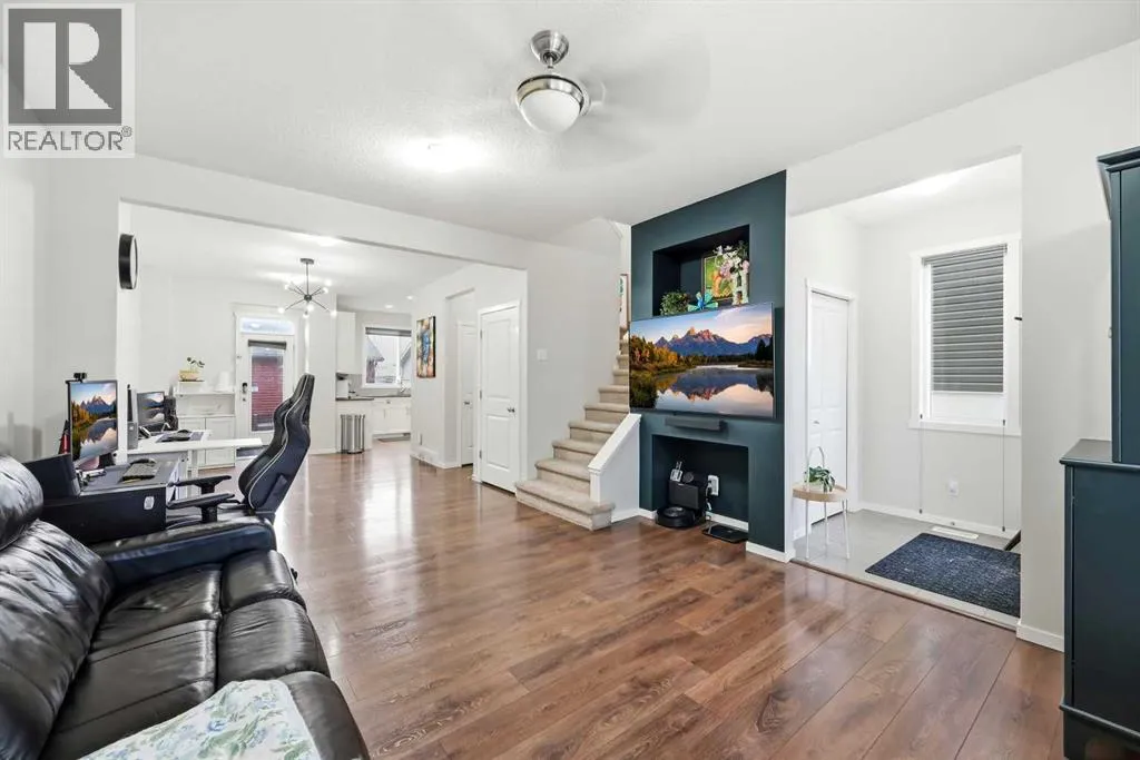 WELCOME TO THIS EXCEPTIONAL, HEAVILY UPGRADED CORNER-LOT TOWNHOME IN THE HEART OF SAVANNA! This NO CONDO FEE, EAST-FACING property offers the comfort and quiet of a detached feel with the convenience of urban living. Featuring a PREMIUM HUSH-HUSH PARTY WALL SYSTEM, this home delivers outstanding sound insulation and privacyâideal for modern families and professionals alike.Proudly maintained and FRESHLY PAINTED, the home showcases over $100K IN UPGRADES AND IMPROVEMENTS throughout. The MAIN FLOOR features a bright, open-concept layout with durable upgraded flooring, QUARTZ COUNTERTOPS, modern cabinetry, PANTRY, and a well-appointed kitchen with GAS STOVE. The spacious living and dining areas are perfect for everyday living and entertaining, complemented by tasteful finishes for a true move-in-ready feel. The UPPER FLOOR offers a thoughtfully designed layout with THREE GENEROUS BEDROOMS, including a spacious PRIMARY BEDROOM WITH ENSUITE & WALK-IN CLOSET, plus an additional 4-PIECE FULL BATHROOM. Convenient UPPER-FLOOR LAUNDRY adds everyday functionality, while large windows throughout provide excellent natural light. The thoughtfully designed layout continues into the FULLY DEVELOPED BASEMENT WITH HOME THEATRE, featuring an additional bedroom, full bathroom, ample storage, and a versatile bonus roomâperfect for extended family, guests, or entertainment. The PREMIUM CORNER LOT provides extra side yard space, enhanced privacy, and direct side access to the backyard. Enjoy a DOUBLE DETACHED INSULATED GARAGE, landscaped and re-sodded WEST-FACING BACKYARD, concrete patio, stonework pathways, and a fully developed REAR PAVED LANE. CENTRAL A/C, WATER SOFTENER, upgraded CLASS 4 HAIL-RESISTANT ROOFING, and numerous builder and post-possession enhancements add long-term value and peace of mind. UNBEATABLE LOCATIONâjust steps to SAVANNA BAZAAR, TRANSIT STOP, and close to schools, parks, and everyday amenities, with VERY QUICK ACCESS TO SADDLETOWNE LRT, multiple bus routes, and major roadways for an easy commute across the city. A rare opportunity to own a MOVE-IN READY, UPGRADE-PACKED HOME in one of Calgaryâs fastest-growing communities. Exceptional value, exceptional locationâthis one truly stands out. 3D / VIRTUAL TOUR AVAILABLE. Call your favourite Realtor® to book a showing. (id:27476)
