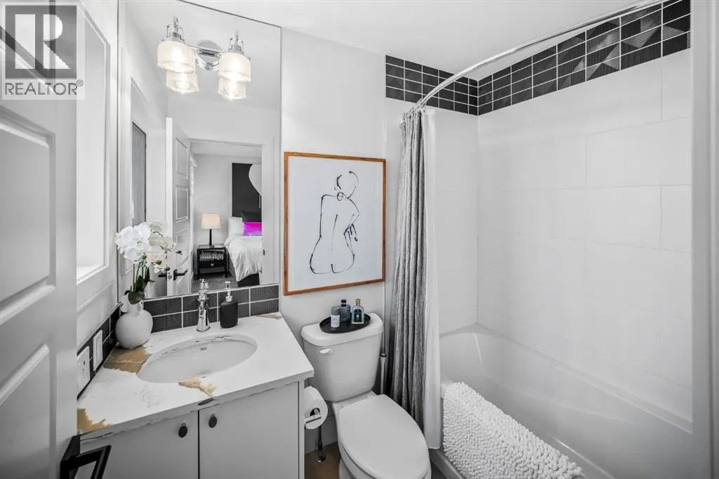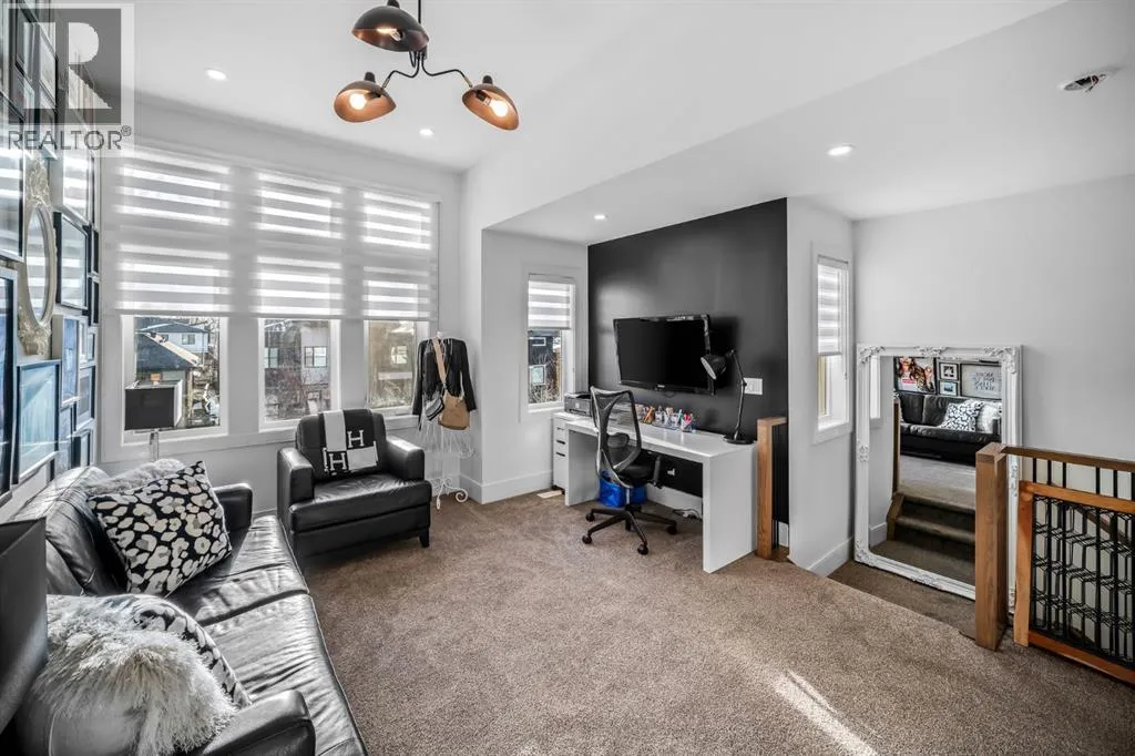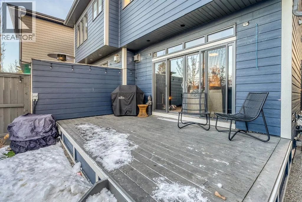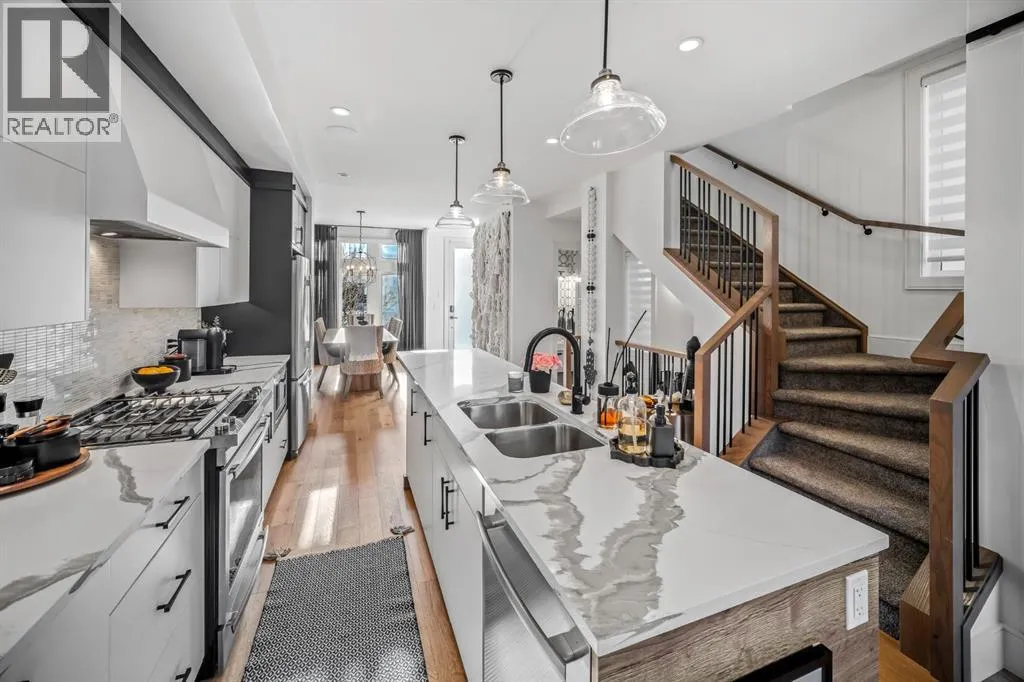 This stylish and meticulously crafted home is located in Altadore, one of Calgaryâs most desirable inner-city neighborhoods. From the moment you step inside, you'll appreciate the quality finishes that the builder has used throughout, both inside and out. The main floor features an open and functional layout, where the formal dining room seamlessly flows into the kitchen and continues into the spacious living room. The kitchen is a standout, offering a large island with sleek quartz countertops, generous prep space, a custom hood fan, a gas range, with Jennair stainless steel appliances, and abundant cabinetry for all your storage needs. The living room exudes elegance, with built-in shelving surrounding the fireplace and a striking tiled wall feature, while sliding patio doors lead to your deck and low maintenance backyard. The main floor also includes a side entrance with a built-in boot room and a convenient two-piece guest bathroom. Upstairs, the south facing primary suite is a tranquil retreat, featuring a stunning ceiling and wallpaper combination complemented by matching black drapes. The ensuite is designed for relaxation, with double vanities, quartz countertops, an independent soaker tub, a glass shower, a private toilet, and a walk-in closet. The second floor also houses a laundry room with a tile backsplash, sink, quartz countertops, and a spacious linen closet just outside. Additionally, there is a large north facing bedroom with its own four piece ensuite and walk-in closet. The third floor offers a versatile space, perfect as a den or office, ideal for work or a quiet retreat. This level also includes another generously sized bedroom and a four piece bathroom, providing a private living area. In the basement, you'll find a spacious family/recreation room, a utility room, another matching four piece bathroom, and the fourth bedroom. The exterior features durable fibre cement siding, and the professionally landscaped yard boasts composite decking and ar tificial turf, ensuring a low maintenance lifestyle. With close proximity to multiple parks, Sandy Beach, the Marda Loop District, both elementary and high school options, and just minutes from downtown, it's easy to see why this neighbourhood is so highly sought after (id:27476)