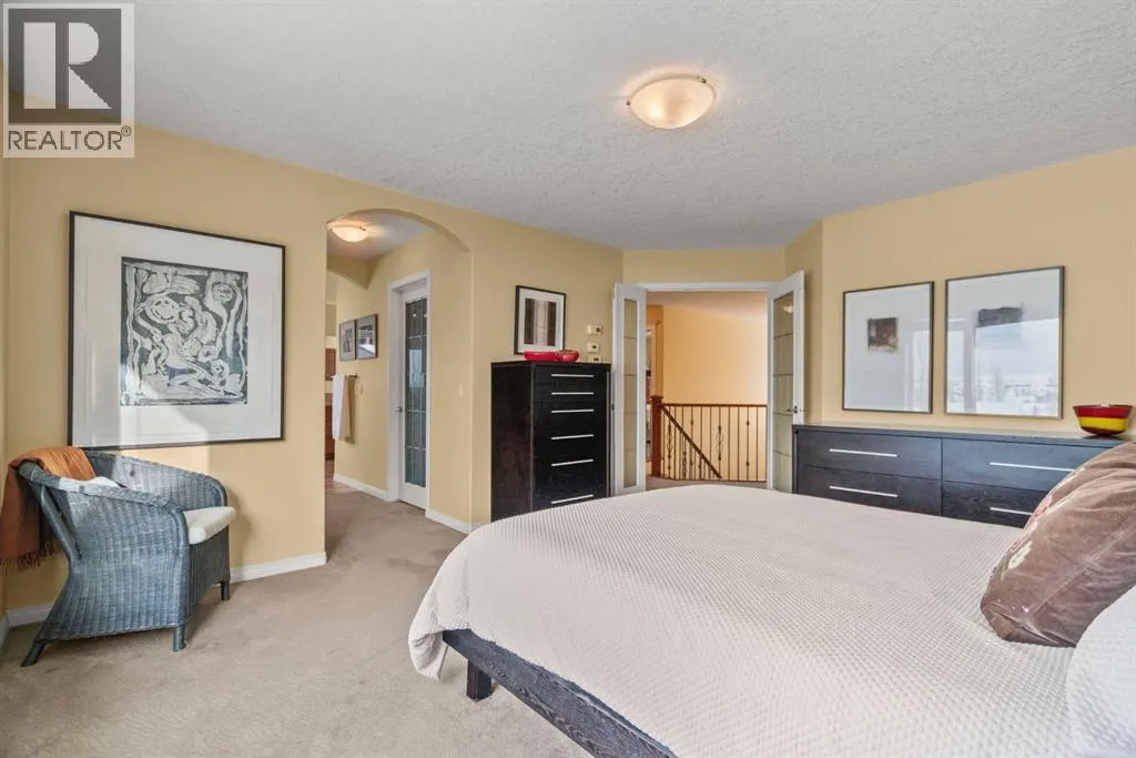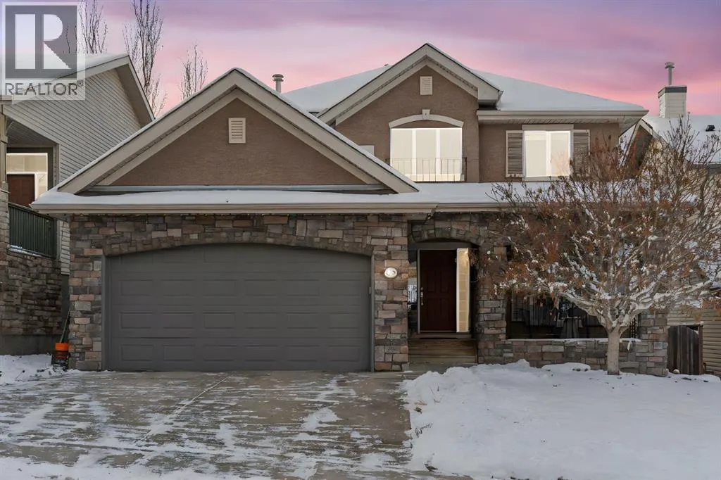 Welcome to 153 Crestridge Way SW, a beautifully appointed 2-storey home with a fully developed walkout basement, ideally located in the sought-after community of Crestmont. Offering 5 bedrooms and 3.5 bathrooms, this home strikes an exceptional balance between thoughtful design, abundant natural light, and breathtaking, unobstructed views of the Rocky Mountains and river valley. With 2,526 sq ft above grade and an additional 1,302 sq ft of professionally developed living space in the walkout basement, the home provides over 3,800 sq ft of versatile and well-designed family living. The main level makes an immediate impression as you step inside from the east-facing front porch, where a spacious foyer, open-to-above staircase, rich dark laminate flooring, and expansive windows frame the surrounding landscape.At the heart of the home is a chef-inspired kitchen, featuring double islands (one granite), a granite servery, extensive cabinetry, and a large walk-through pantry. A formal dining area and a bright breakfast nook with access to the upper deck create the perfect setting for everyday living, entertaining, sunset views, or summer barbecues. The living room is warm and inviting, centered around a gas fireplace with a granite hearth and custom wood mantel. A front flex room offers ideal space for a home office or library, while a spacious mudroom and powder room complete the main level. Upstairs, the primary suite is a true retreat, showcasing sweeping mountain views, dual walk-in closets, and a luxurious spa-style ensuite with dual vanities, an oversized shower, and a deep soaker tub. Two additional generously sized bedrooms, a full 4-piece bathroom, and a convenient upper-level laundry room provide comfort and everyday practicality. The walkout lower level expands the living space with a large recreation room anchored by a second gas fireplace with a granite hearth, a stylish wet bar, and multiple zones for media, games, fitness, or hobbies. Two additional bedrooms and a full bathroom offer flexible options for teens, guests, extended family, or home-based work. Large windows and direct patio access keep this level bright and welcoming year-round. Outside, the beautifully landscaped yard features mature trees, established perennials, and a lower garden area with rhubarb, raspberries, strawberries, and a variety of herbs. Enjoy summer evenings on the covered patio or your morning coffee on the charming front porch. Additional highlights include a double attached garage, central A/C, central vacuum, walkout access, and a spacious upper deck with glass railing designed to maximize the incredible views. Situated on a quiet street just minutes from the Crestmont Community Centre, water park, playgrounds, walking paths, WinSport, COP, and with quick access to the new Stoney Trail interchange, this home offers an easy commute and a seamless gateway to the mountains. This is more than a home â itâs a lifestyle. (id:27476)